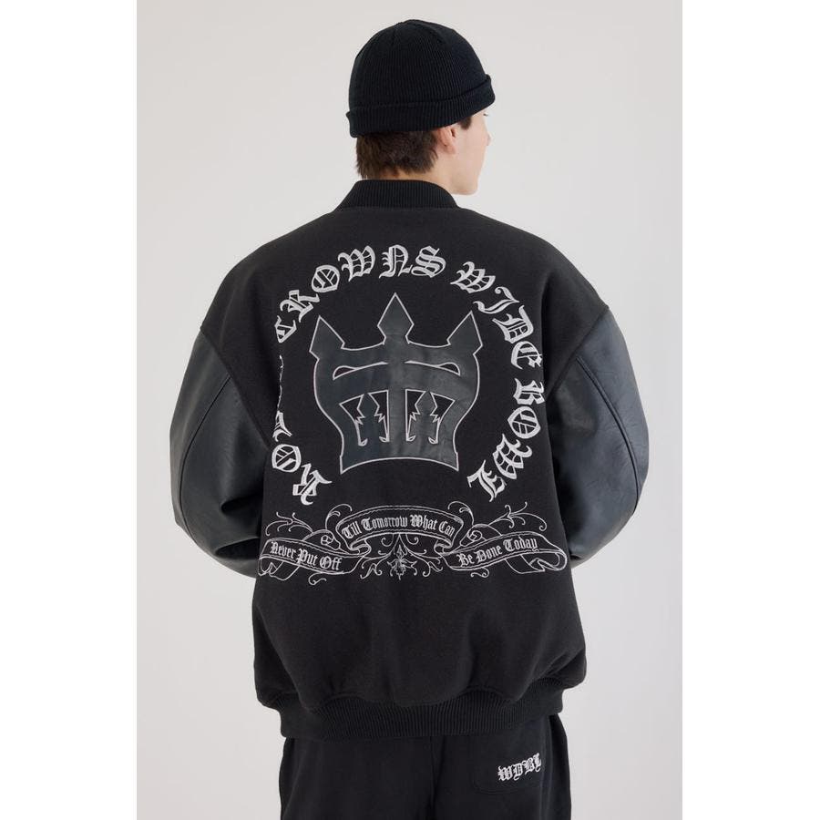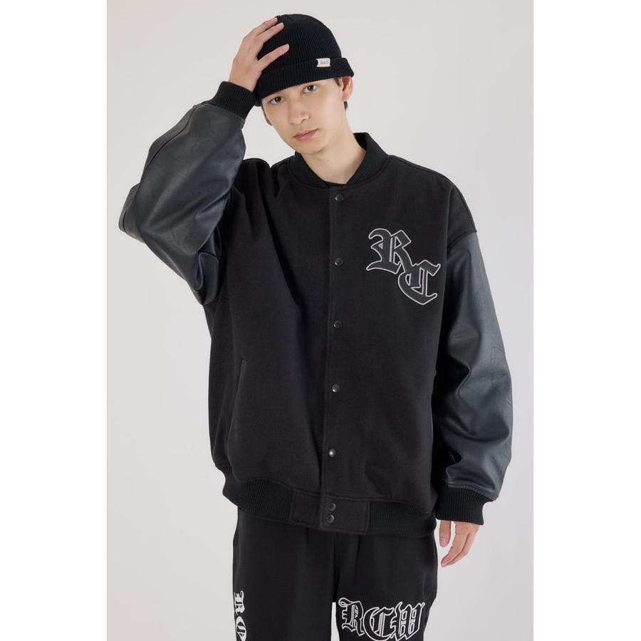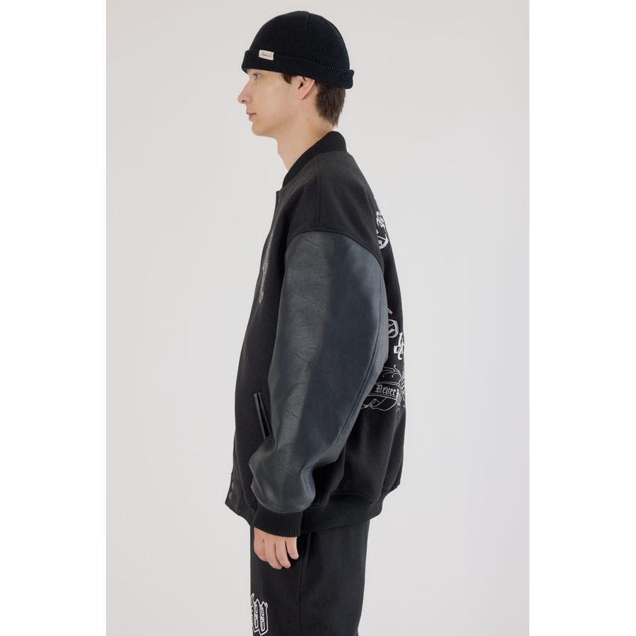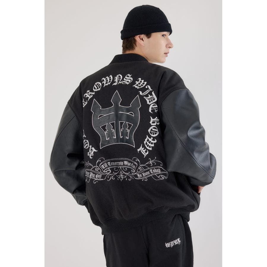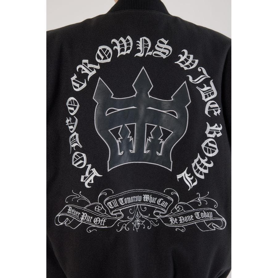 背中に入った大胆なクラウンアップリケと刺繍ロゴが印象的なスタジアムジャンパー。