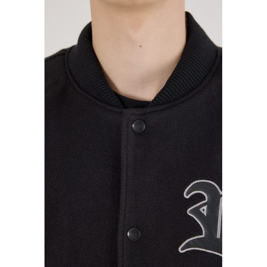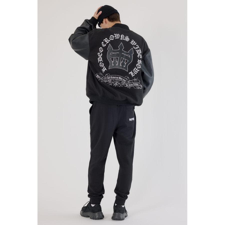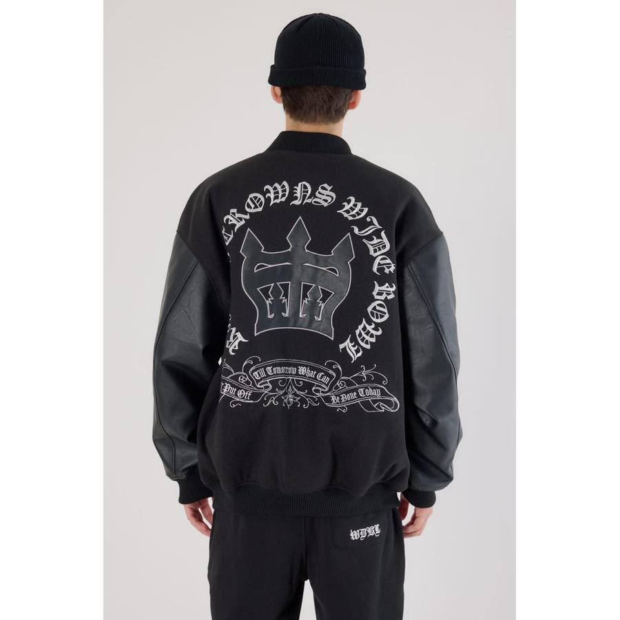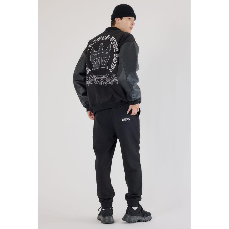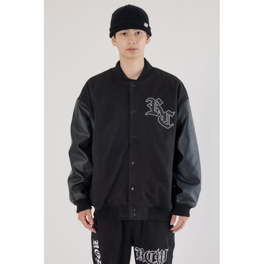 背中に入った大胆なクラウンアップリケと刺繍ロゴが印象的なスタジアムジャンパー。