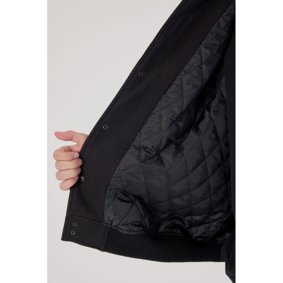 身頃部分はポリエステル素材を使用することで重すぎない着用感、袖部分の合成皮革は硬すぎない生地感なので着心地抜群です。