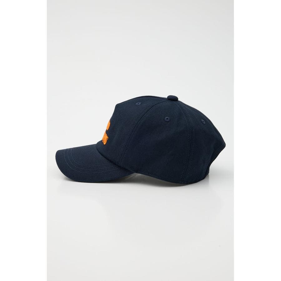 立体的なロゴ刺繍が特徴的なベースボールキャップ。