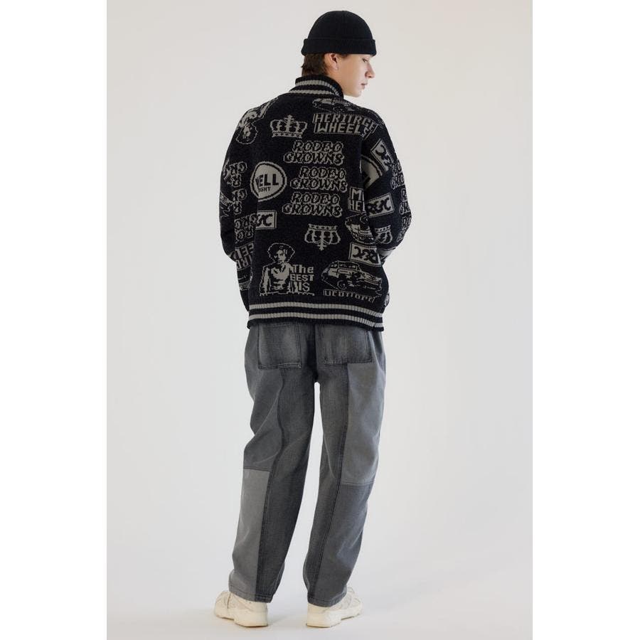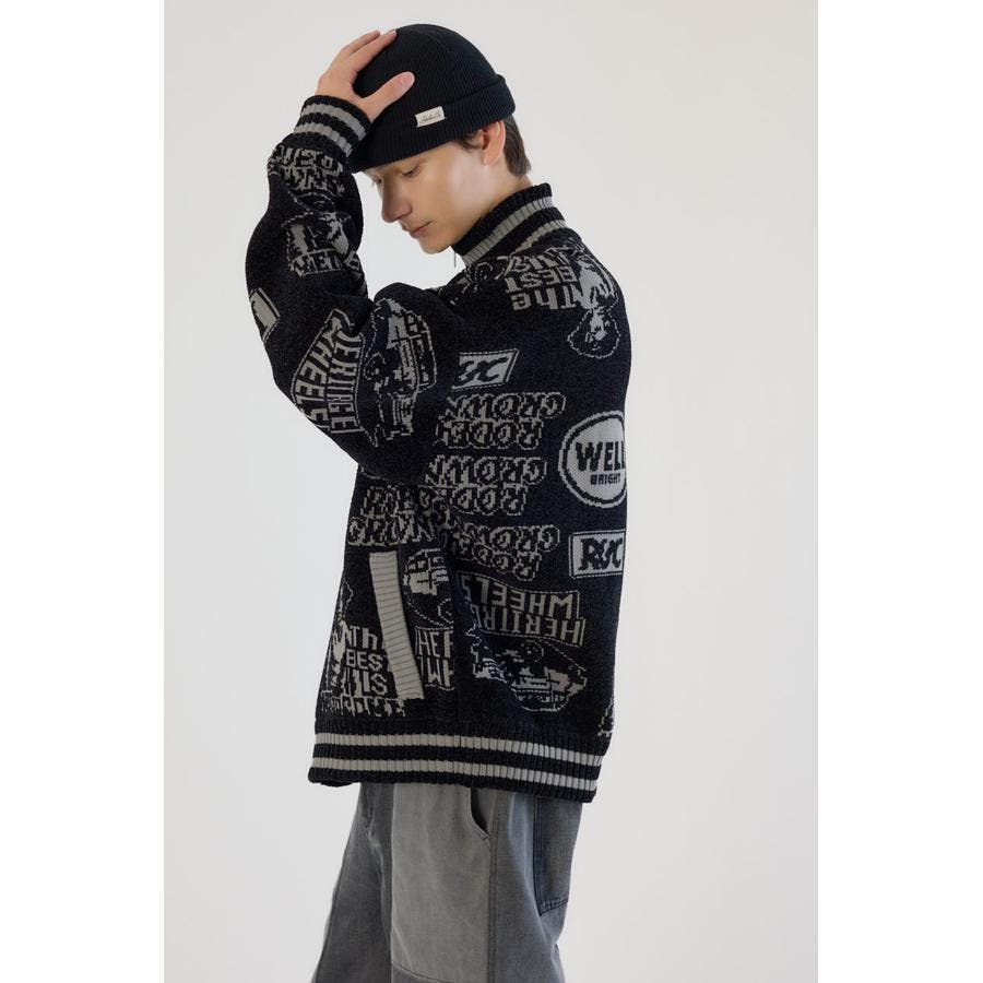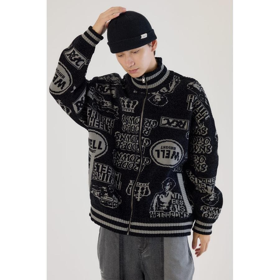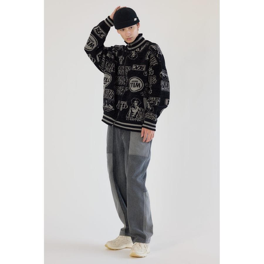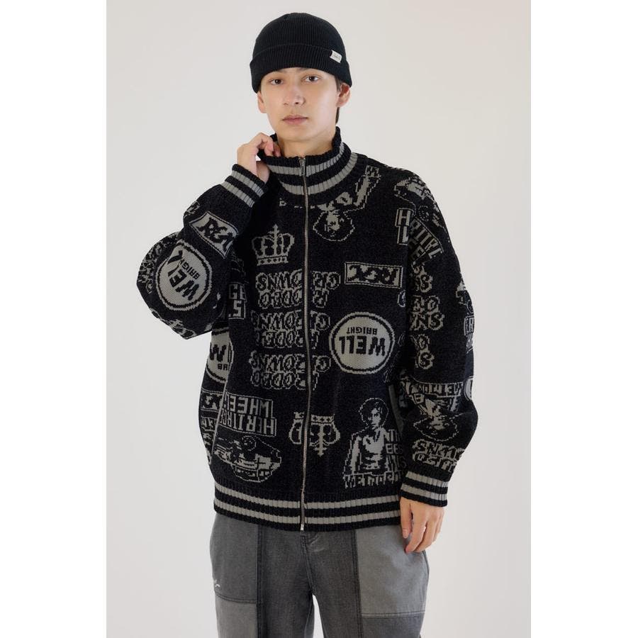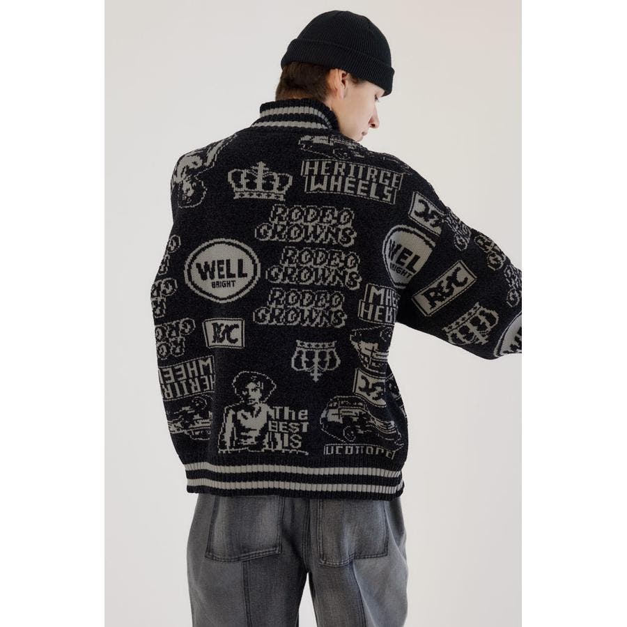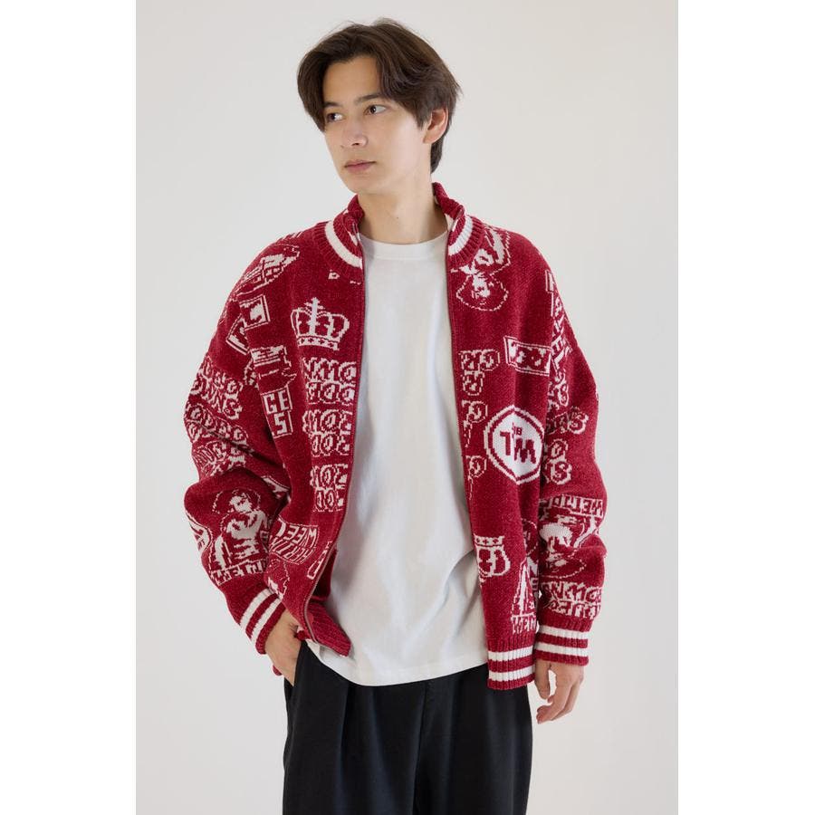 見た目にインパクトのあるグラフィックが特徴的なニット素材のスタジアムジャンパー。