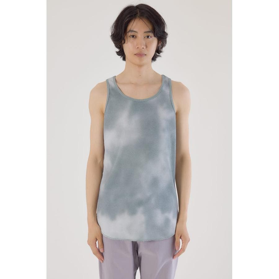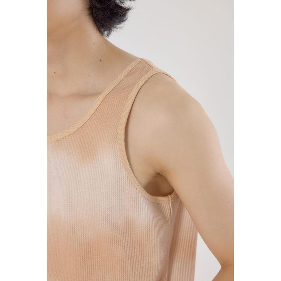 TCワッフルにタイダイプリントをしたタンクトップは1枚でも存在感があります。
