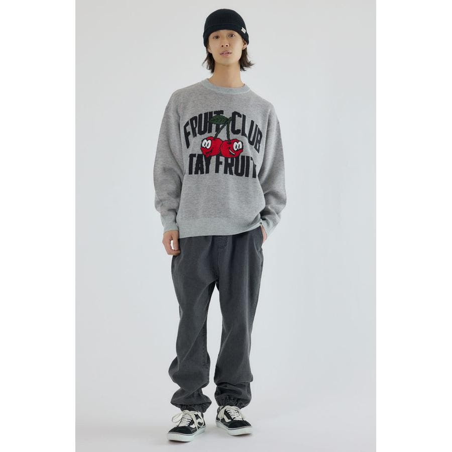 異なるフルーツをモチーフに、アソートデザインで落とし込んだプルオーバーニットです。