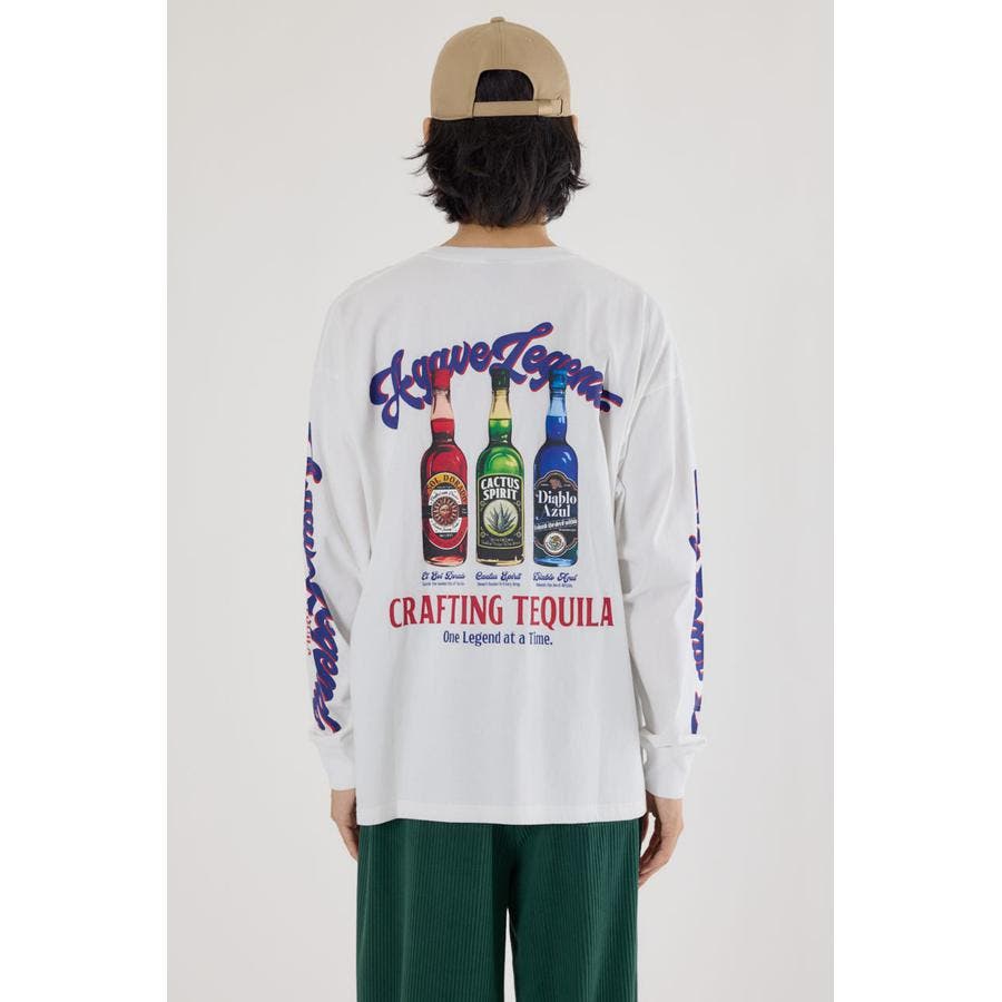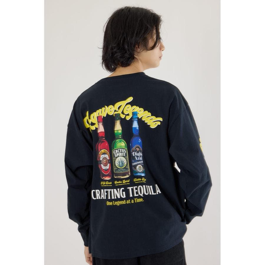 色鮮やかなテキーラボトルが目を惹くデザインがポイントのロングスリーブTシャツ。