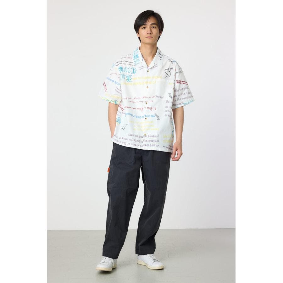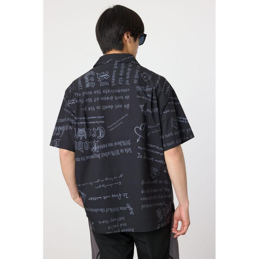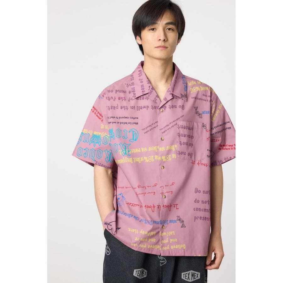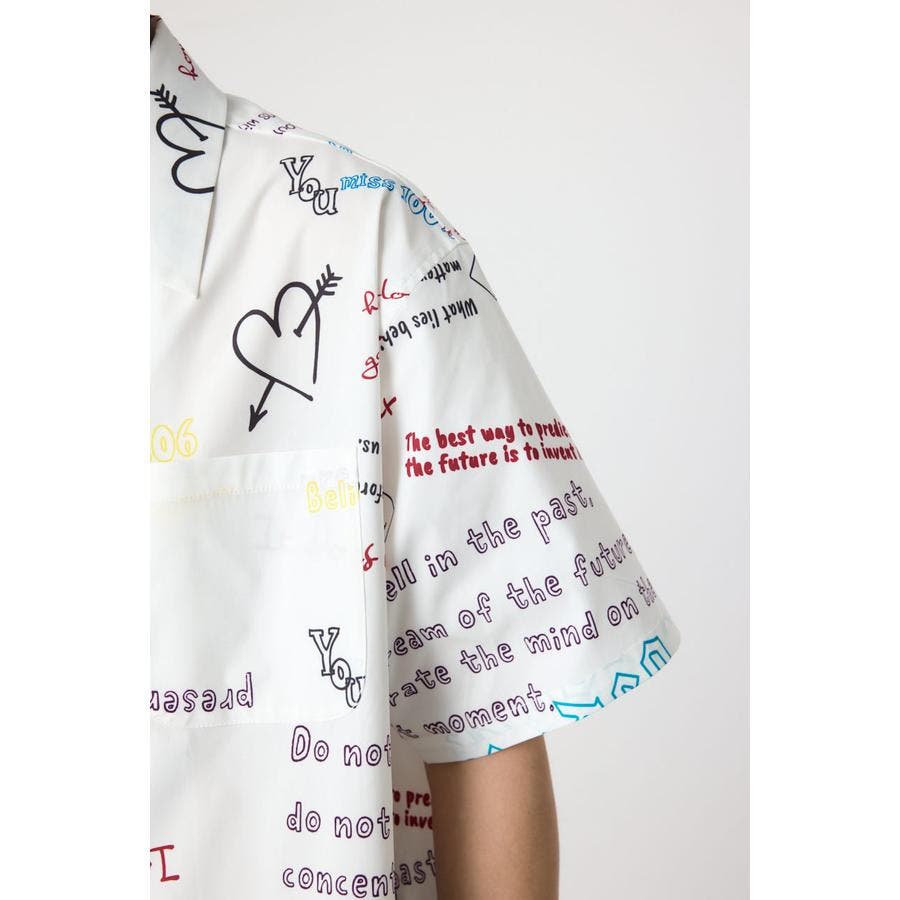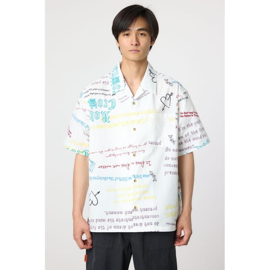 随所にちりばめられた手書き風レタリングデザインやモチーフプリントを組み合わせたオープンカラーシャツ。