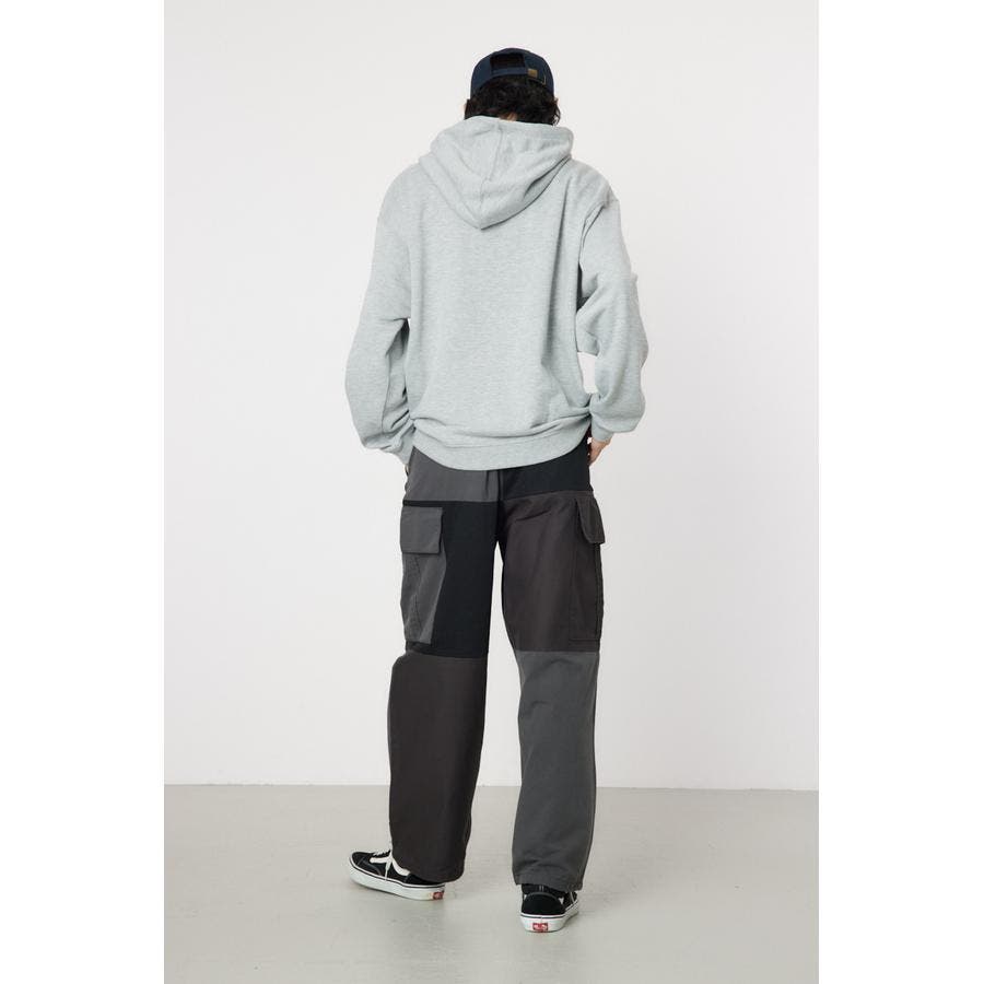 2種類の異なる素材を組み合わせ、個性的な表情を持つパッチワークカーゴパンツ。ウエストはゴム仕様で、裾部分にはドロストが付いているので、その日の気分に合わせてシルエットを変えられるアイテムです。