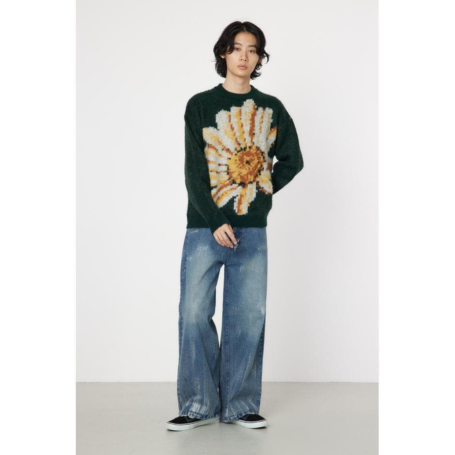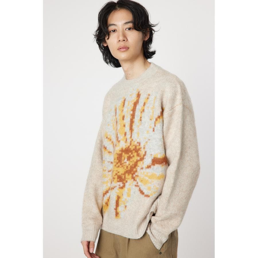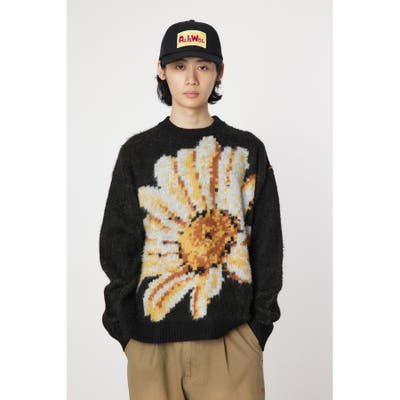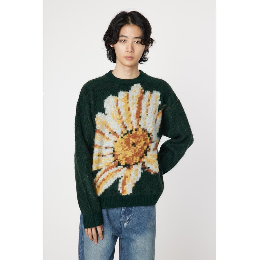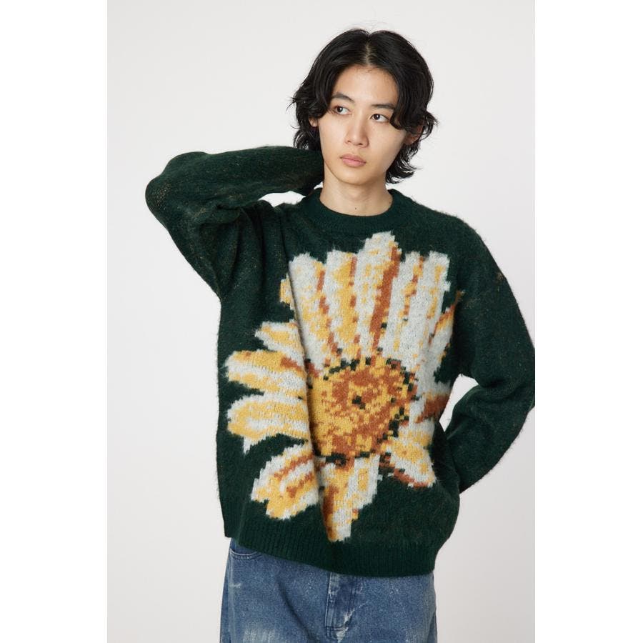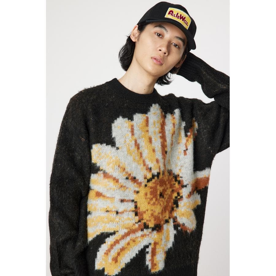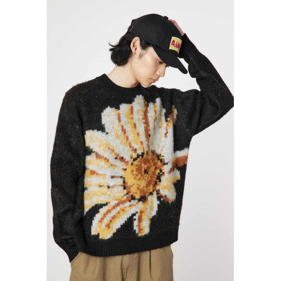 フロントに入った大胆なフラワーモチーフが印象的なニットトップス。肉厚で起毛感のある一着です。
