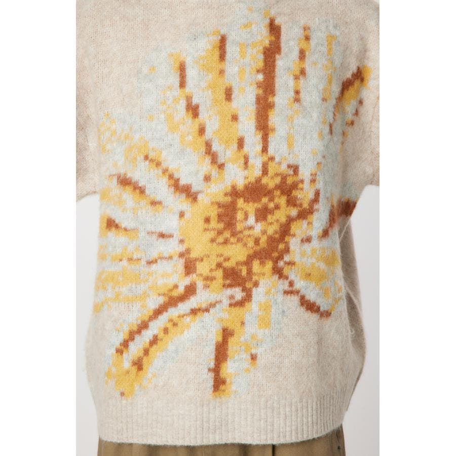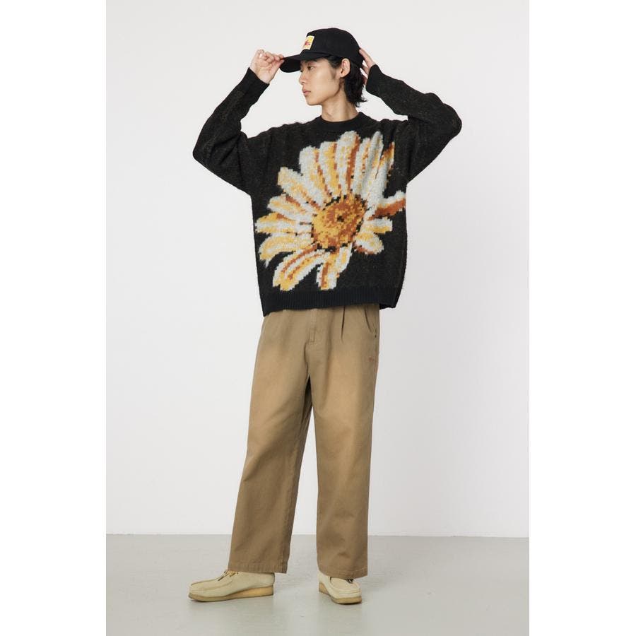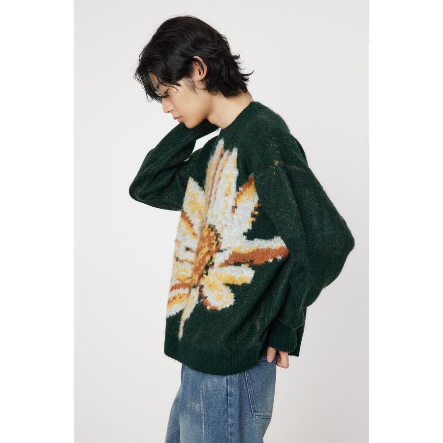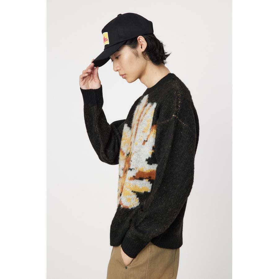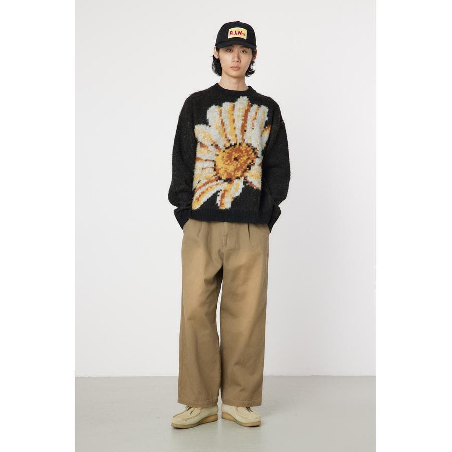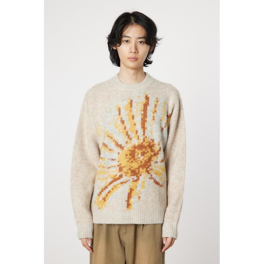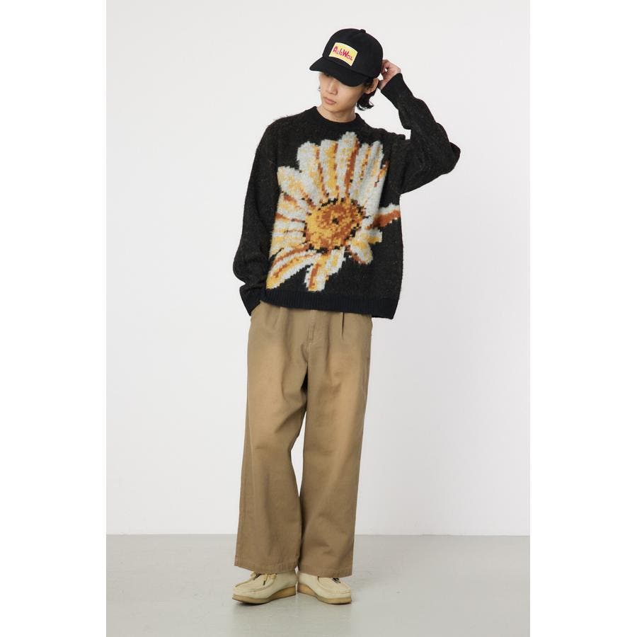 フロントに入った大胆なフラワーモチーフが印象的なニットトップス。肉厚で起毛感のある一着です。