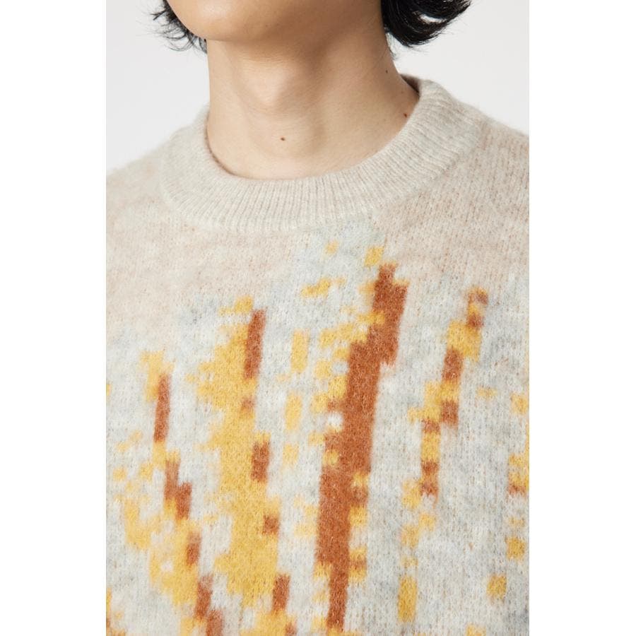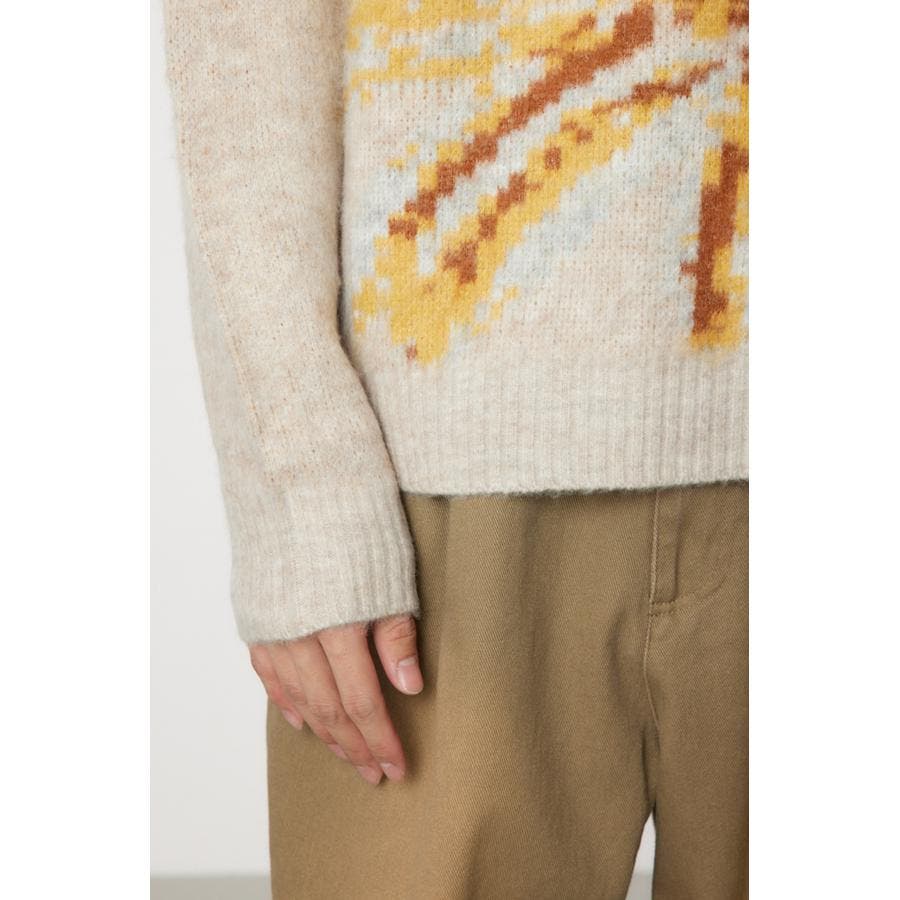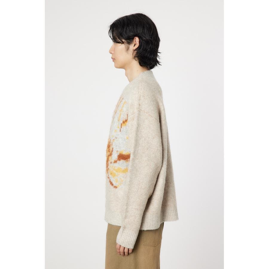モヘヤライクのアクリル素材を使用しています。程よく起毛加工を施し、暖かみもありながら、キャッチーなニット柄でRODEOらしさも表現したアイテム。