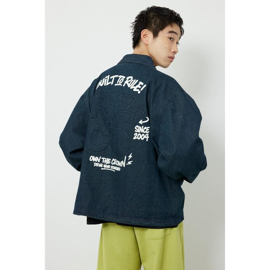 オーバーサイズシルエットのデニムジャケットの背中にはポイントとなる立体エンボス加工のグラフィックが新しく、目をひく仕様になっています。