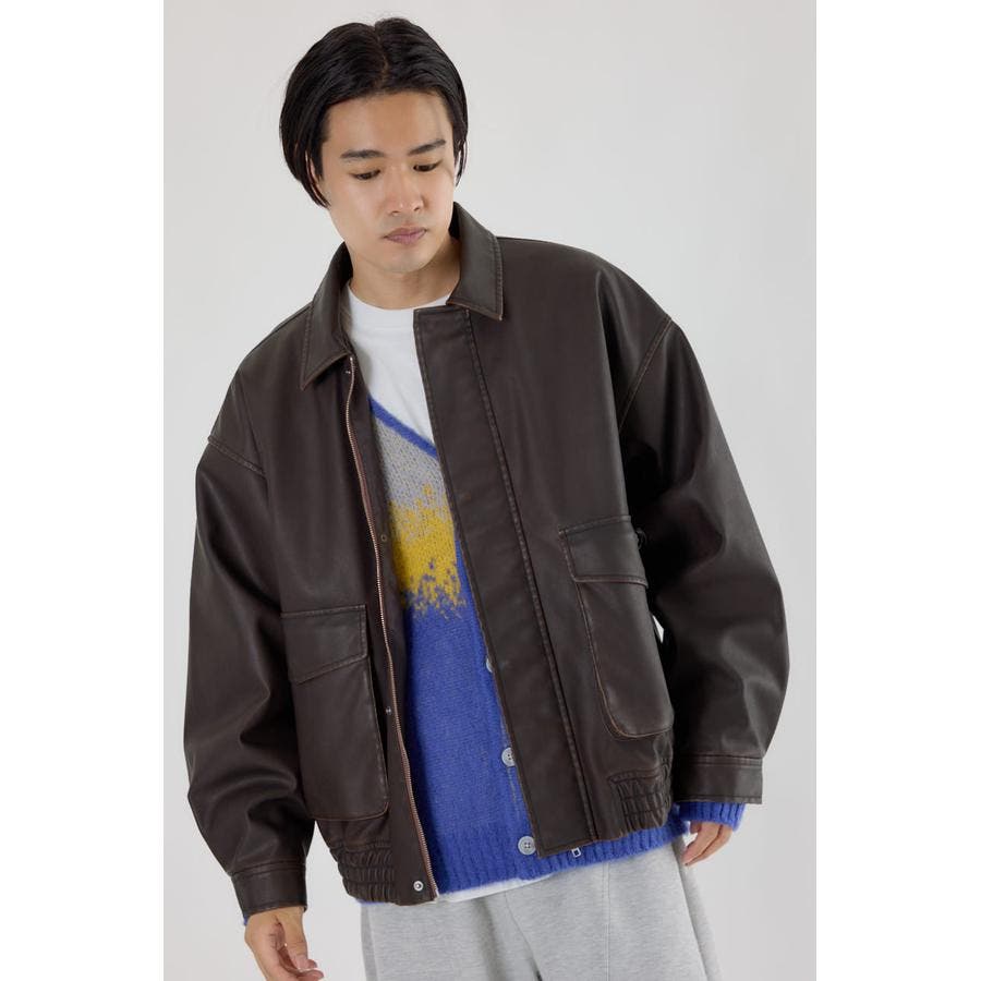 ヴィンテージから着想を得たデザインで、羽織るだけでマニッシュな雰囲気を演出できるレザージャケット。