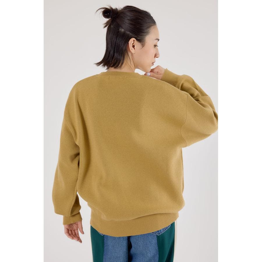 厚すぎない生地感なので1枚でも着やすく、インにシャツ等を合わせたスタイルもおすすめです。