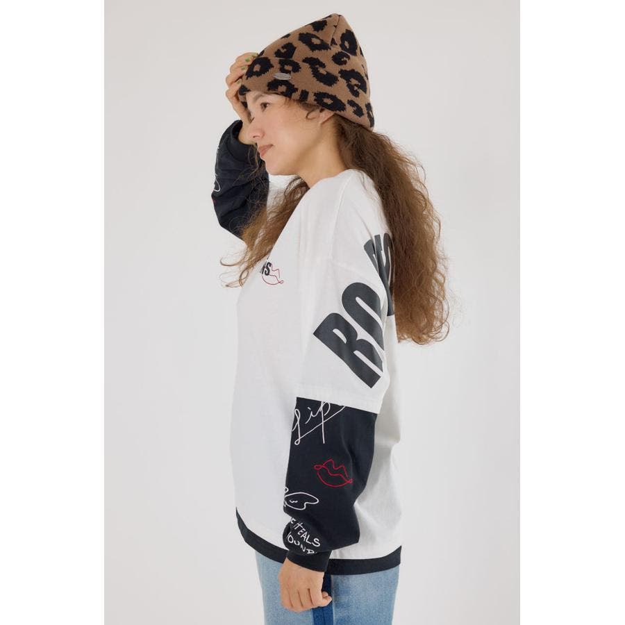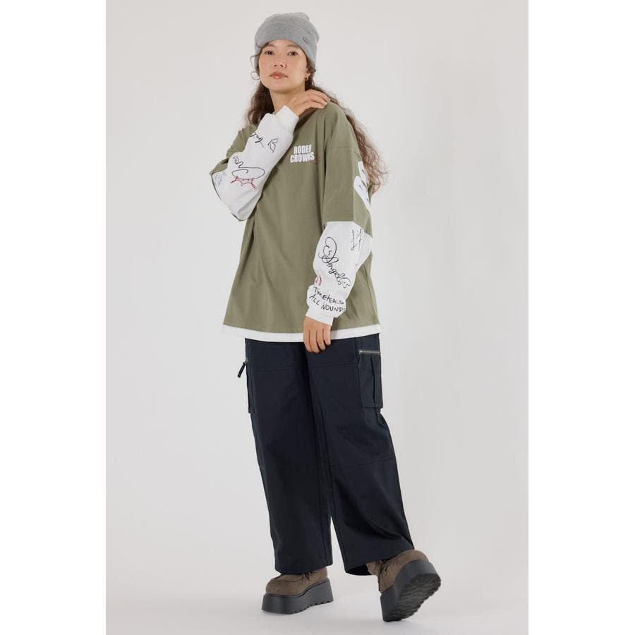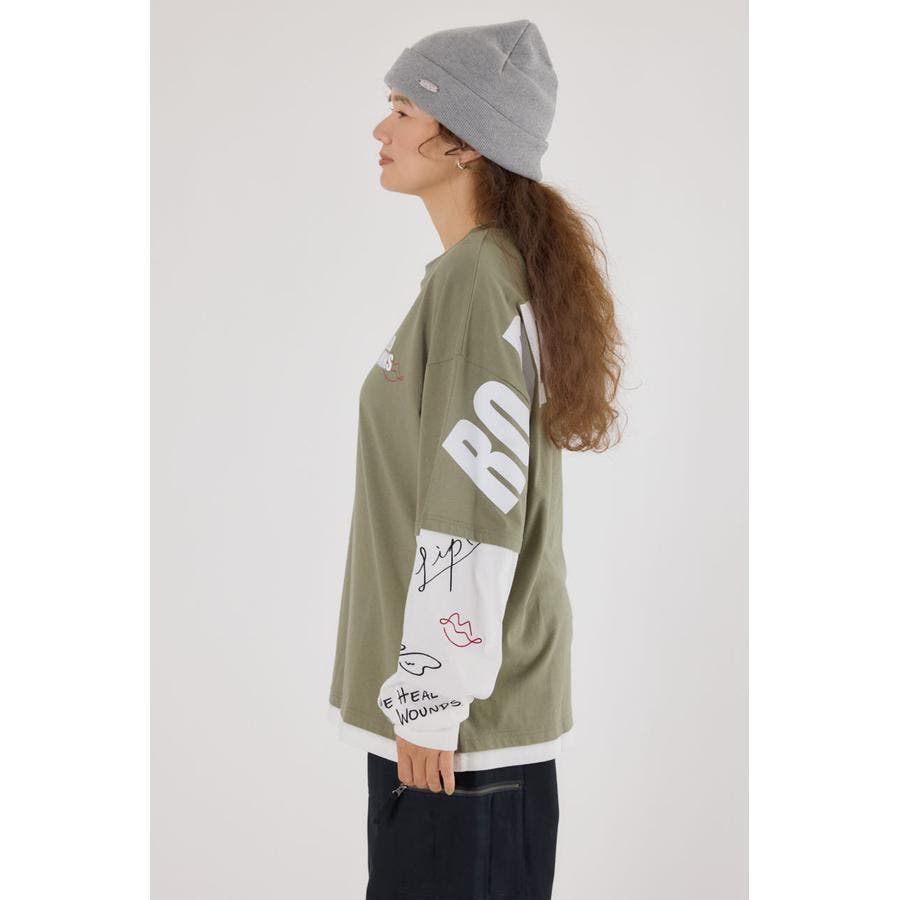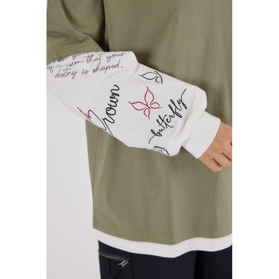 袖はレイヤードディテール、グラフィック部分は刺繍になっています。