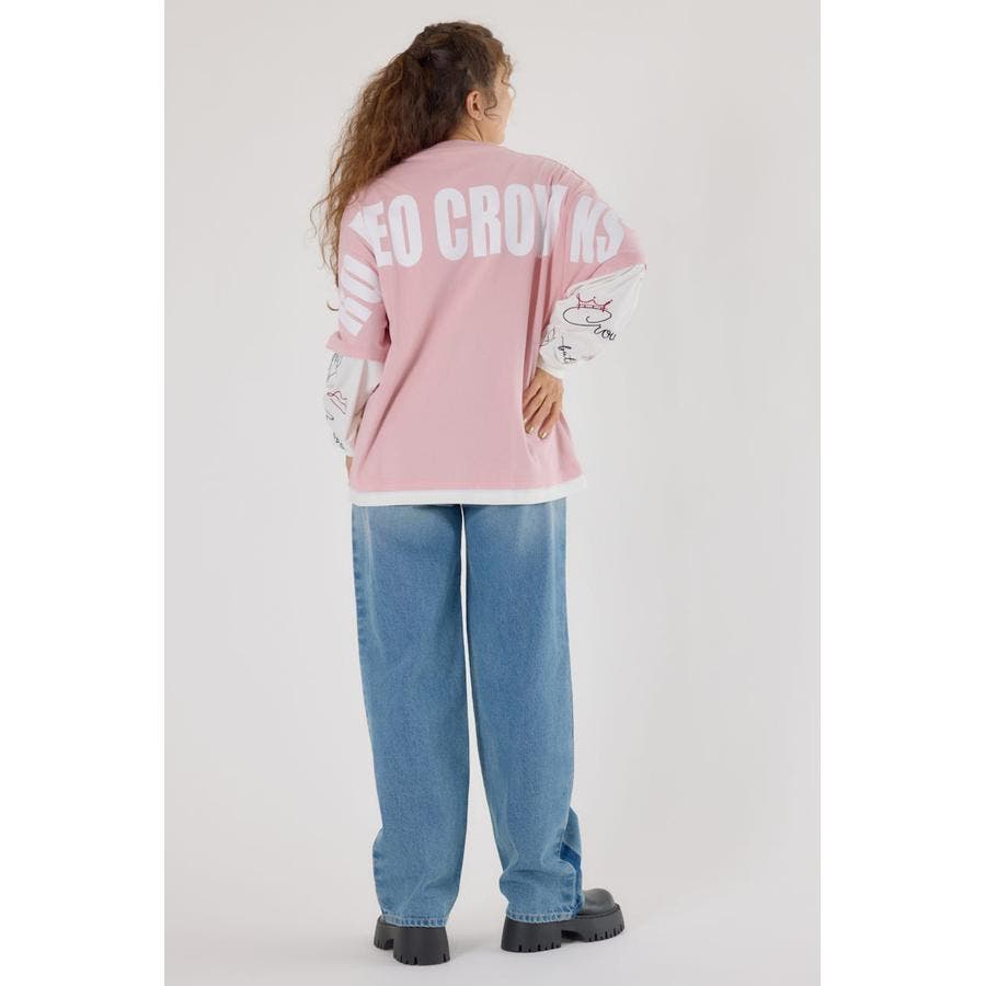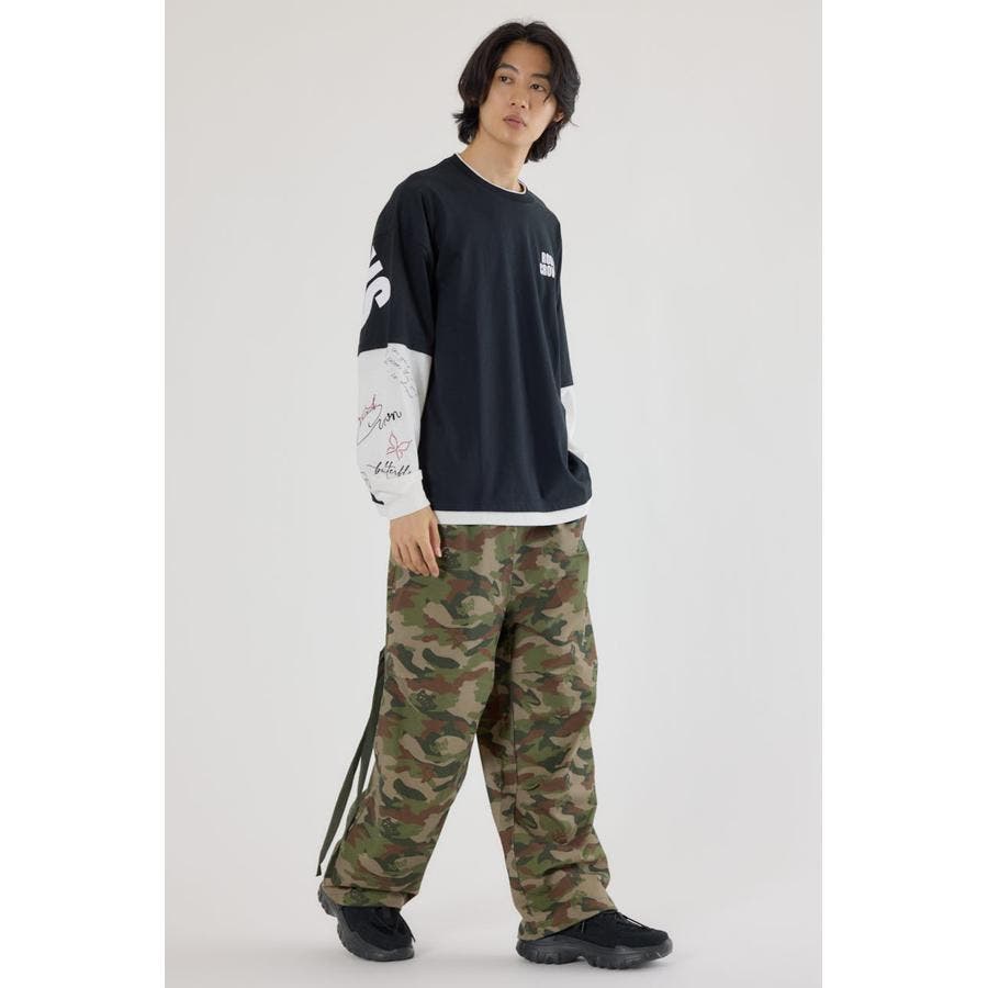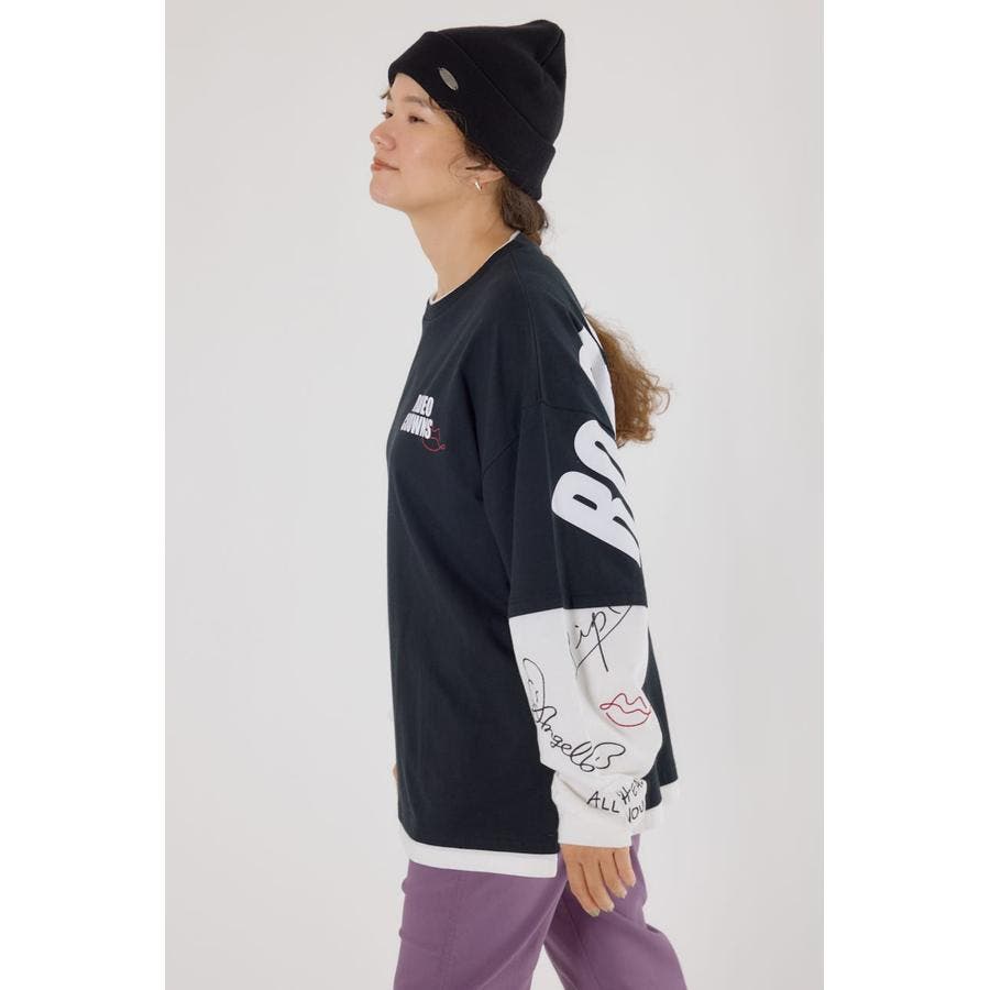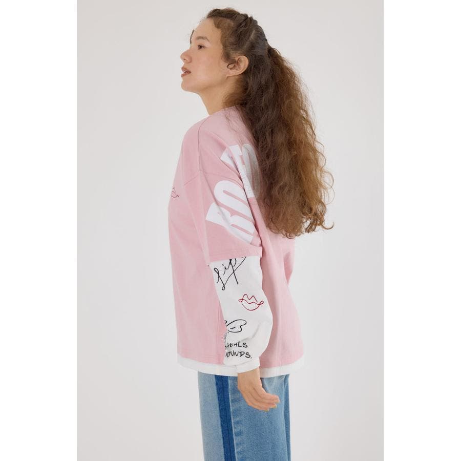 袖はレイヤードディテール、グラフィック部分は刺繍になっています。