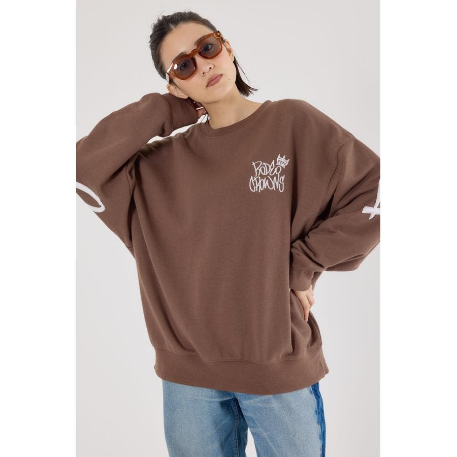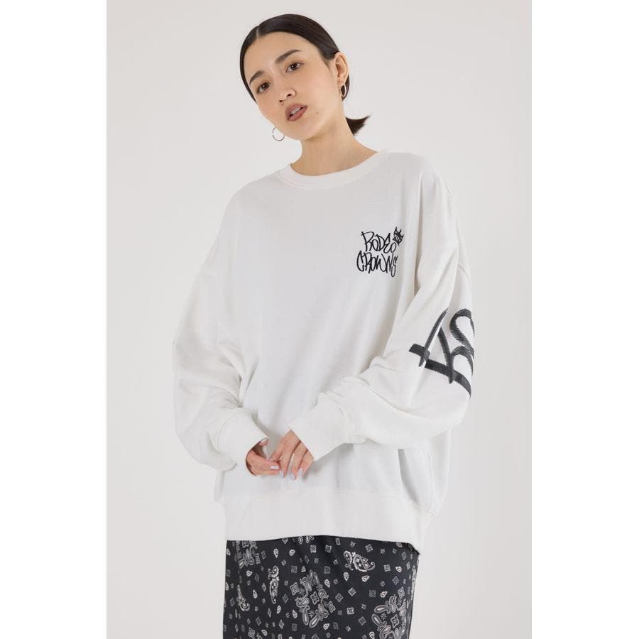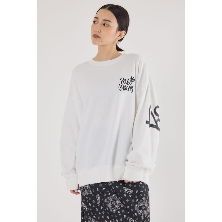 胸にワンポイントとバックにはロゴとRODEO CROWNSのキャラクター、ロディーが掛け合わさったデザインがポイントのスウェット。