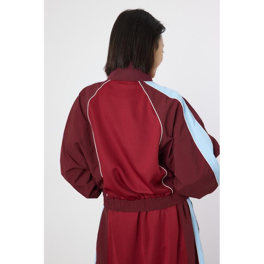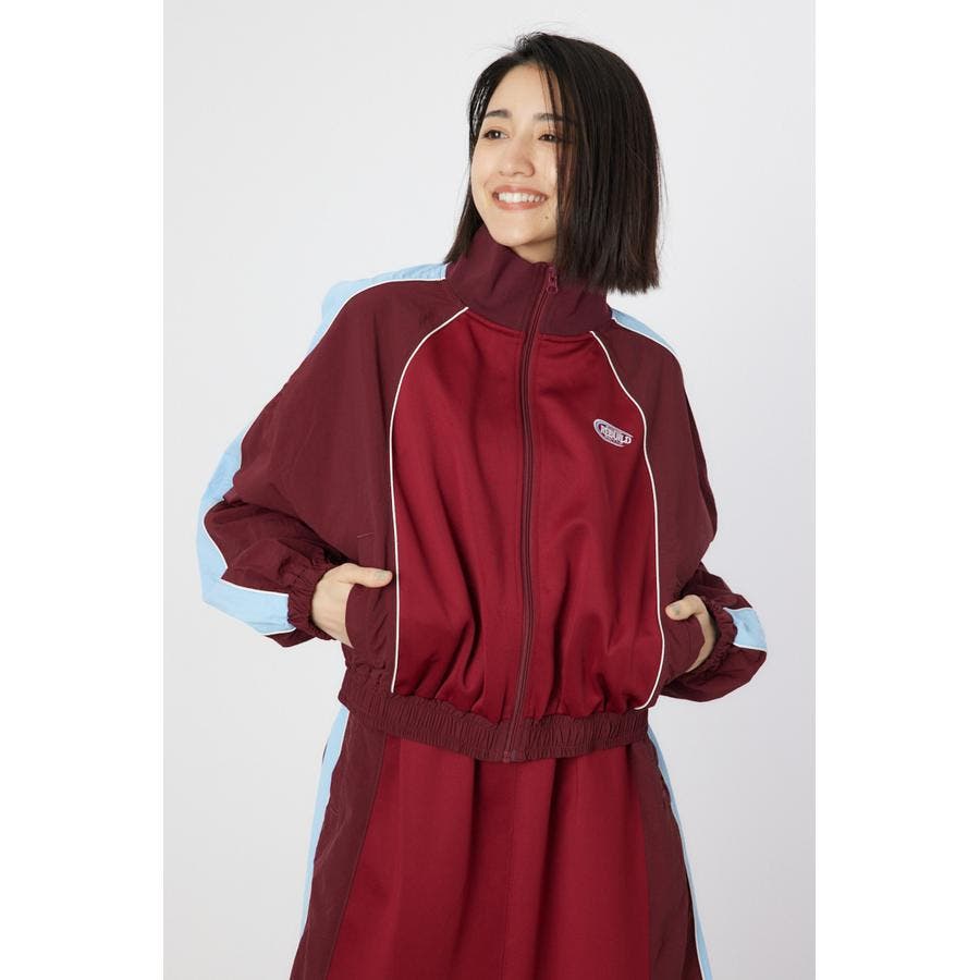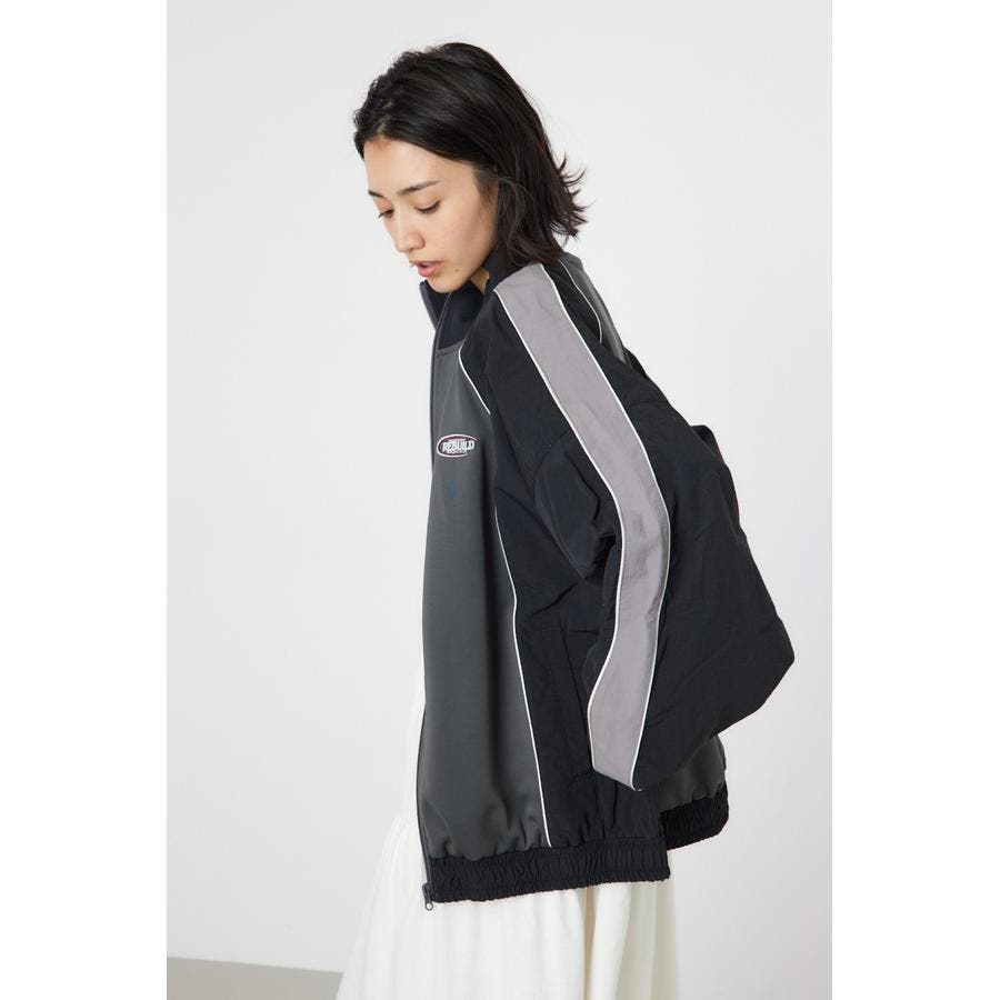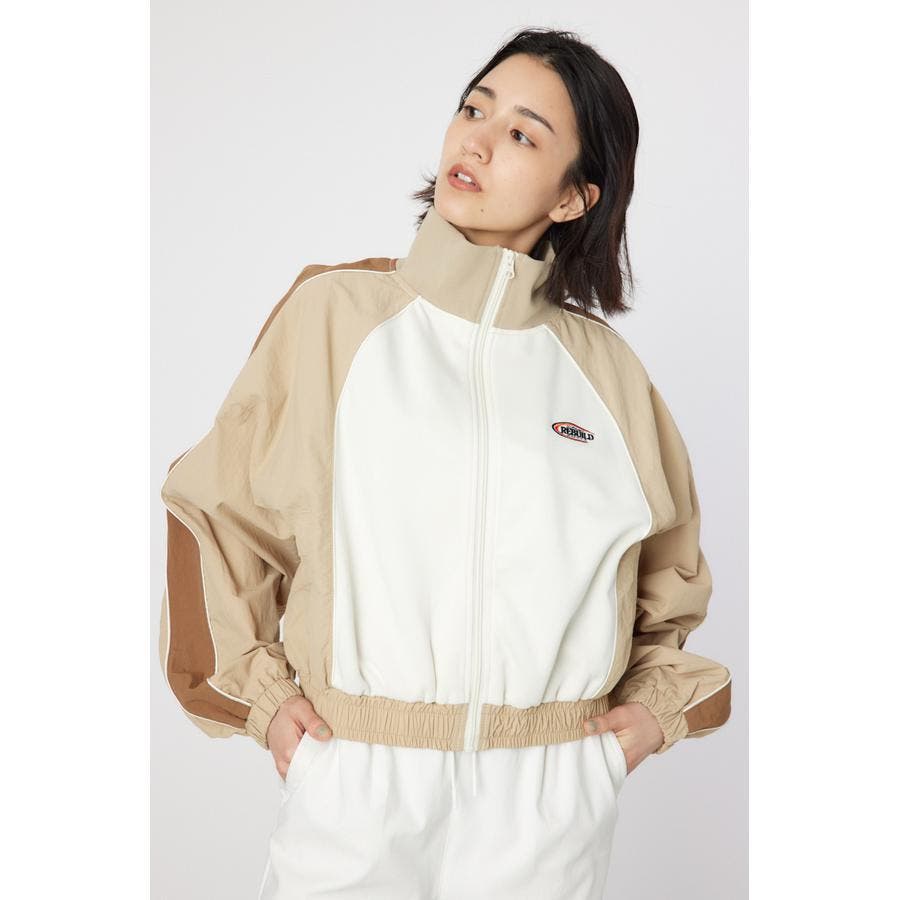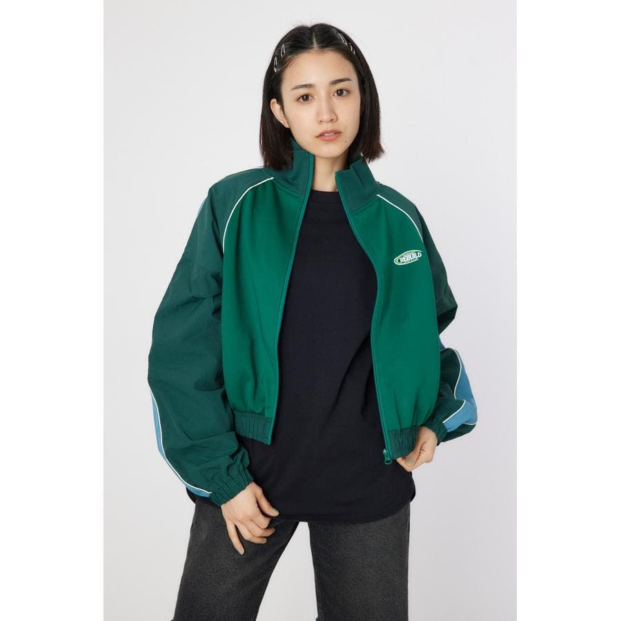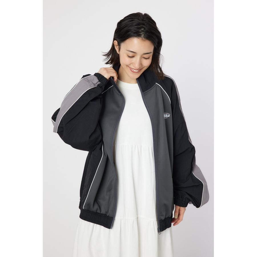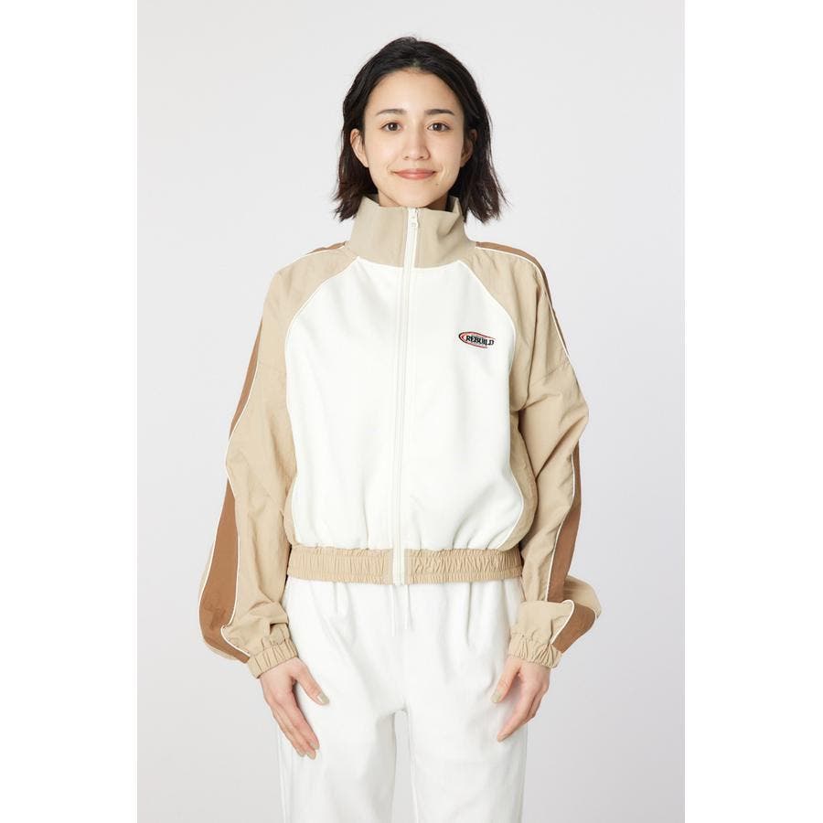 ジャージとナイロンをドッキングしてリメイク風に仕上げたトラックジャケット。インパクトがあるので、羽織るだけで主役になるアイテム。Mサイズは短丈、Lサイズはユニセックスで着用できます。
