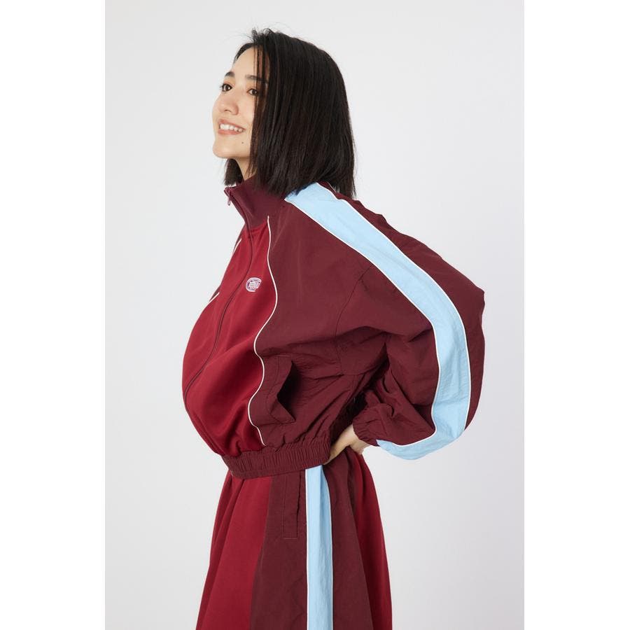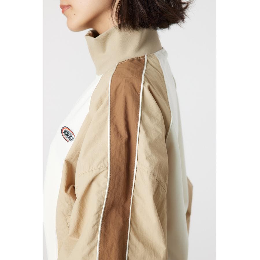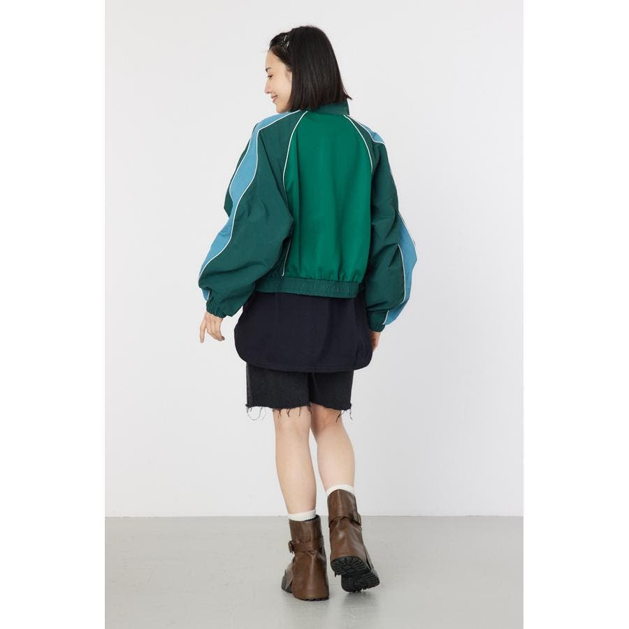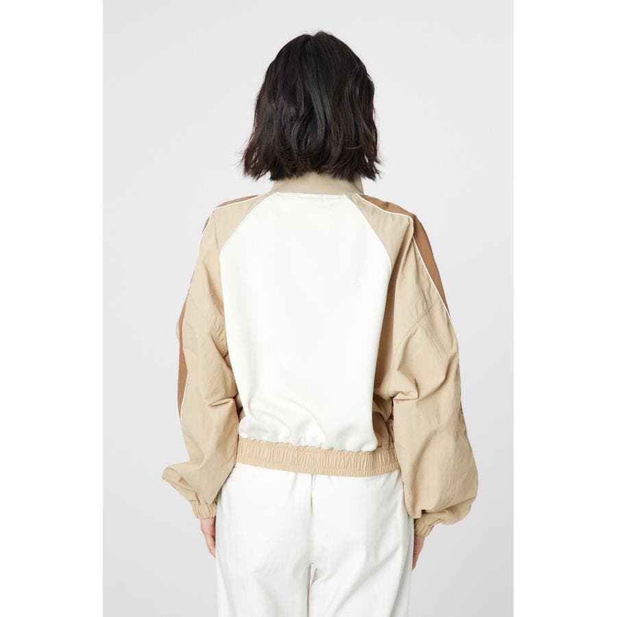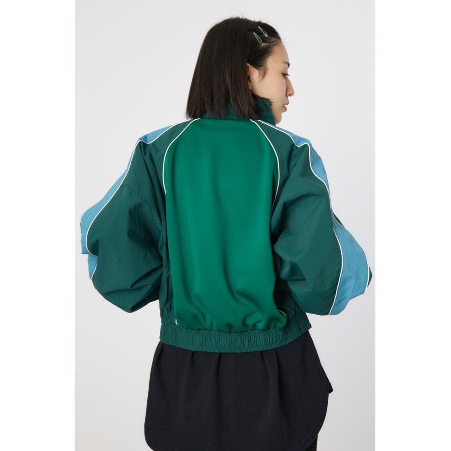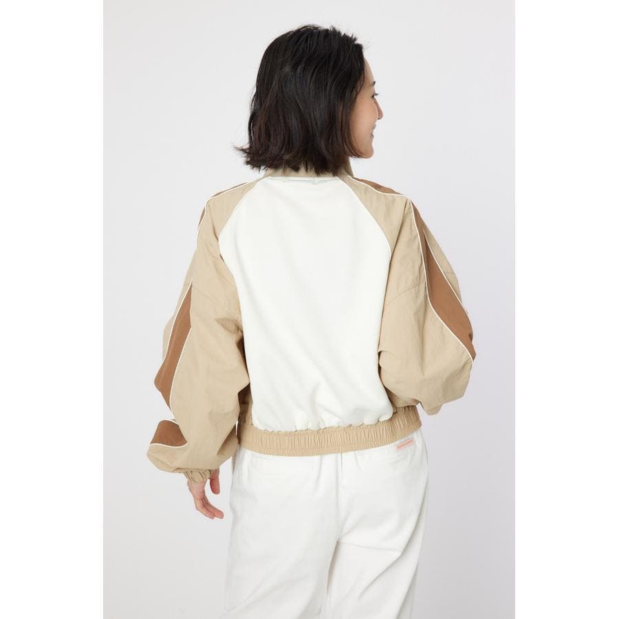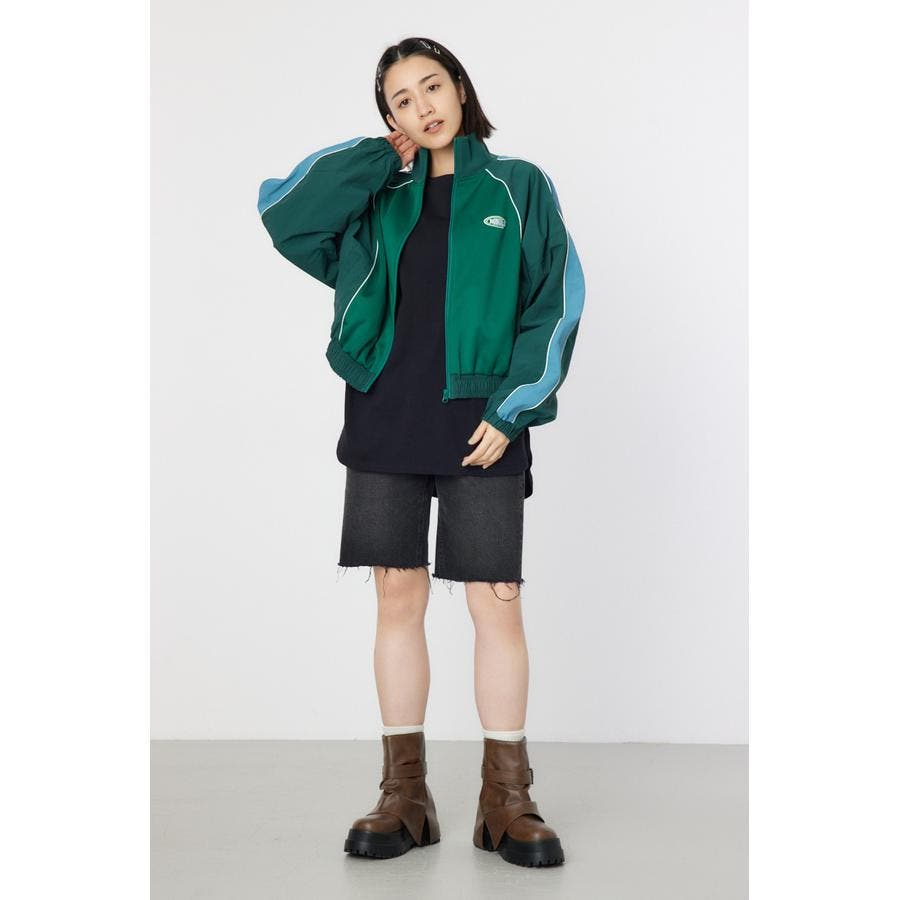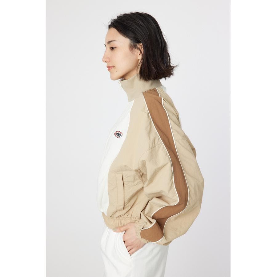 ジャージとナイロンをドッキングしてリメイク風に仕上げたトラックジャケット。インパクトがあるので、羽織るだけで主役になるアイテム。Mサイズは短丈、Lサイズはユニセックスで着用できます。