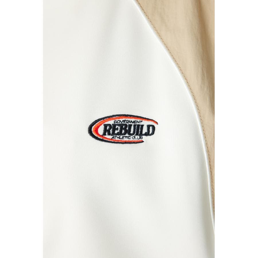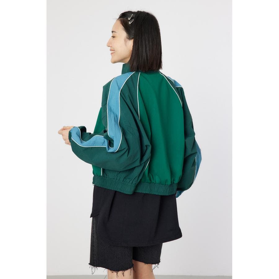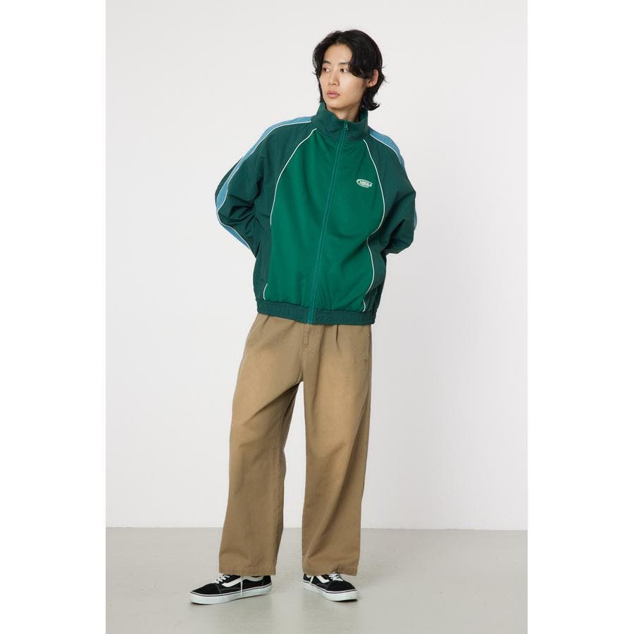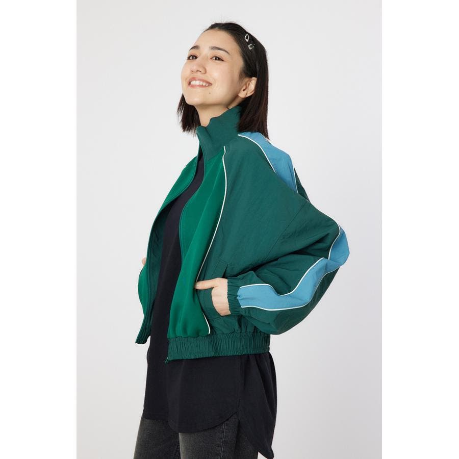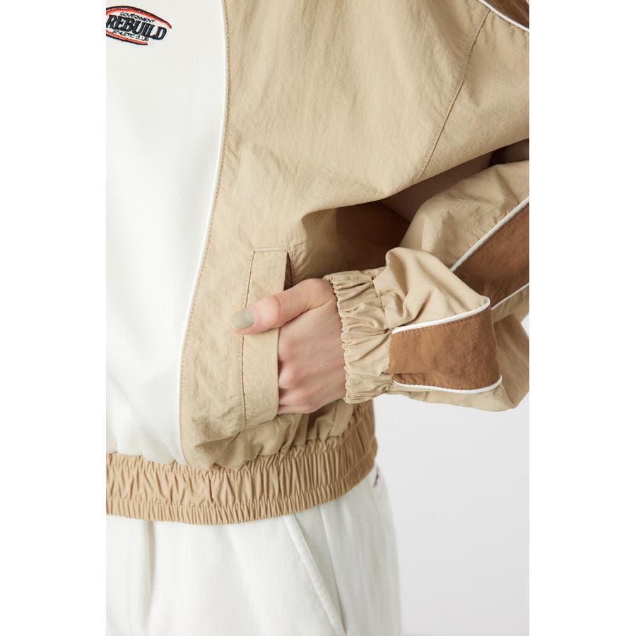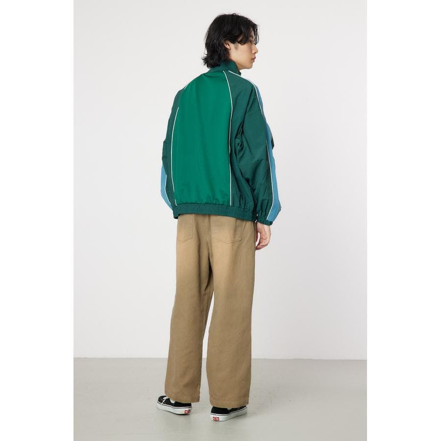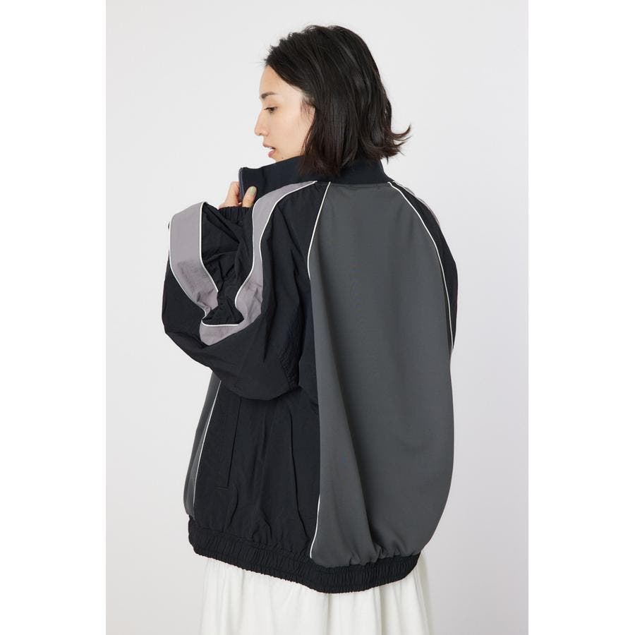 ジャージとナイロンをドッキングしてリメイク風に仕上げたトラックジャケット。インパクトがあるので、羽織るだけで主役になるアイテム。Mサイズは短丈、Lサイズはユニセックスで着用できます。