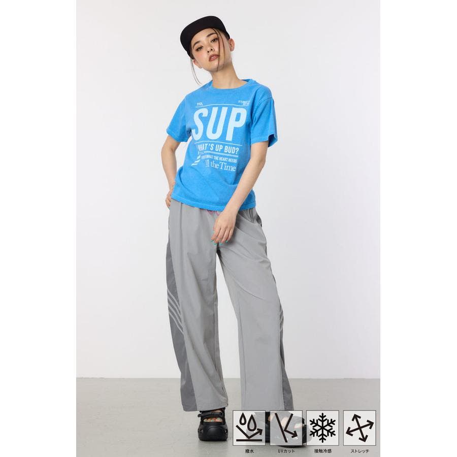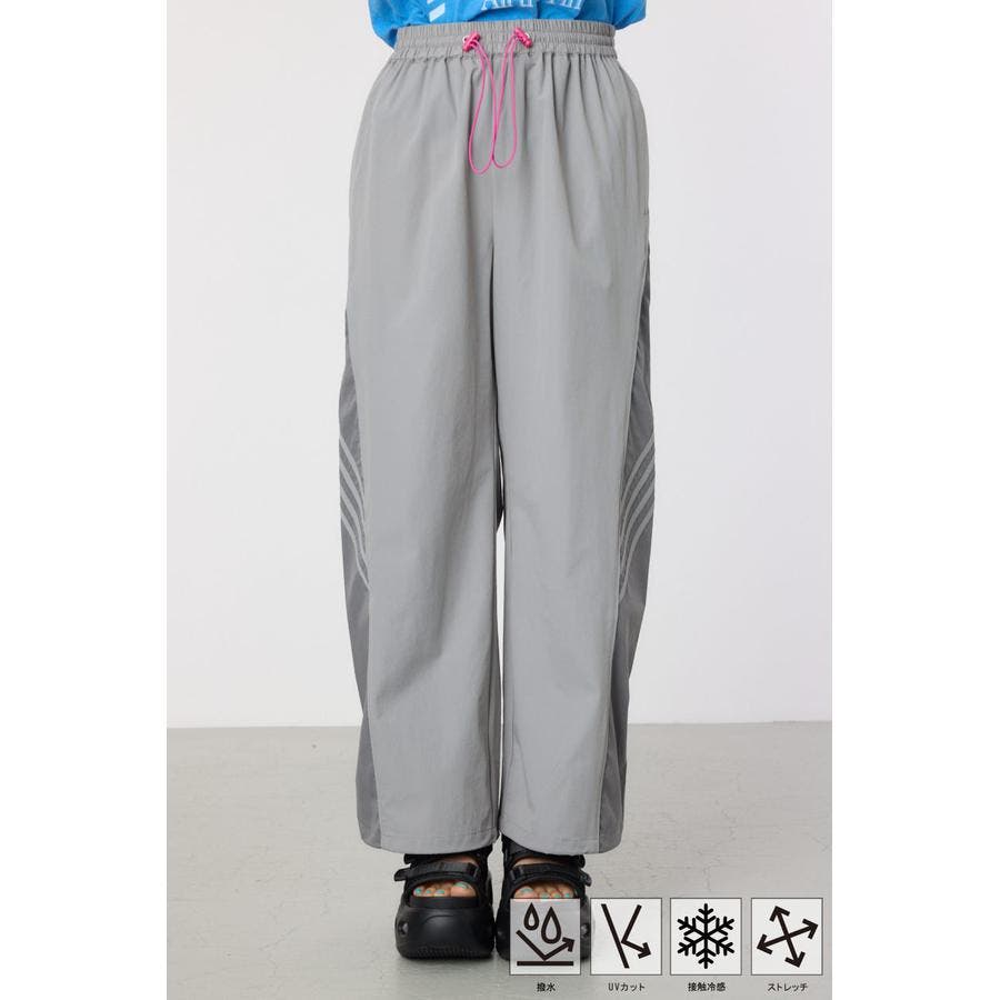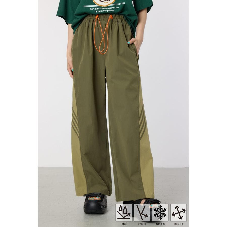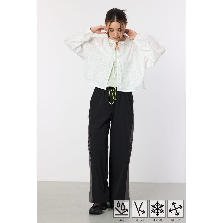 ウエストはゴム仕様で裾口にはシルエットアレンジ可能なドローコードがあります。