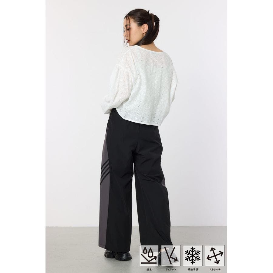 ライン入りの脇切り替えでスタイルアップが叶うパンツ。