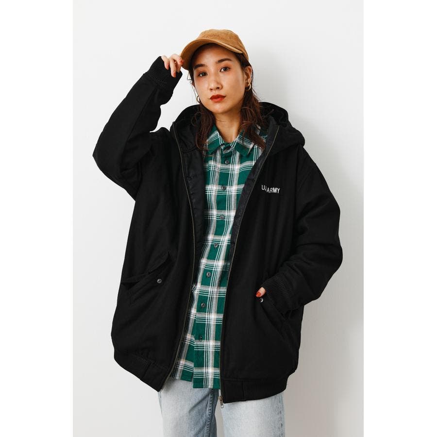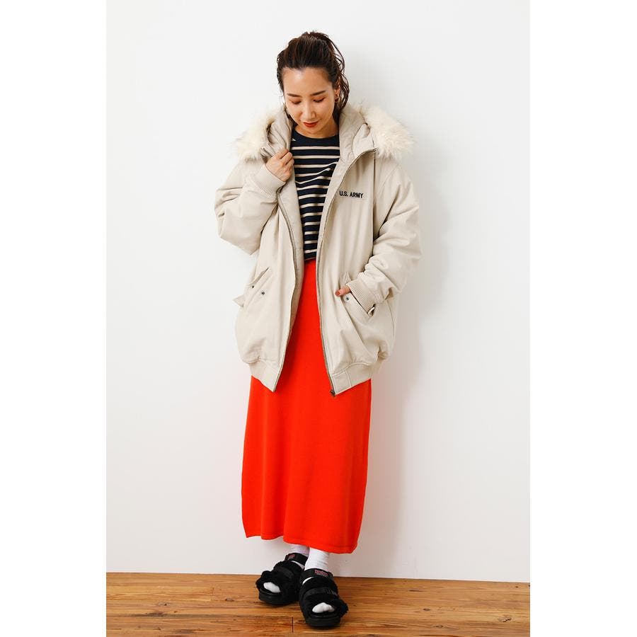 厚手の物を中に着ても余裕で着れるしおしりまでスッポリ隠れるので良き!
