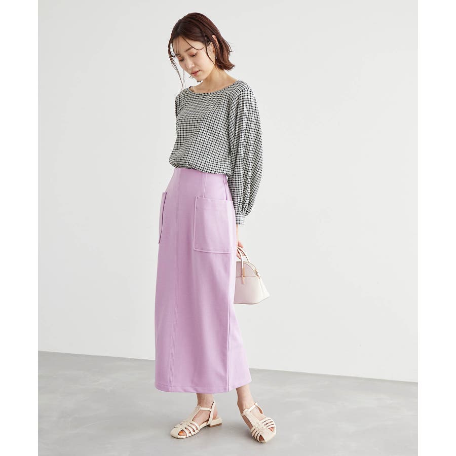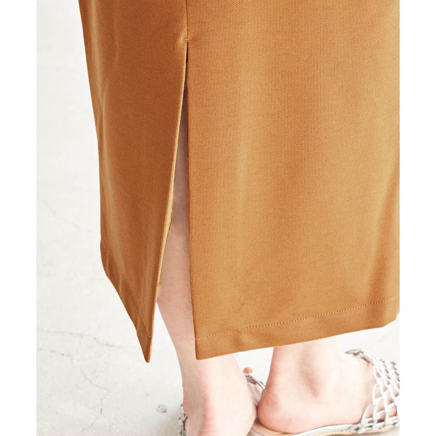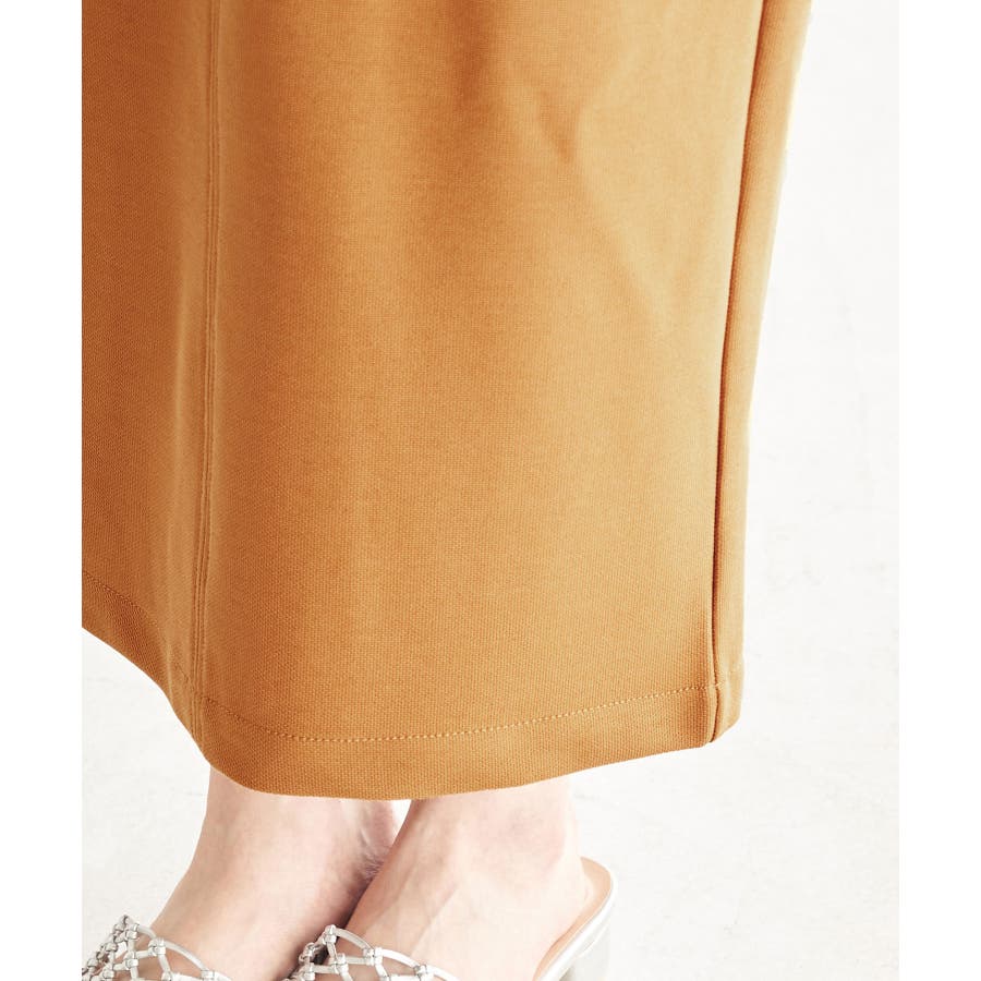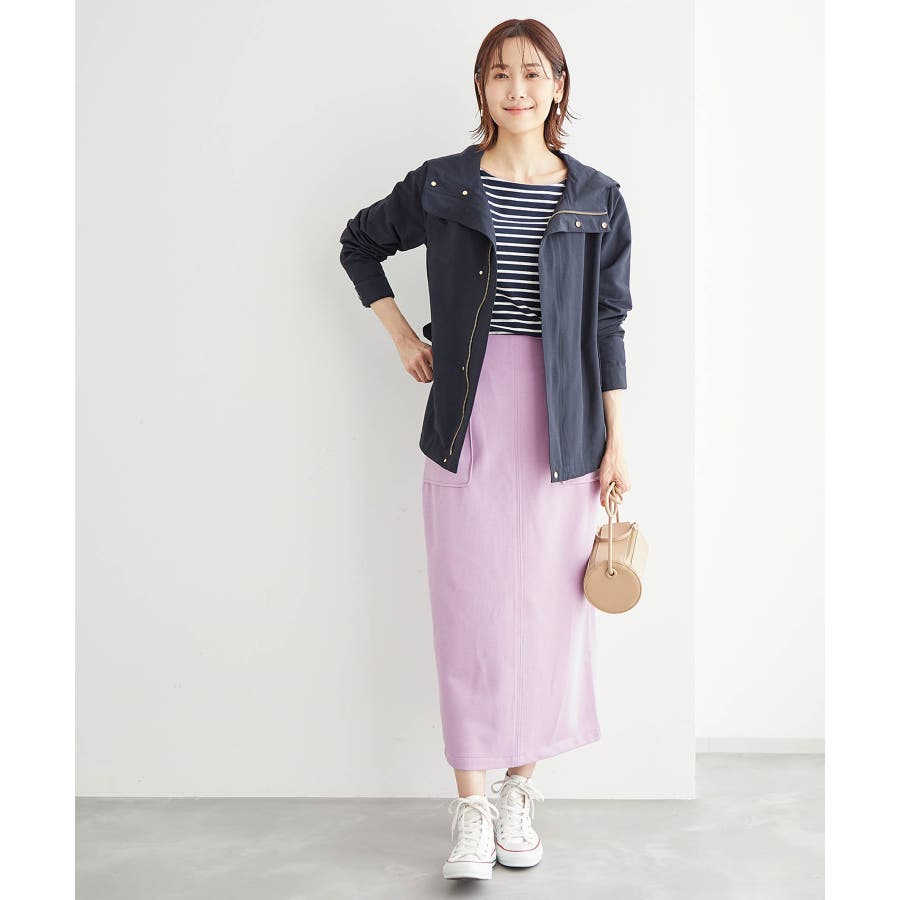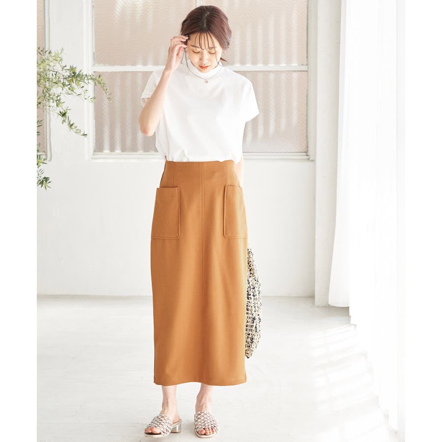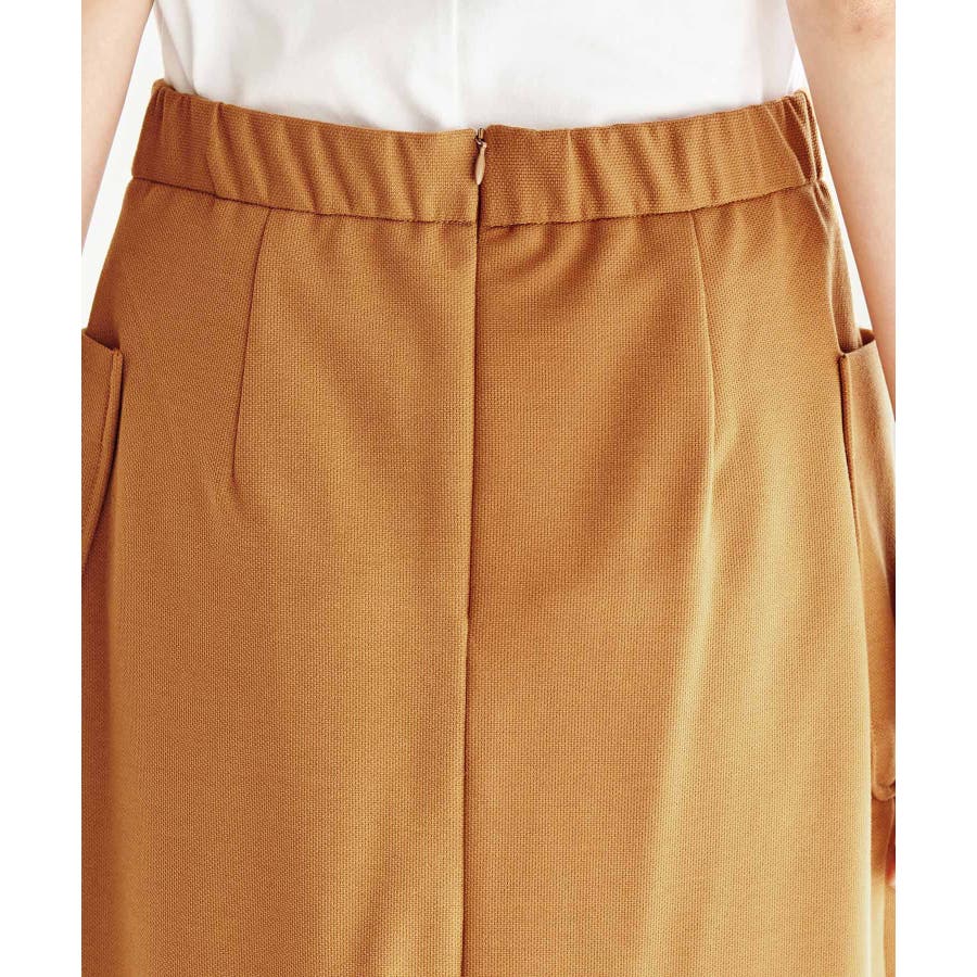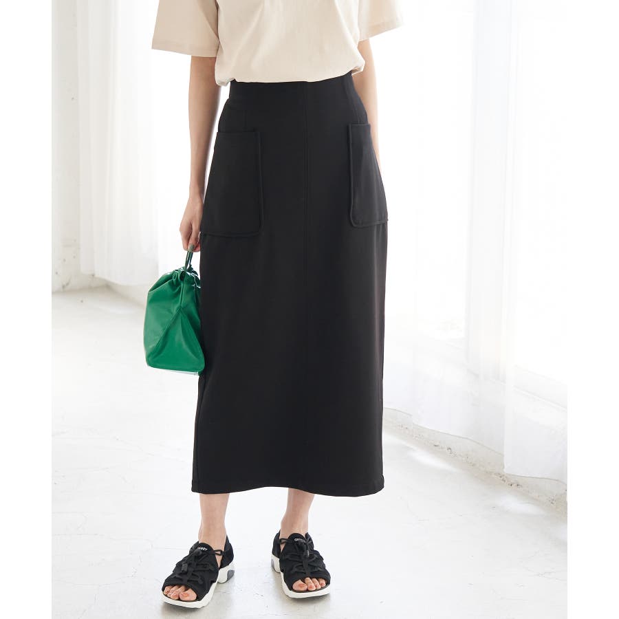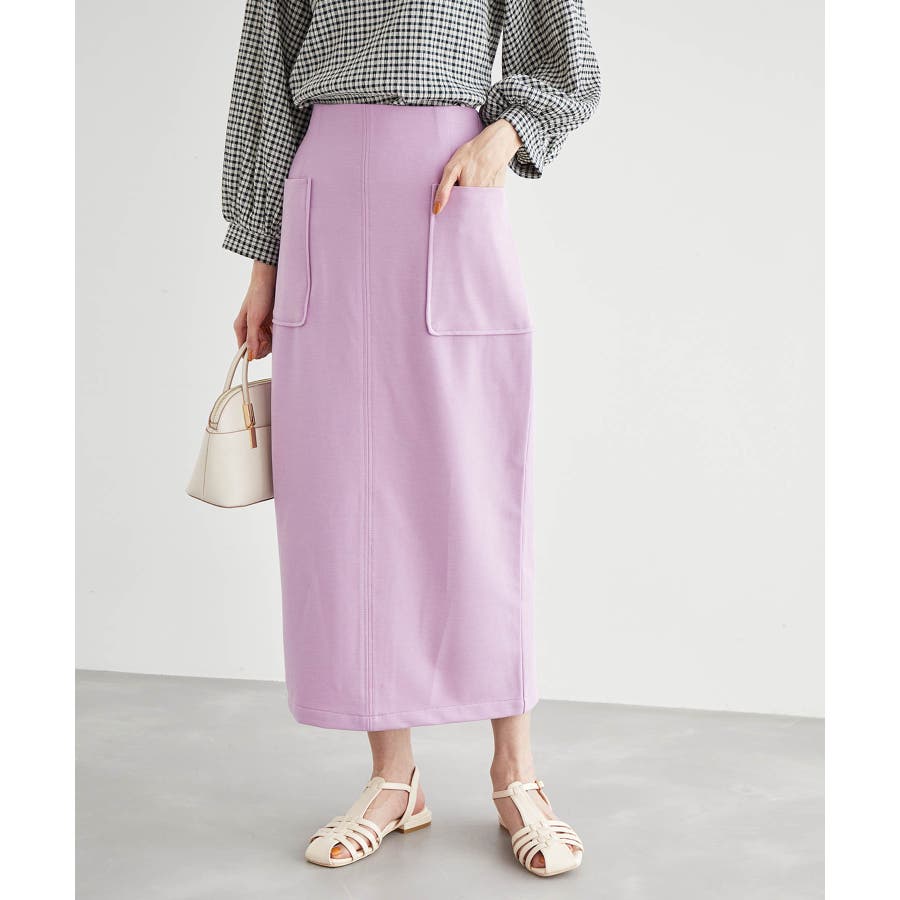 【素材感】 ・伸縮性のあるジャージー素材。 ・レーヨン混で落ち着いた光沢感。 【デザイン・シルエット】 ・タイトシルエットながら動きやすさ抜群。 ・ビッグポケットがポイントとなり、気になる腰のラインをカバー。 【カラー】 ・春らしいカラーを揃えた4色展開。 ・ブルー(44)は少し緑がかったのあるブルーになります。 【スタイリングポイント】 ・カジュアルなTシャツをインして、大人なオフスタイルが完成。 ・オレンジはブラウン系のトップスを合わせると、まとまりのある色使いに。 ----------------------------- 裏地:あり 透け感:なし 伸縮性:あり 生地感・厚さ:普通 ポケット:あり ウエスト:ゴム 季節:春・夏 ----------------------------- ※撮影時の光、お使いのモニター環境によって色の見え方が違う場合がございます。 ※モデル身長:165cm 着用サイズ:38 : □■着用レビュー■□ 〈スタッフA〉 身長:153cm 普段の着用サイズ:36(S)又は38(M) 着用サイズ:36 サイズ感:スッキリとした細身なシルエットです。 生地感:ジャージ素材なのでかなり伸びがよいです。 着心地:伸びの良い素材なので細身ですが動きやすく軽い着心地です。 おすすめコーデ:細身のアイラインスカートなのでボリュームのあるブラウスをINしたコーデやカジュアルなTシャツ合わせがおすすめです。 〈スタッフB〉 身長:162cm 普段の着用サイズ:38(M) 着用サイズ:38 サイズ感:タイトスカートですが全体的にゆとりがあり、ヒップや足のラインは拾いません。丈は足首が出る長さです。 素材感:少し厚手で下着のラインが響きにくく安心感があります。 着心地:伸縮性があり、バックスリットが施されているのでとても動きやすいです。 おすすめコーデ:フロントの大きなポケットがポイントなのでトップスインして着用するのがオススメです。