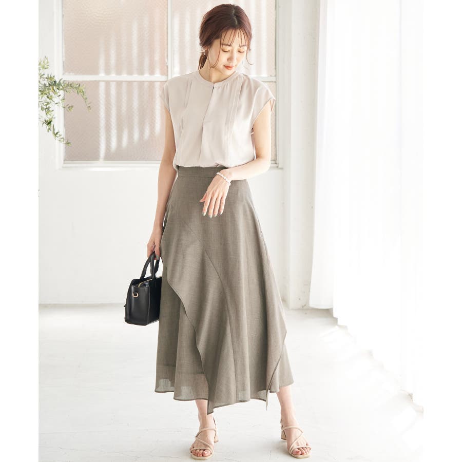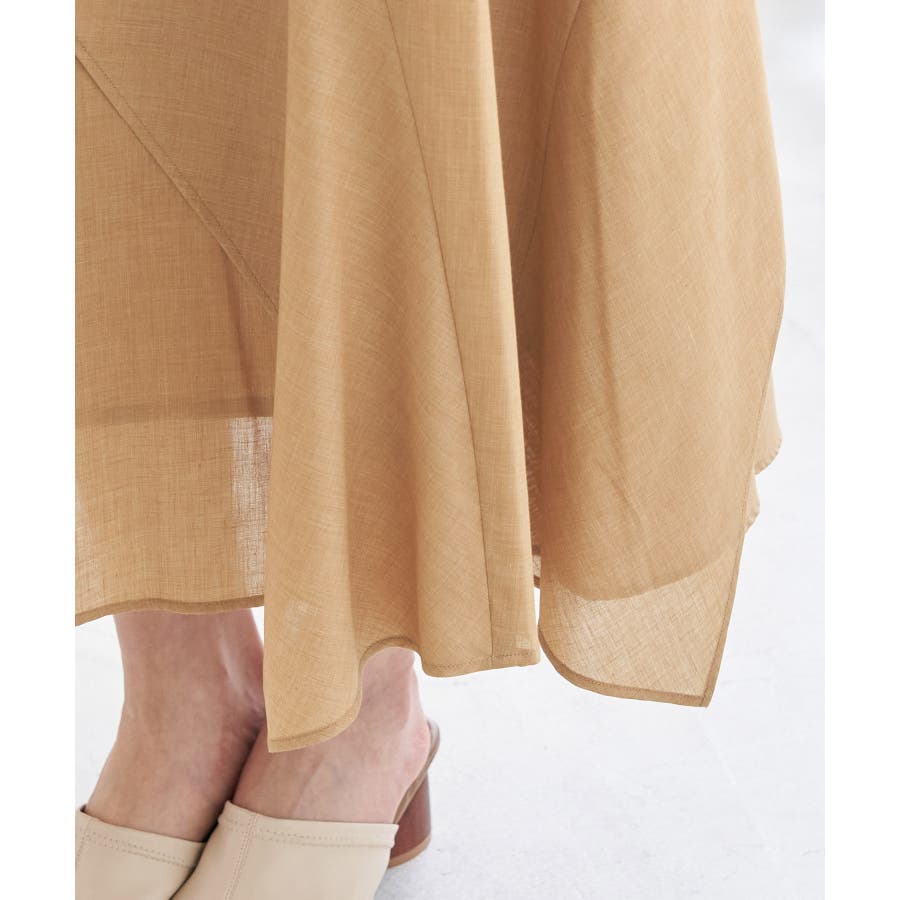 【素材感】 ・さらりとした生地感。 ・裾はやや透け感がある軽やかな素材。 ・色の絶妙な濃淡が楽しめる杢調の素材を採用。 【デザイン・シルエット】 ・アシンメトリーな切り替えを入れた、華やかなランダムフリルスカート。 【カラー】 ・落ち着きのある色味の4色展開。 ・キャメル(25)はオレンジがかった明るめのキャメル、カーキ(36)はくすみがかったブラウンに近い色味になります。 【スタイリングポイント】 ・シンプルなカットソー合わせで、スカートが主役の着こなしにするのがマスト。 ・ピンクはパステルトーンのトップスと相性抜群。 ----------------------------- 裏地:あり 透け感:なし 伸縮性:ややあり 生地感・厚さ:やや薄手 ポケット:なし 季節:夏 ----------------------------- ※撮影時の光、お使いのモニター環境によって色の見え方が違う場合がございます。