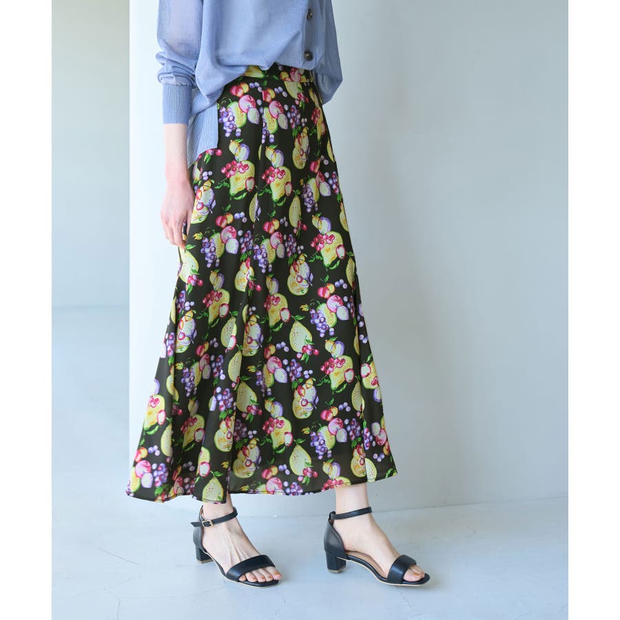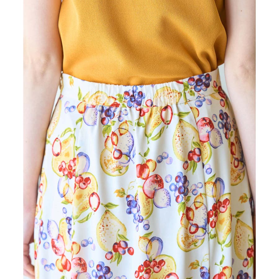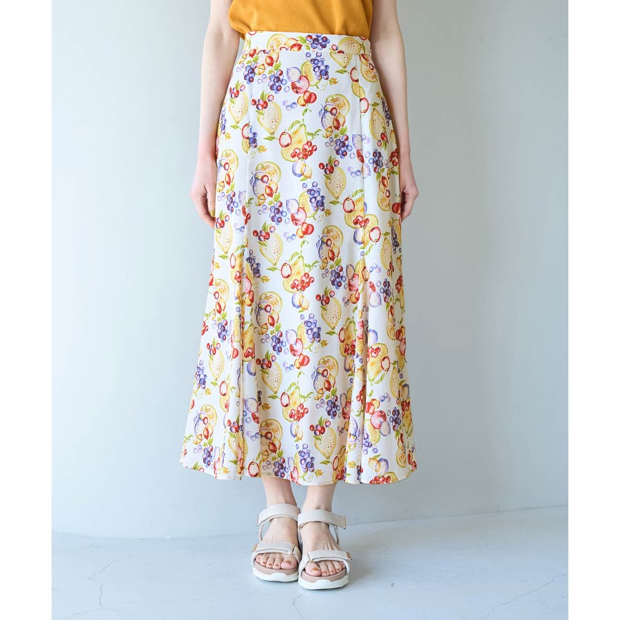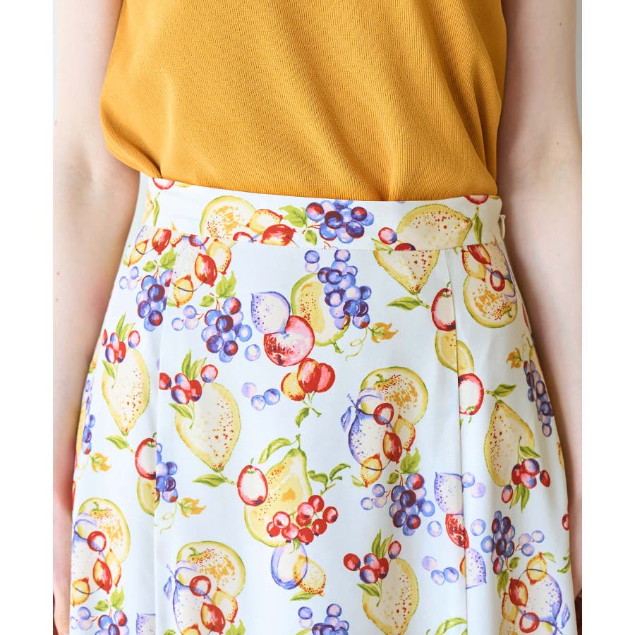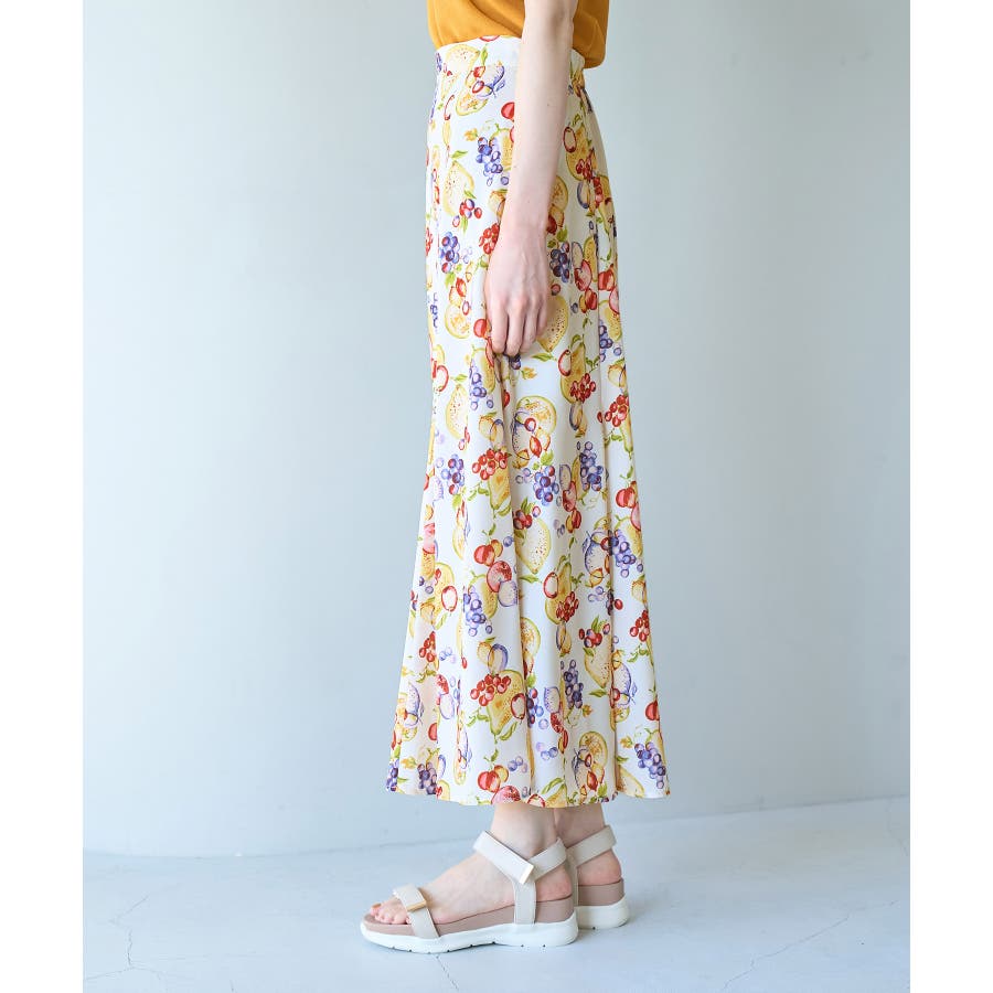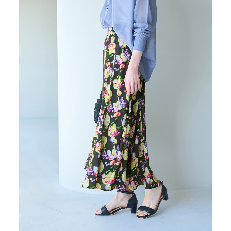 【素材感】 ・再生ポリエステルを使用した、サステナブルなアイテム。 ・さらりとした生地感。 ・シワになりにくいポリエステル100% 【デザイン・シルエット】 ・彩り豊かなトロピカルフルーツプリント生地を使用。 ・大人な着こなしが叶うメリハリマーメイドライン。 ・ベルトラインは後ろ側がゴム仕様。 【カラー】 ・ブルー系、ホワイト系の爽やかな2色展開。 【スタイリングポイント】 ・リブニットに合わせてクラシカルなコーディネートに。 ・トップスはタイトなものを選ぶか、すっきりインするのがおすすめ。 ・春はフラットシューズを、夏はサンダルに履き替えて季節の変化を楽しんで。 ・同シリーズでKIDS(品番:GRC23000)も展開しているので、親子お揃いも一押し。 ----------------------------- 裏地:あり 透け感:裏地がついてないところはややあり 伸縮性:なし 生地感・厚さ:薄手 ポケット:なし ウエスト:後ろゴム その他仕様:左ファスナー 季節:夏 ----------------------------- ※撮影時の光、お使いのモニター環境によって色の見え方が違う場合がございます。 ※KIDSは一部店舗限定となります。 ※モデル身長:165cm 着用サイズ:38