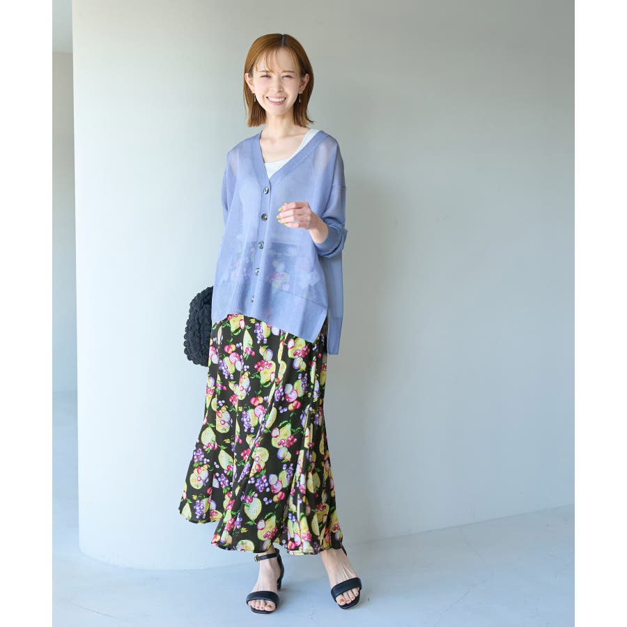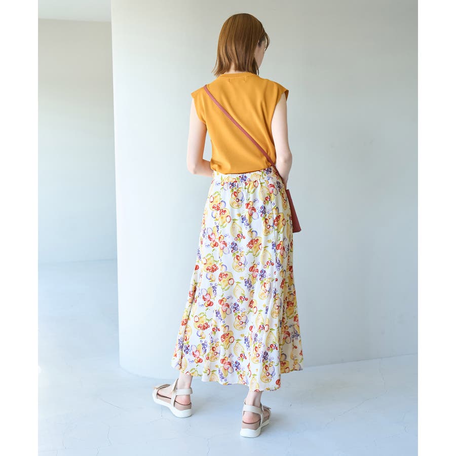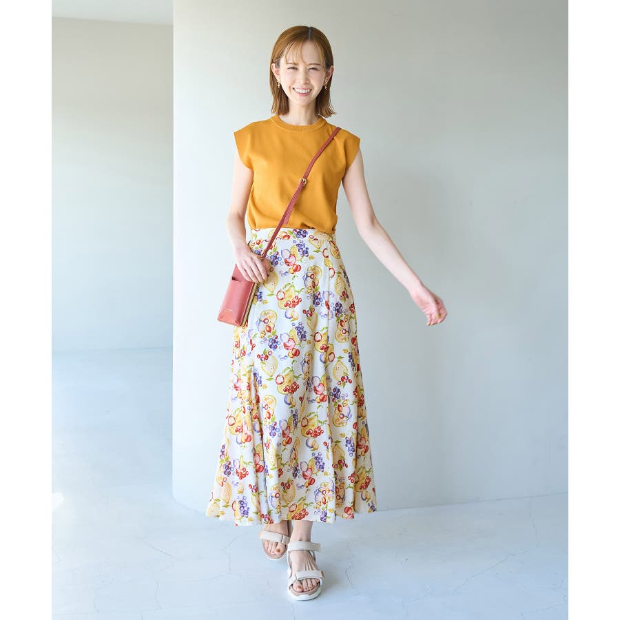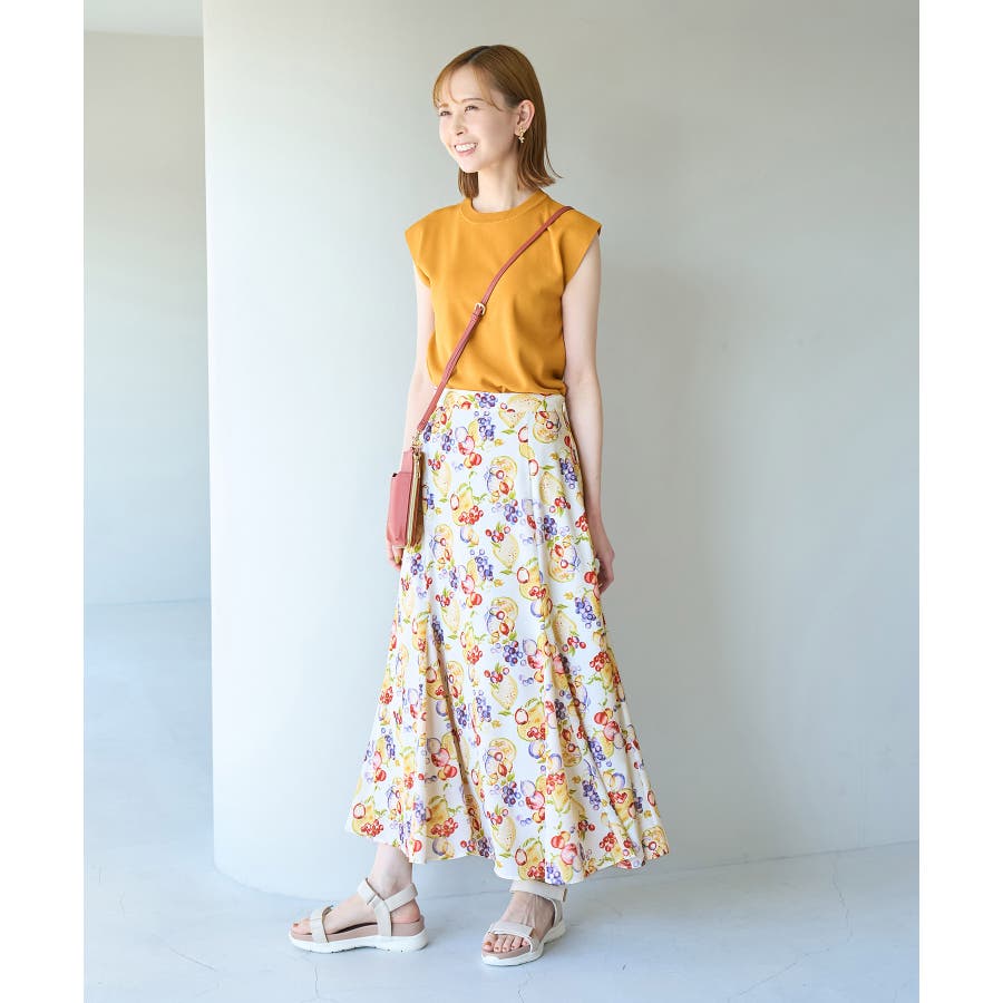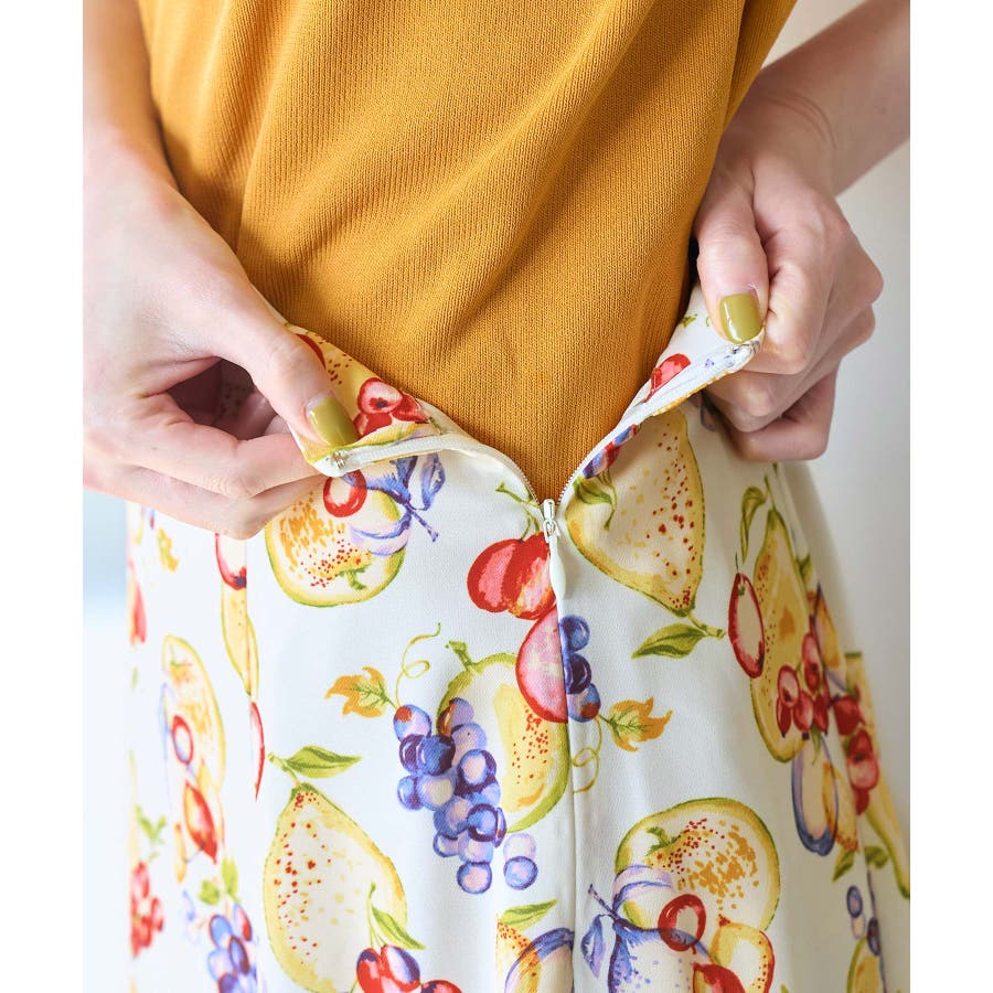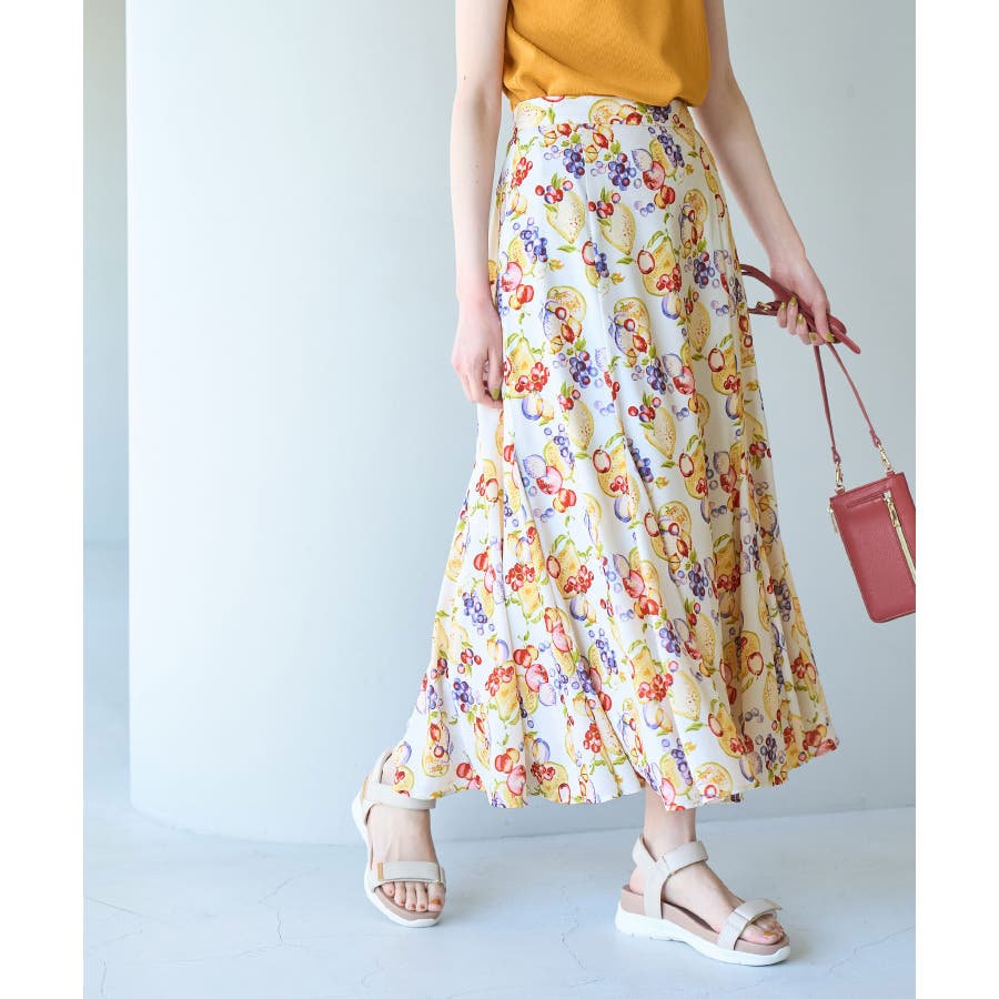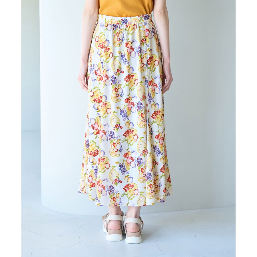 【素材感】 ・再生ポリエステルを使用した、サステナブルなアイテム。 ・さらりとした生地感。 ・シワになりにくいポリエステル100% 【デザイン・シルエット】 ・彩り豊かなトロピカルフルーツプリント生地を使用。 ・大人な着こなしが叶うメリハリマーメイドライン。 ・ベルトラインは後ろ側がゴム仕様。 【カラー】 ・ブルー系、ホワイト系の爽やかな2色展開。 【スタイリングポイント】 ・リブニットに合わせてクラシカルなコーディネートに。 ・トップスはタイトなものを選ぶか、すっきりインするのがおすすめ。 ・春はフラットシューズを、夏はサンダルに履き替えて季節の変化を楽しんで。 ・同シリーズでKIDS(品番:GRC23000)も展開しているので、親子お揃いも一押し。 ----------------------------- 裏地:あり 透け感:裏地がついてないところはややあり 伸縮性:なし 生地感・厚さ:薄手 ポケット:なし ウエスト:後ろゴム その他仕様:左ファスナー 季節:夏 ----------------------------- ※撮影時の光、お使いのモニター環境によって色の見え方が違う場合がございます。 ※KIDSは一部店舗限定となります。 ※モデル身長:165cm 着用サイズ:38