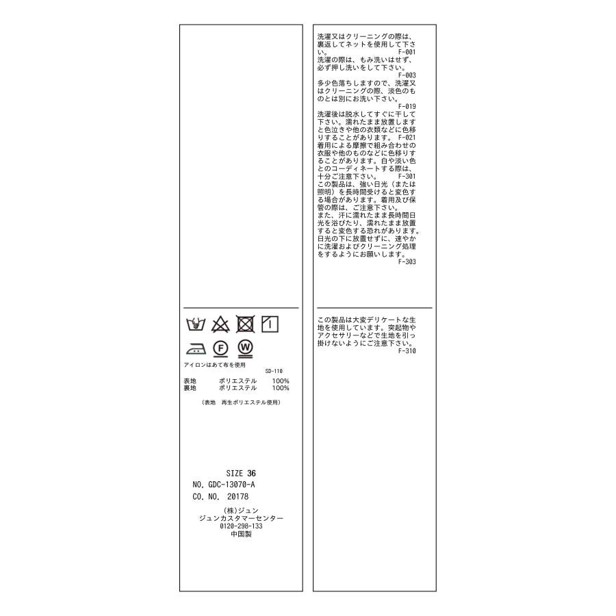 | 素材 | ブラック系(02):(表地) ポリエステル 100% (裏地) ポリエステル 100%|ホワイト系(11):(表地) ポリエステル 100% (裏地) ポリエステル 100% |