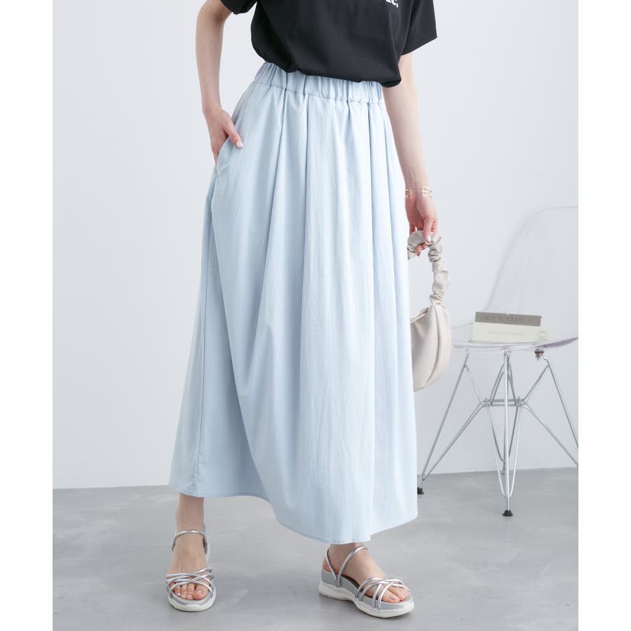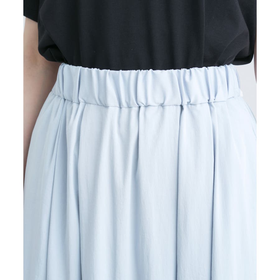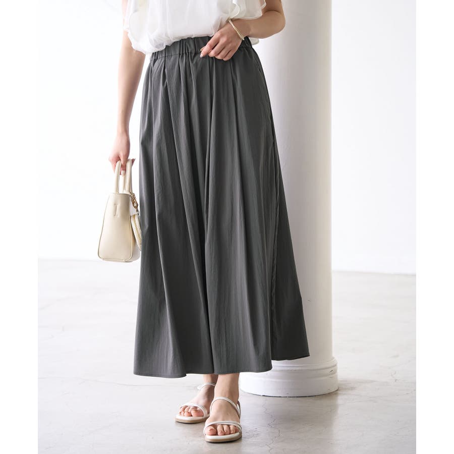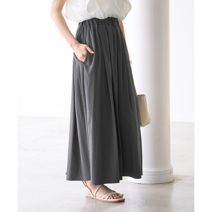 人気のレーヨンナイロンパンツ(品番:GDS14260)からスカートが登場! : 【素材感】 ・ナチュラルなシボ感とひんやりとした肌触りの素材感。 【デザイン・シルエット】 ・ふわっと軽い、春夏シーズンらしいイージースカート。 ・ギャザーウエストのラクチン仕様。 ・下半身をカバーして、大人な雰囲気で穿けるロング丈。 【カラー】 ・カラーによって組成の混率が異なります。 チャコール(06)サックス(48):レーヨン 55% ナイロン 40% ポリウレタン 5% オフホワイト(15):(表地)レーヨン 55% ナイロン 40% ポリウレタン 5% (裏地)ポリエステル 100% 【スタイリングポイント】 ・フーディーとハイカットスニーカーでアクティブカジュアルに。 ・ボーダーシャツとサンダルなら爽やかな夏コーデが完成。 ----------------------------- 裏地:オフホワイト(15)のみあり 透け感:なし、オフホワイト(15)は裏地がない部分はややあり 伸縮性:ややあり 生地感・厚さ:普通 ポケット:あり ウエスト:ゴム その他仕様:内側紐で調節可能 季節:春・夏 ----------------------------- ※撮影時の光、お使いのモニター環境によって色の見え方が違う場合がございます。 ※モデル身長:165cm 着用サイズ:38