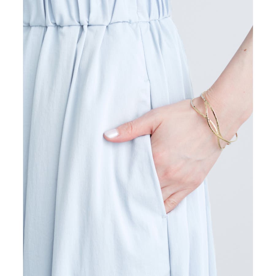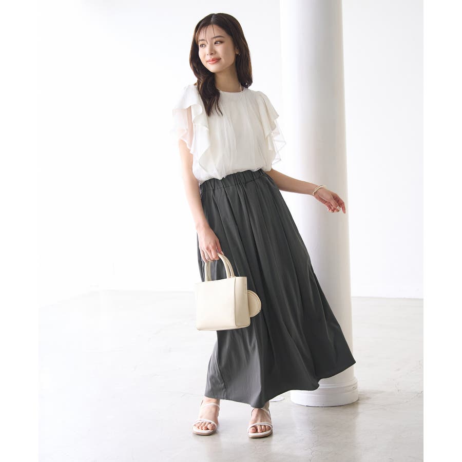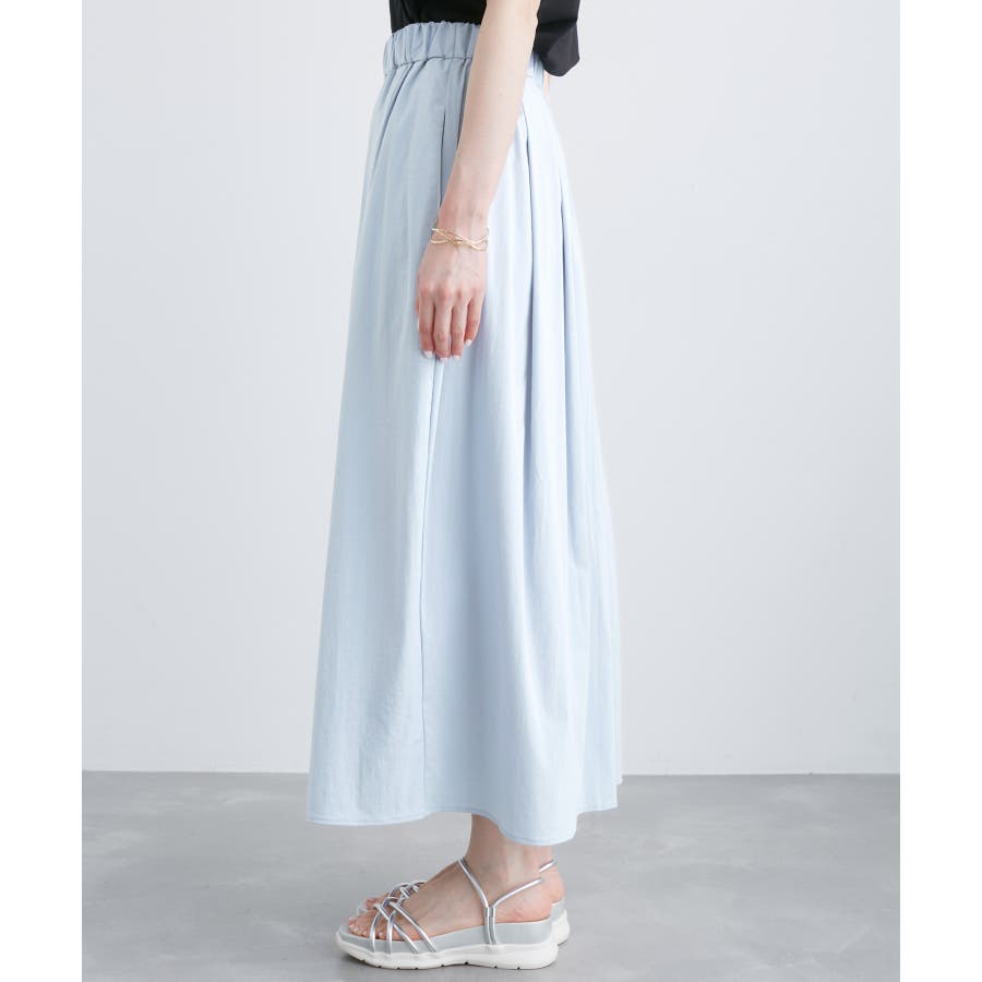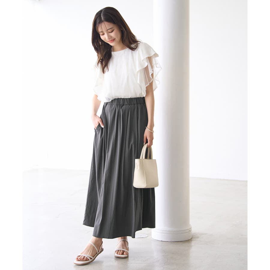 人気のレーヨンナイロンパンツ(品番:GDS14260)からスカートが登場! : 【素材感】 ・ナチュラルなシボ感とひんやりとした肌触りの素材感。 【デザイン・シルエット】 ・ふわっと軽い、春夏シーズンらしいイージースカート。 ・ギャザーウエストのラクチン仕様。 ・下半身をカバーして、大人な雰囲気で穿けるロング丈。 【カラー】 ・カラーによって組成の混率が異なります。 チャコール(06)サックス(48):レーヨン 55% ナイロン 40% ポリウレタン 5% オフホワイト(15):(表地)レーヨン 55% ナイロン 40% ポリウレタン 5% (裏地)ポリエステル 100% 【スタイリングポイント】 ・フーディーとハイカットスニーカーでアクティブカジュアルに。 ・ボーダーシャツとサンダルなら爽やかな夏コーデが完成。 ----------------------------- 裏地:オフホワイト(15)のみあり 透け感:なし、オフホワイト(15)は裏地がない部分はややあり 伸縮性:ややあり 生地感・厚さ:普通 ポケット:あり ウエスト:ゴム その他仕様:内側紐で調節可能 季節:春・夏 ----------------------------- ※撮影時の光、お使いのモニター環境によって色の見え方が違う場合がございます。 ※モデル身長:165cm 着用サイズ:38