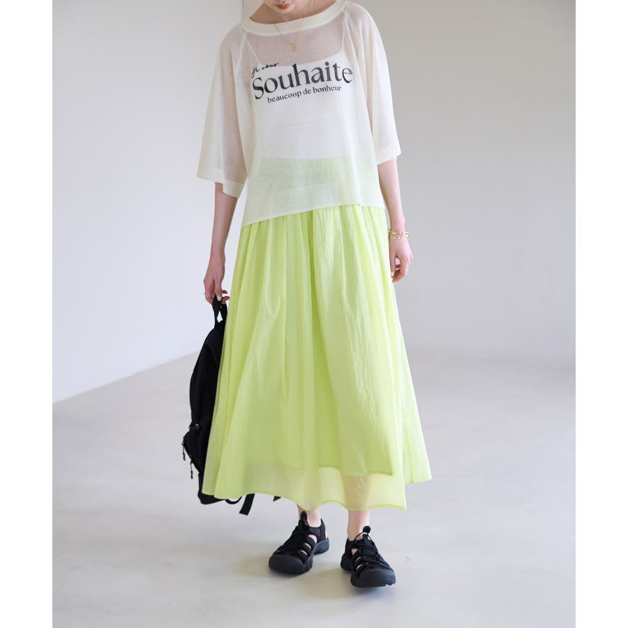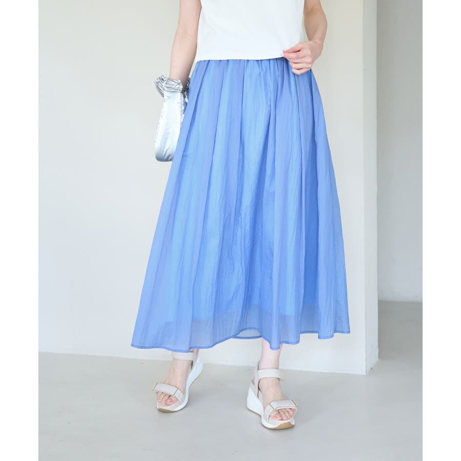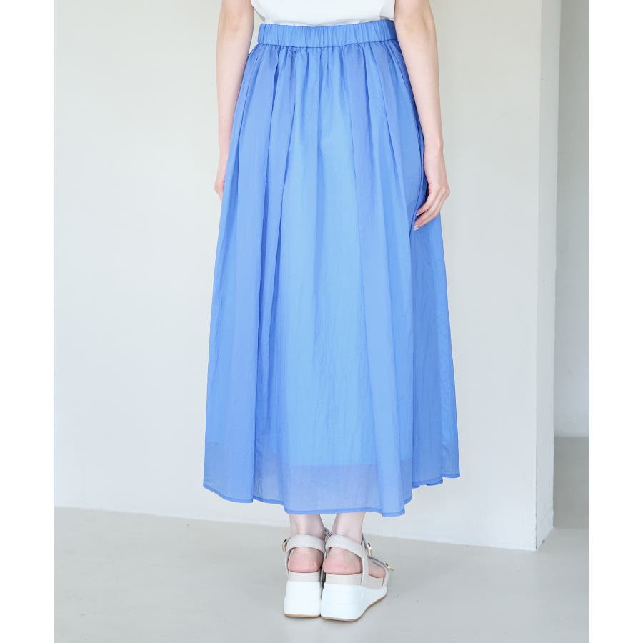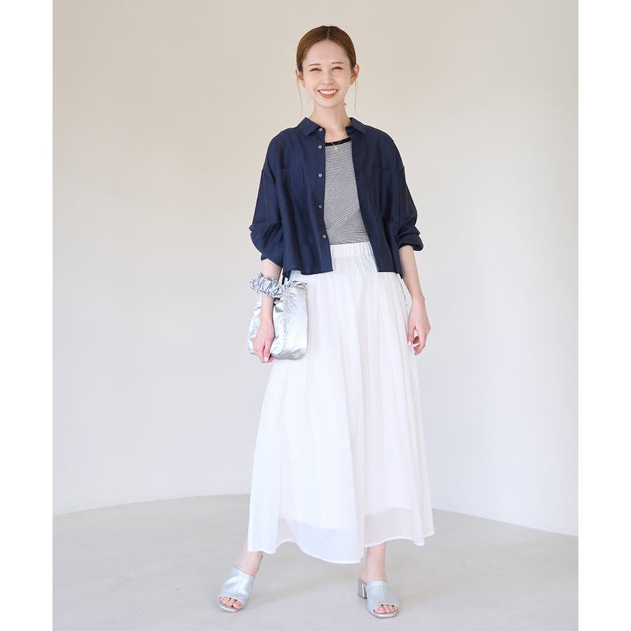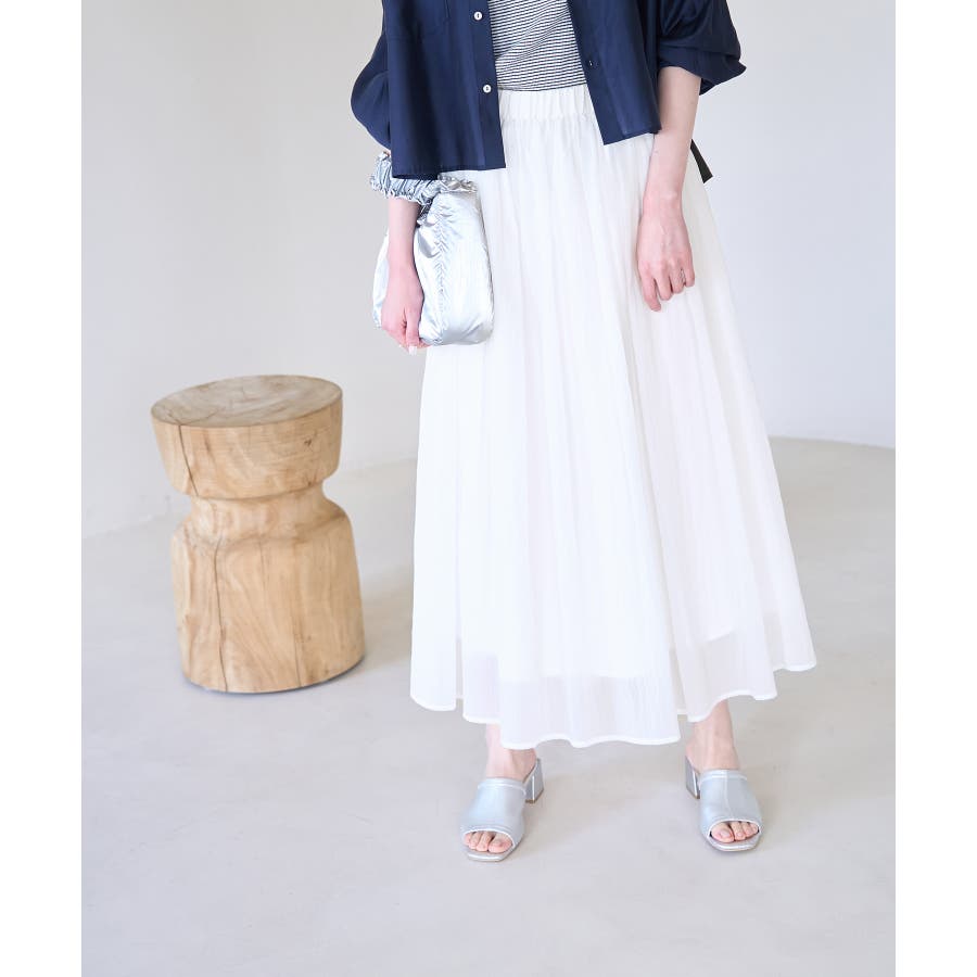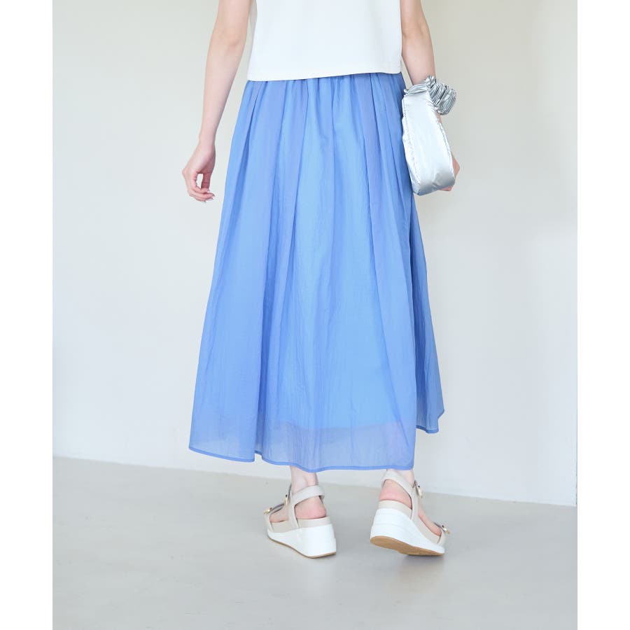 【素材感】 ・ふわっと軽い、シアーなナイロン素材を使ったギャザースカート。 【デザイン・シルエット】 ・くるぶしが隠れるほどの、やや長めのミディアム丈。 ・ウエストはノンストレスのゴム仕様。 【カラー】 ・チャコールグレー、ホワイト、イエロー、ブルーの4色展開。 【スタイリングポイント】 ・バレエシューズに合わせてガーリッシュなムードをプラス。 ・ボーダーカットソーと合わせれば爽やかな春夏コーデに。 ・サマーニットに合わせて素材のミックス感を楽しむスタイルも◎。 ----------------------------- 裏地:あり 透け感:裏地がない部分はややあり 伸縮性:なし 生地感・厚さ:やや薄手 ウエスト:ゴム ポケット:なし 季節:春~秋 ----------------------------- ※撮影時の光、お使いのモニター環境によって色の見え方が違う場合がございます。 ※モデル身長:165cm 着用サイズ:38