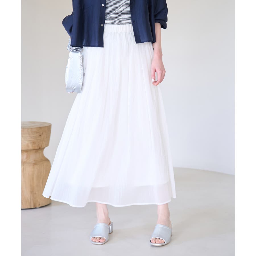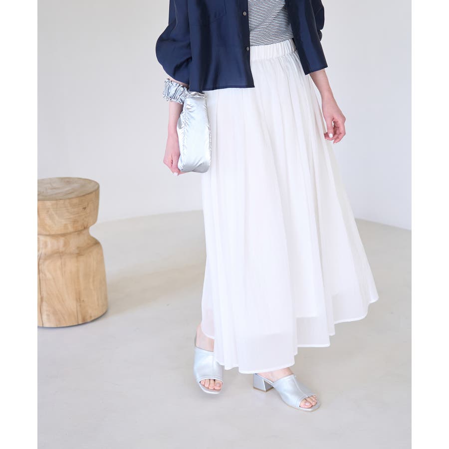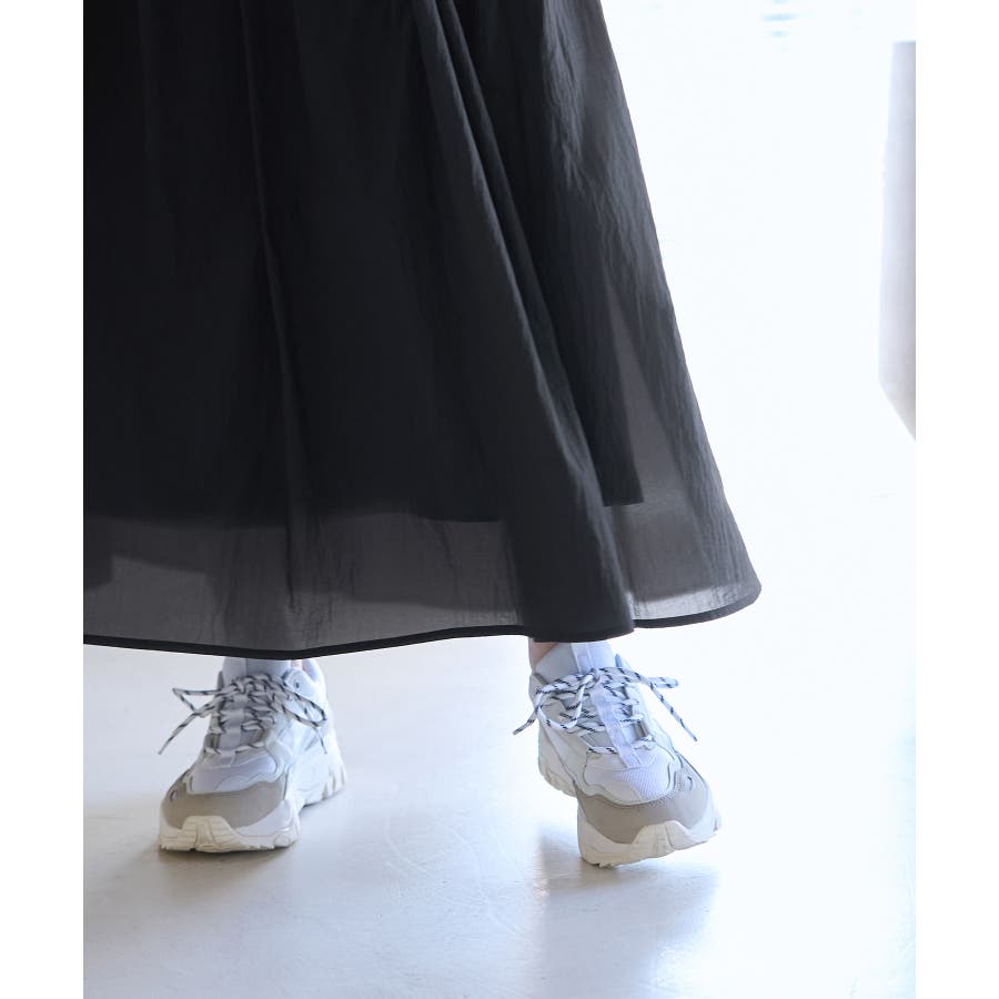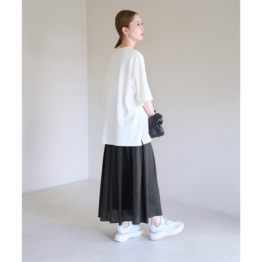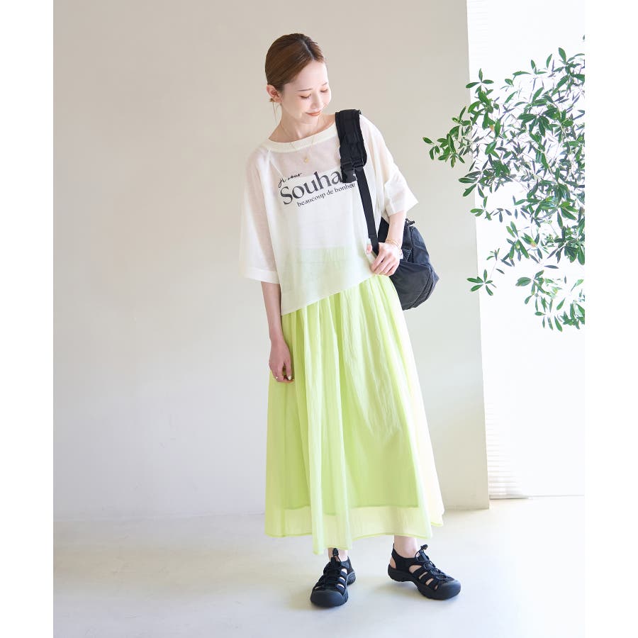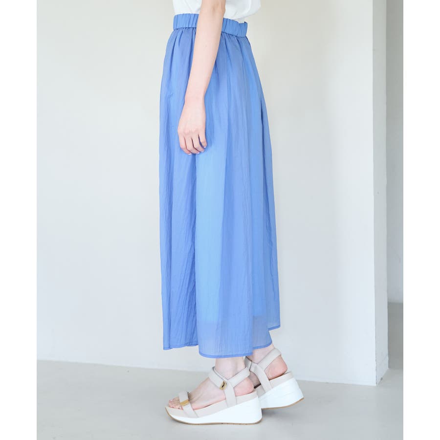 【素材感】 ・ふわっと軽い、シアーなナイロン素材を使ったギャザースカート。 【デザイン・シルエット】 ・くるぶしが隠れるほどの、やや長めのミディアム丈。 ・ウエストはノンストレスのゴム仕様。 【カラー】 ・チャコールグレー、ホワイト、イエロー、ブルーの4色展開。 【スタイリングポイント】 ・バレエシューズに合わせてガーリッシュなムードをプラス。 ・ボーダーカットソーと合わせれば爽やかな春夏コーデに。 ・サマーニットに合わせて素材のミックス感を楽しむスタイルも◎。 ----------------------------- 裏地:あり 透け感:裏地がない部分はややあり 伸縮性:なし 生地感・厚さ:やや薄手 ウエスト:ゴム ポケット:なし 季節:春~秋 ----------------------------- ※撮影時の光、お使いのモニター環境によって色の見え方が違う場合がございます。 ※モデル身長:165cm 着用サイズ:38