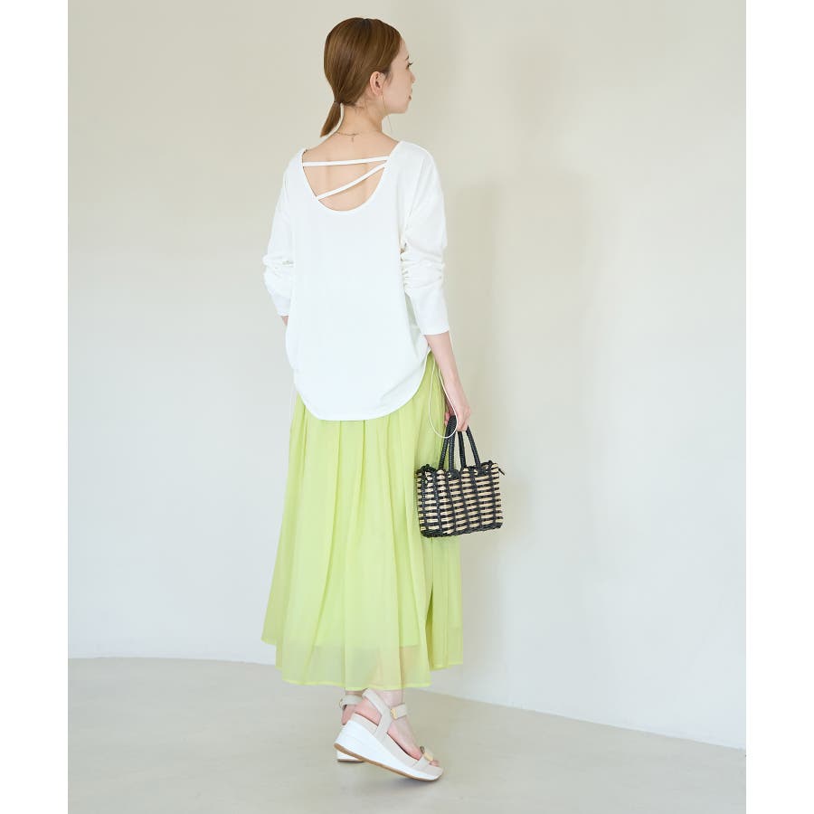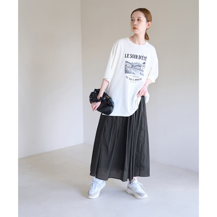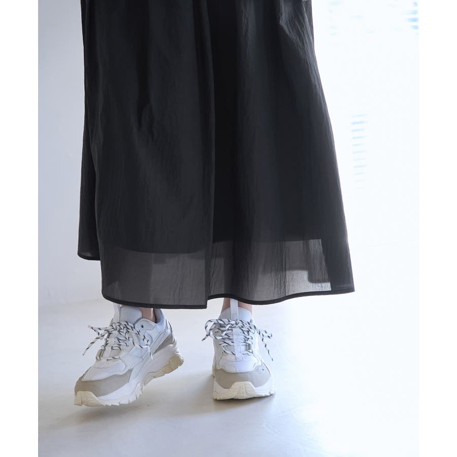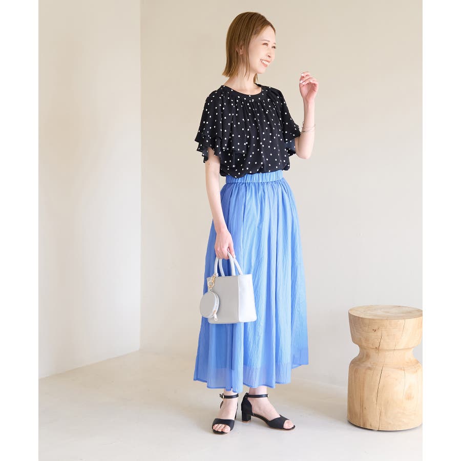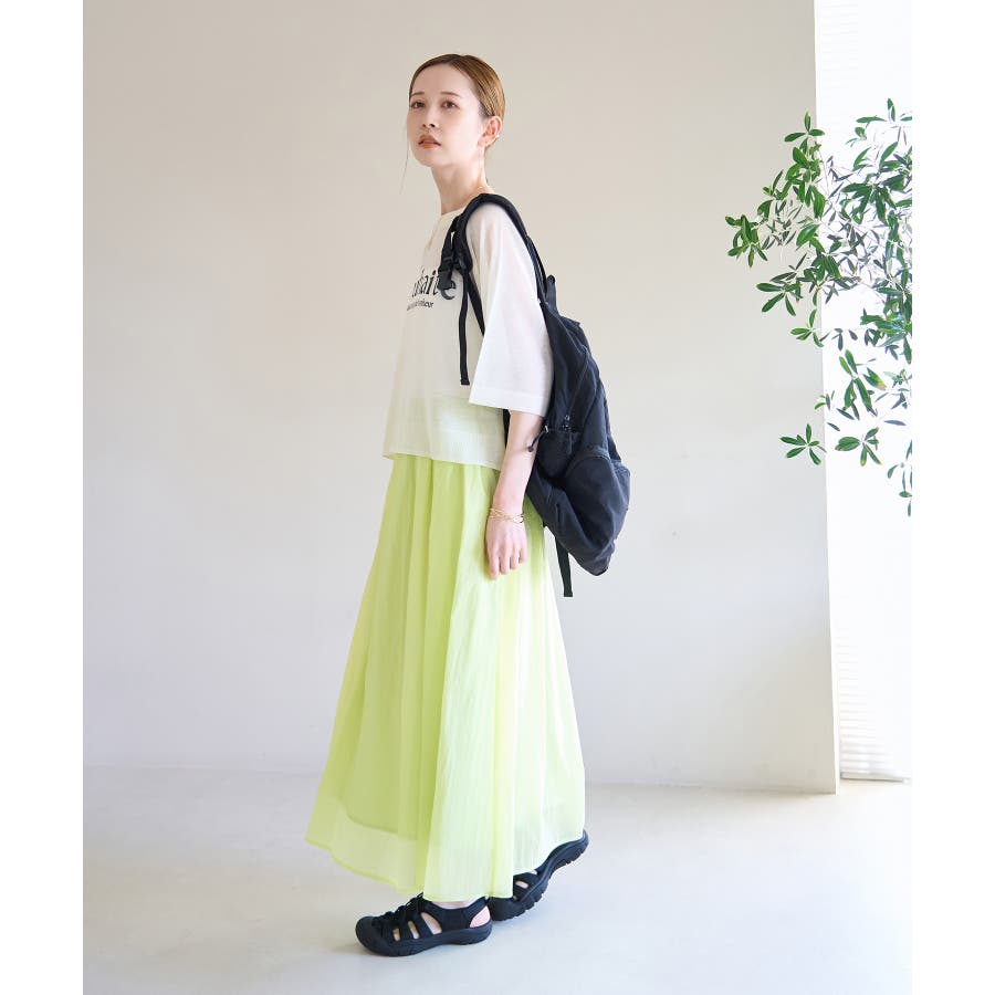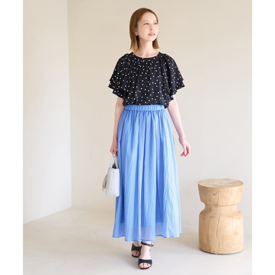 【素材感】 ・ふわっと軽い、シアーなナイロン素材を使ったギャザースカート。 【デザイン・シルエット】 ・くるぶしが隠れるほどの、やや長めのミディアム丈。 ・ウエストはノンストレスのゴム仕様。 【カラー】 ・チャコールグレー、ホワイト、イエロー、ブルーの4色展開。 【スタイリングポイント】 ・バレエシューズに合わせてガーリッシュなムードをプラス。 ・ボーダーカットソーと合わせれば爽やかな春夏コーデに。 ・サマーニットに合わせて素材のミックス感を楽しむスタイルも◎。 ----------------------------- 裏地:あり 透け感:裏地がない部分はややあり 伸縮性:なし 生地感・厚さ:やや薄手 ウエスト:ゴム ポケット:なし 季節:春~秋 ----------------------------- ※撮影時の光、お使いのモニター環境によって色の見え方が違う場合がございます。 ※モデル身長:165cm 着用サイズ:38