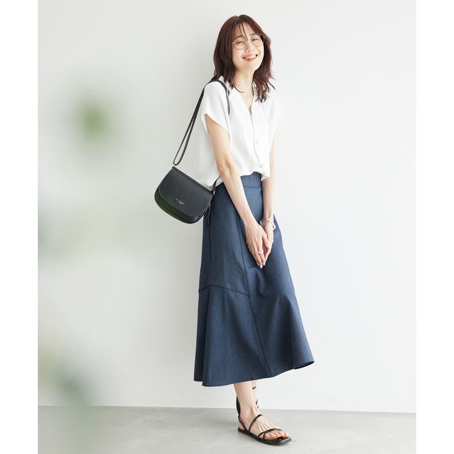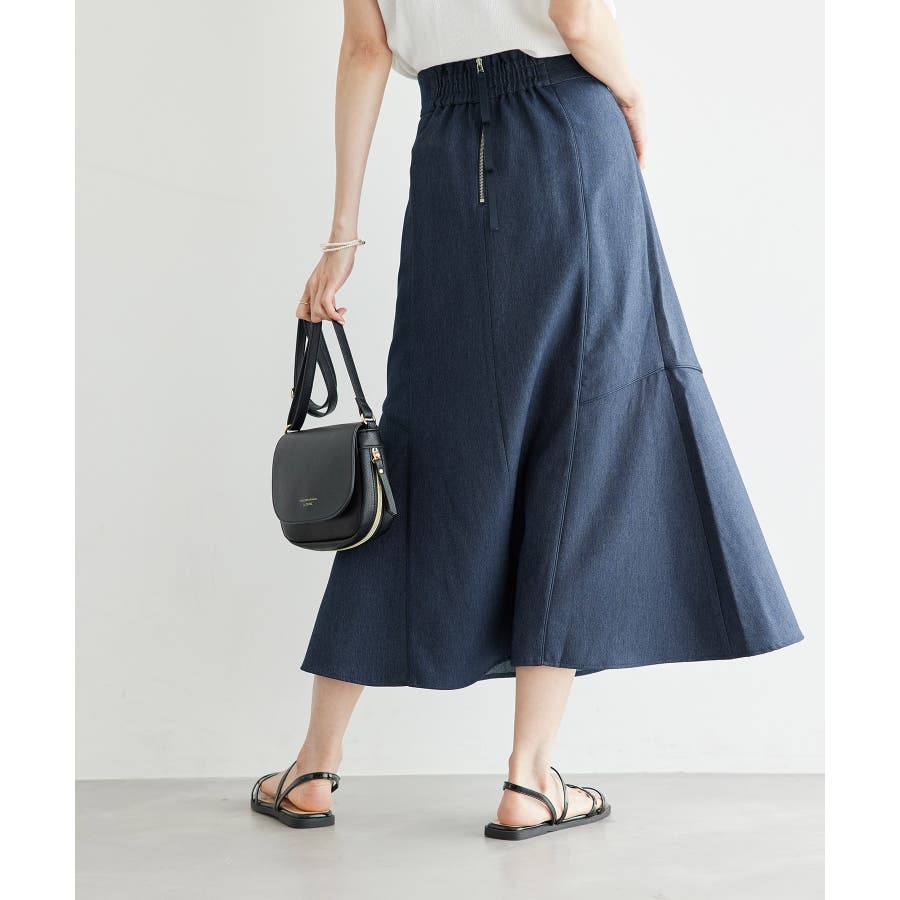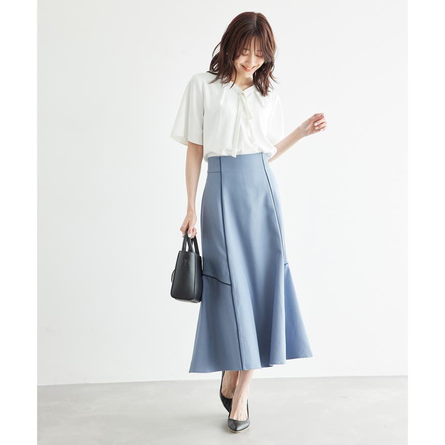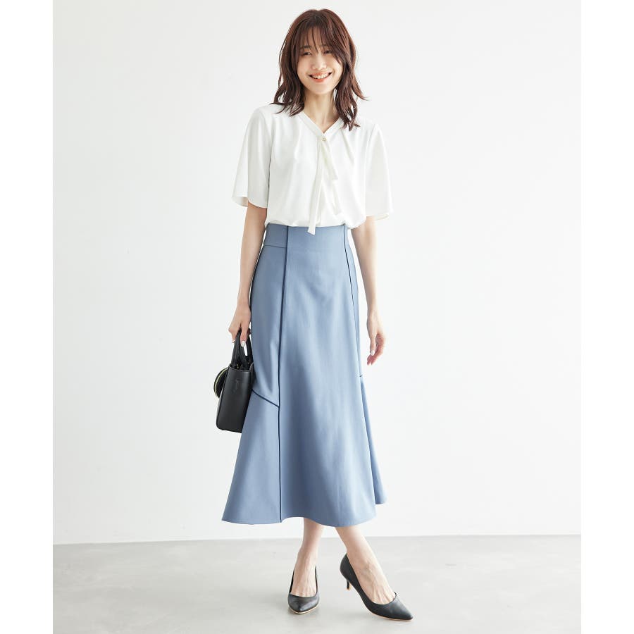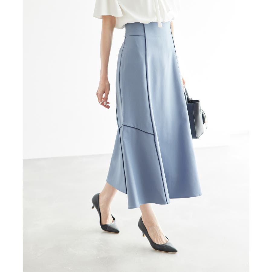 【素材感】 ・きれいめな素材感でお仕事着としても◎ 【デザイン・シルエット】 ・切り替えに配色パイピングを施した、メリハリのあるデザイン。 ・裾が少しだけ広がる、落ち着いた大人なシルエット。 ・ベルトラインは、後ろ中心のみギャザー使いに。 ・着脱はバックファスナー開閉。 【カラー】 ・カラーによって組成が異なります。 ベージュ(27):ベージュ×ホワイトパイピング (表地)ポリエステル 100% (裏地)ポリエステル 100% ブルー(40):デニム調ネイビー×ネイビーパイピング サックスブルー(44):サックスブルー×ネイビーパイピング ポリエステル 100% 【スタイリングポイント】 ・愛らしいブラウスと好相性。 ・クロップドトップに合わせるか、トップスは裾インで着こなすのがおすすめ。 ・足もとはレディライクなサンダル合わせが◎。 ----------------------------- 裏地:ベージュ(27)のみあり 透け感:なし 伸縮性:なし 生地感・厚さ:普通 ウエスト:後ろギャザー ポケット:なし その他仕様:後ろファスナー 季節:春~秋 ----------------------------- ※撮影時の光、お使いのモニター環境によって色の見え方が違う場合がございます。 ※モデル身長:165cm 着用サイズ:38