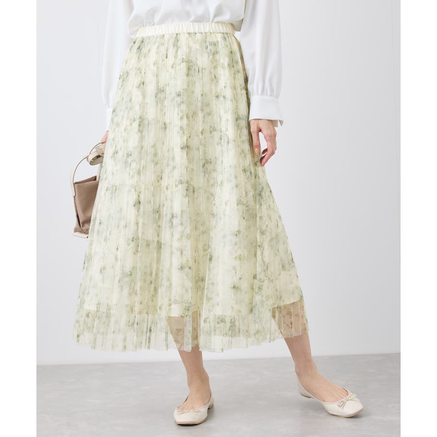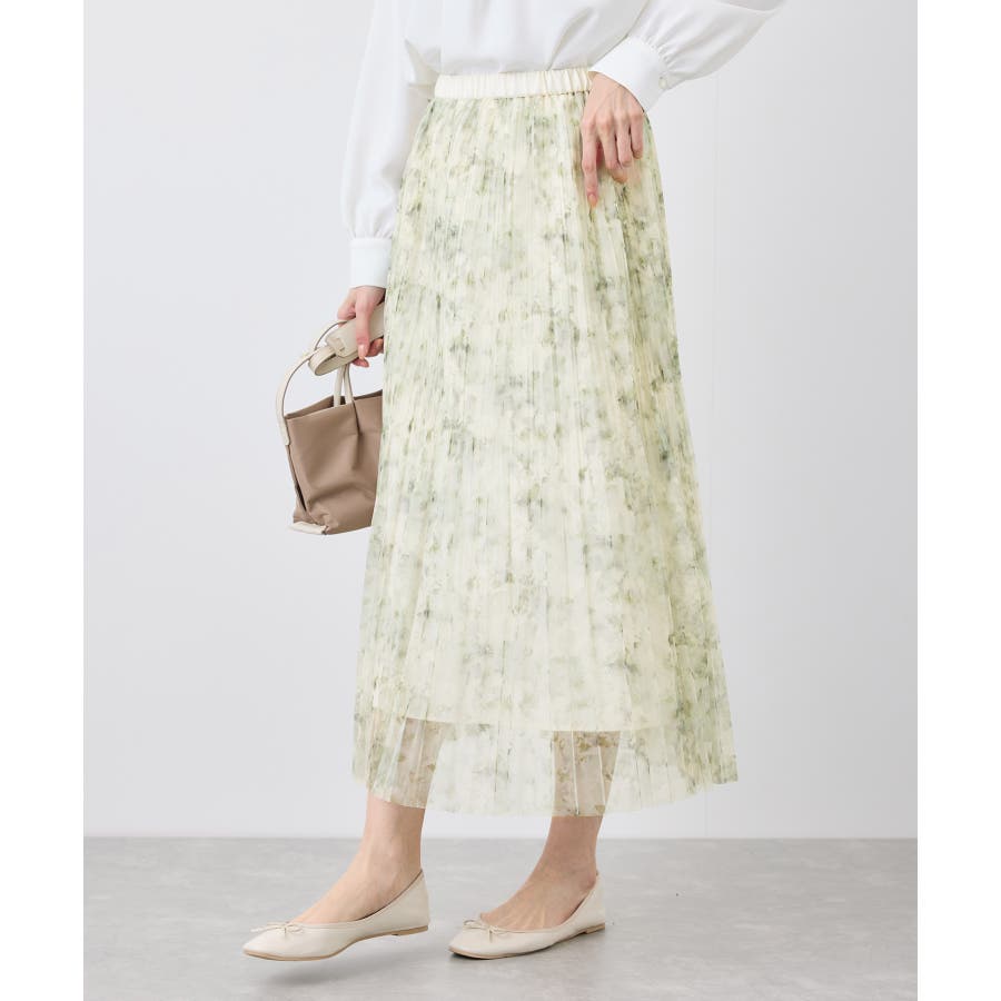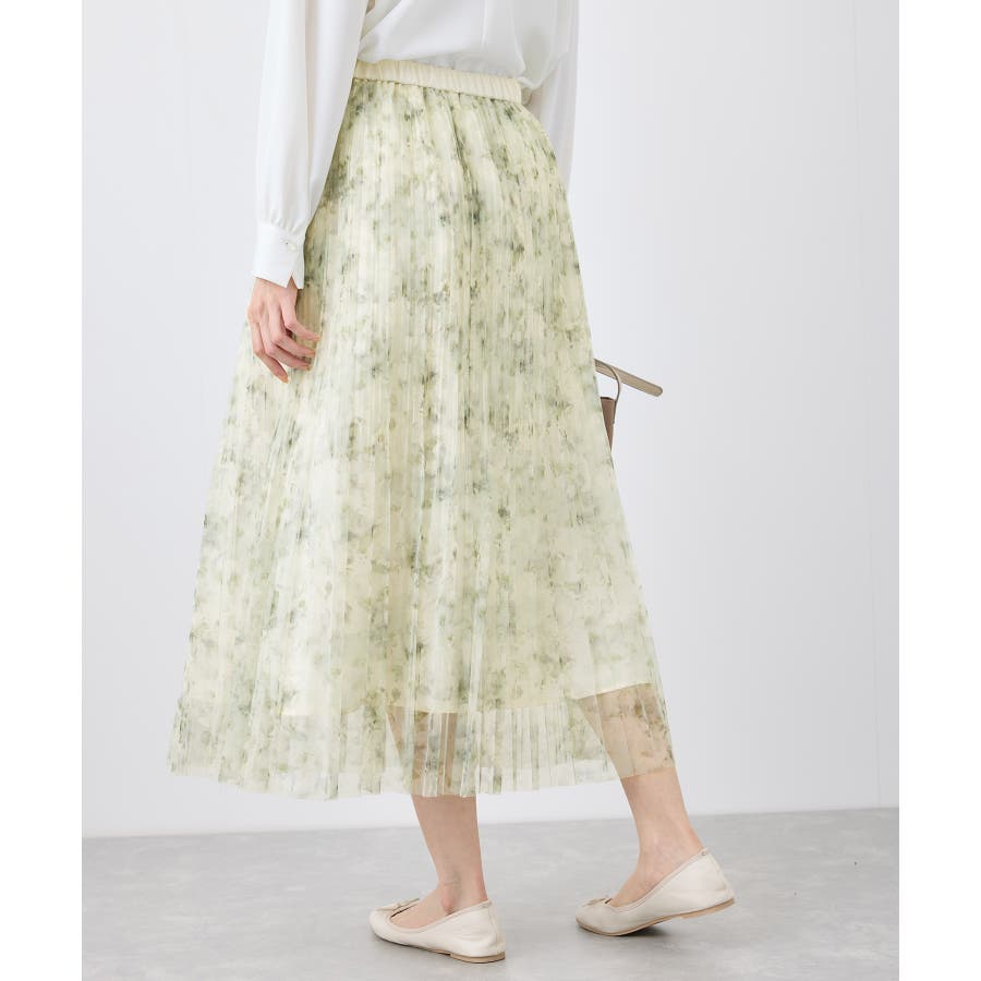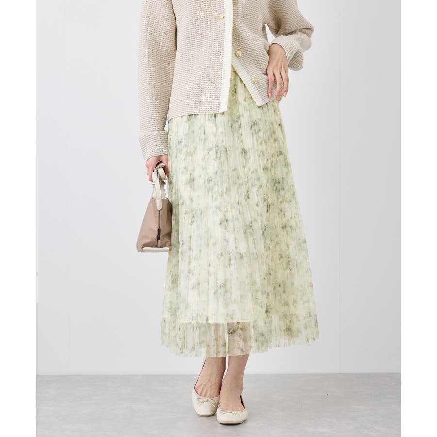 【素材感】 ・シアーな質感で軽やかさのあるチュール素材のプリーツスカート。 【デザイン・シルエット】 ・ロング丈でも重く見えないのがポイント。 ・細かなプリーツは広がりにくい。 ・ウエストギャザーでお腹まわりもラクチン。 【カラー】 ・カラーによって柄が異なります。 ライトグレー(08)ホワイト系(11):無地 カーキ系(38):花柄 【デザイン・シルエット】 ・冬は厚手のニットとショートブーツで季節感をプラス。 ・春先はスウェットシャツやカットソー、スニーカーにチェンジを。 ・合わせ次第で、オンにもオフにも使える。 ----------------------------- 裏地:あり 透け感:裏側がない部分はあり 伸縮性:なし 生地感・厚さ:普通 ポケット:なし ウエスト:ゴム 季節:春・夏・秋・冬 ----------------------------- ※撮影時の光、お使いのモニター環境によって色の見え方が違う場合がございます。 ※モデル身長:165cm 着用サイズ:38