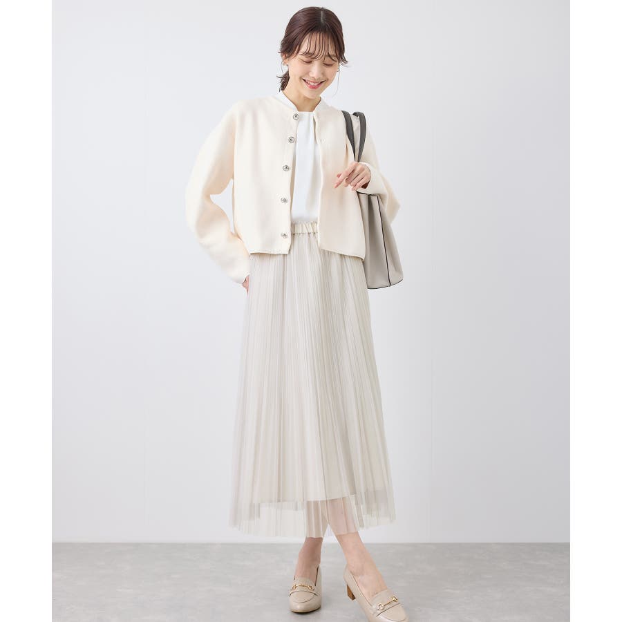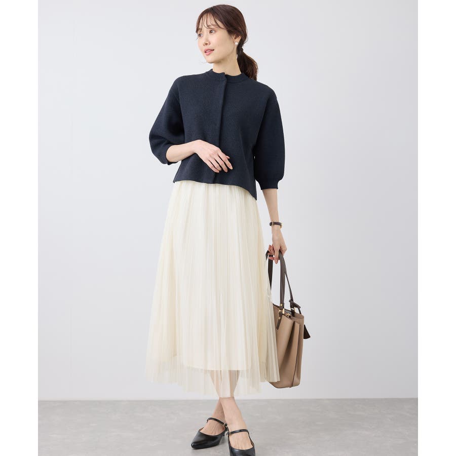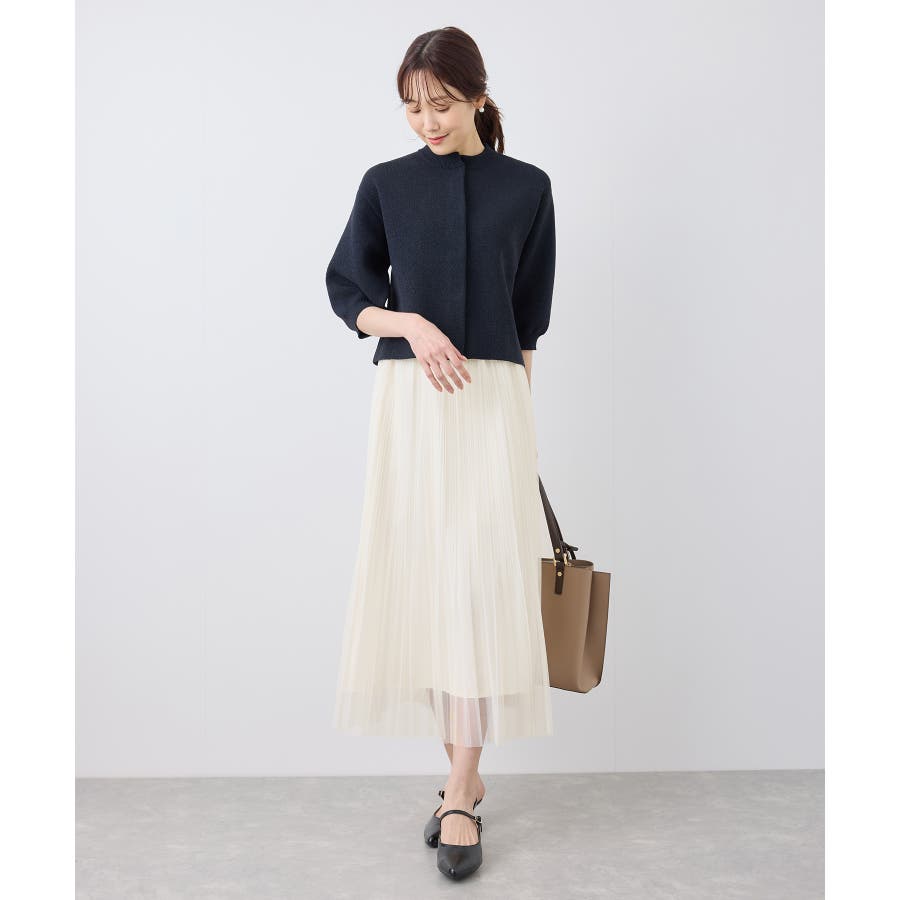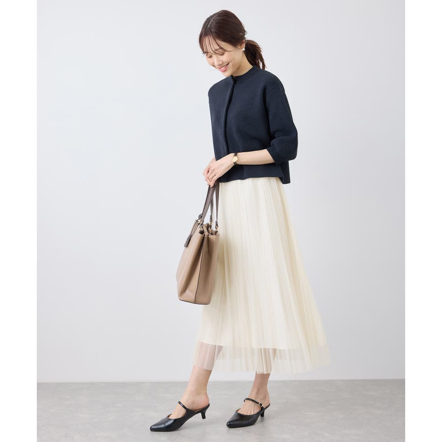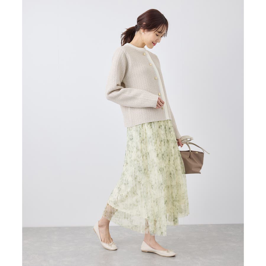【素材感】 ・シアーな質感で軽やかさのあるチュール素材のプリーツスカート。 【デザイン・シルエット】 ・ロング丈でも重く見えないのがポイント。 ・細かなプリーツは広がりにくい。 ・ウエストギャザーでお腹まわりもラクチン。 【カラー】 ・カラーによって柄が異なります。 ライトグレー(08)ホワイト系(11):無地 カーキ系(38):花柄 【デザイン・シルエット】 ・冬は厚手のニットとショートブーツで季節感をプラス。 ・春先はスウェットシャツやカットソー、スニーカーにチェンジを。 ・合わせ次第で、オンにもオフにも使える。 ----------------------------- 裏地:あり 透け感:裏側がない部分はあり 伸縮性:なし 生地感・厚さ:普通 ポケット:なし ウエスト:ゴム 季節:春・夏・秋・冬 ----------------------------- ※撮影時の光、お使いのモニター環境によって色の見え方が違う場合がございます。 ※モデル身長:165cm 着用サイズ:38