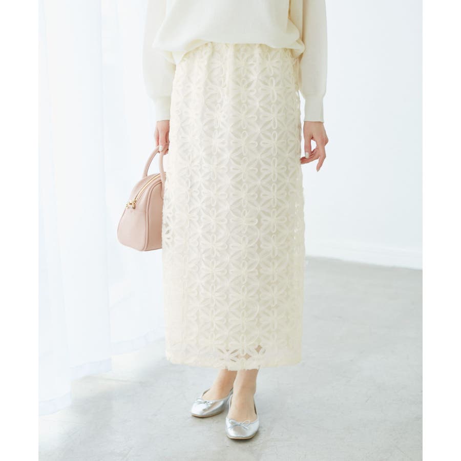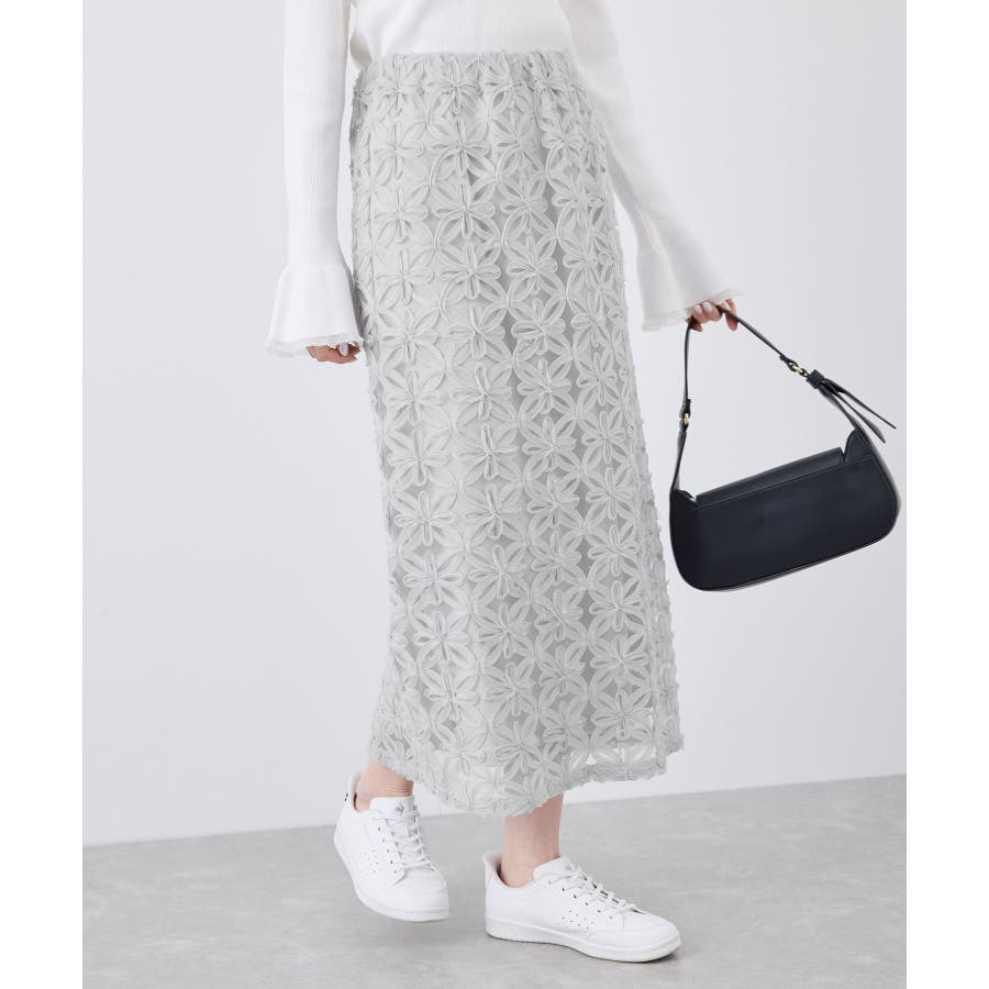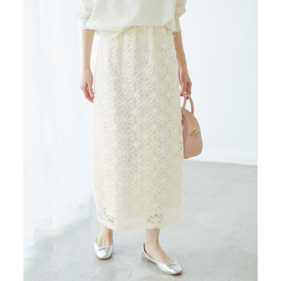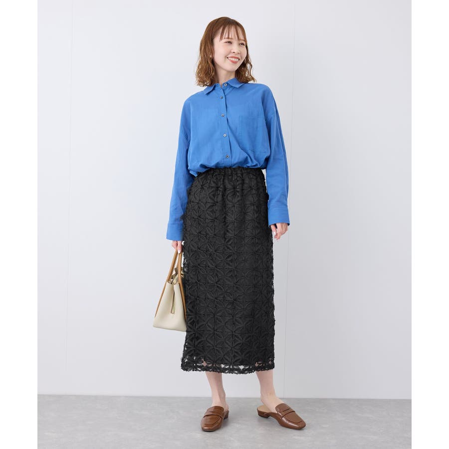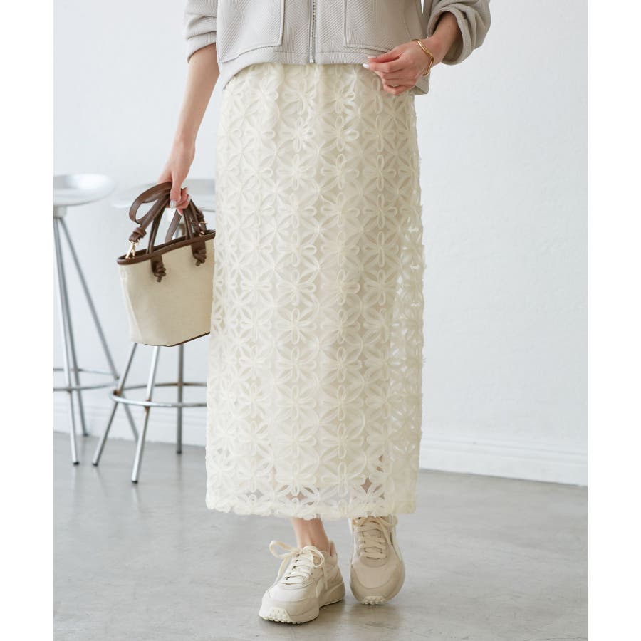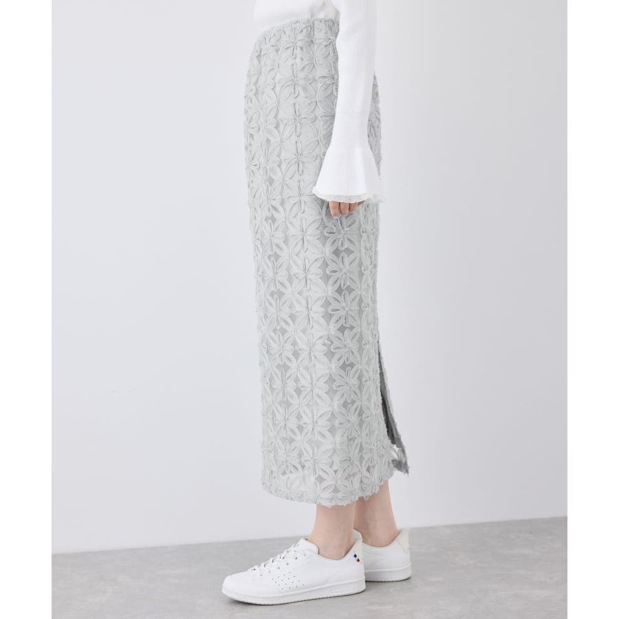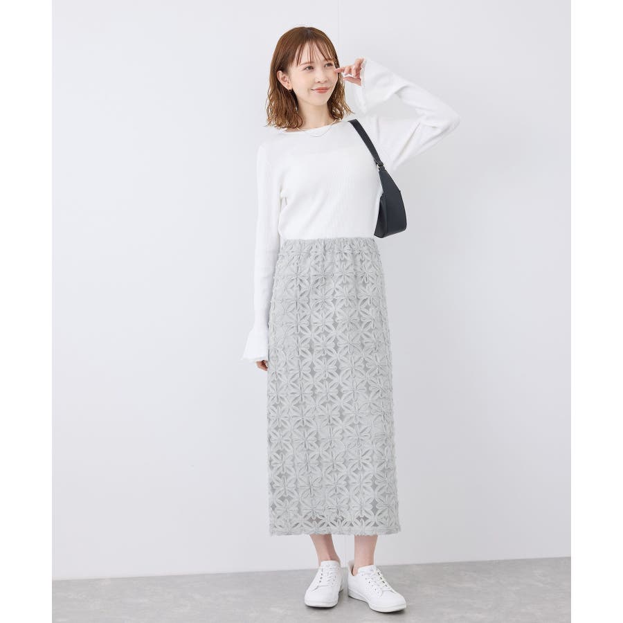 【素材感】 ・素材感がクリアな印象でカジュアルにも、キレイめにも着られる。 【デザイン・シルエット】 ・フラワー柄のチュールレースを用いたタイトスカート。 ・足捌きの良いバックスリット入り。 ・脇接ぎを入れないことによって脇で柄が切れることを防ぎ、サイドから見てもキレイで価値観アップ。 【カラー】 ・ブラック、ライトグレー、オフホワイトの落ち着いた3色展開。 【スタイリングポイント】 ・ボーダーシャツでスウィートなスカートをカジュアルにアレンジ。 ・冬はシンプルなニット合わせがおすすめ。 ・ニットは素材感のあるものを合わせるとおしゃれな雰囲気に。 ----------------------------- 裏地:あり 透け感:裏地がない部分はややあり 伸縮性:なし 生地感・厚さ:普通 ポケット:なし ウエスト:ゴム 季節:春・夏・秋・冬 ----------------------------- ※撮影時の光、お使いのモニター環境によって色の見え方が違う場合がございます。 ※モデル身長:166cm 着用サイズ:38 ※この製品は、表面の毛羽が着用時の摩擦によって抜けたり、ほかの衣服に付着することがありますので、組み合わせの衣服などにご注意下さい。 付着した毛羽はブラシをかけることで簡単に除去することができます。