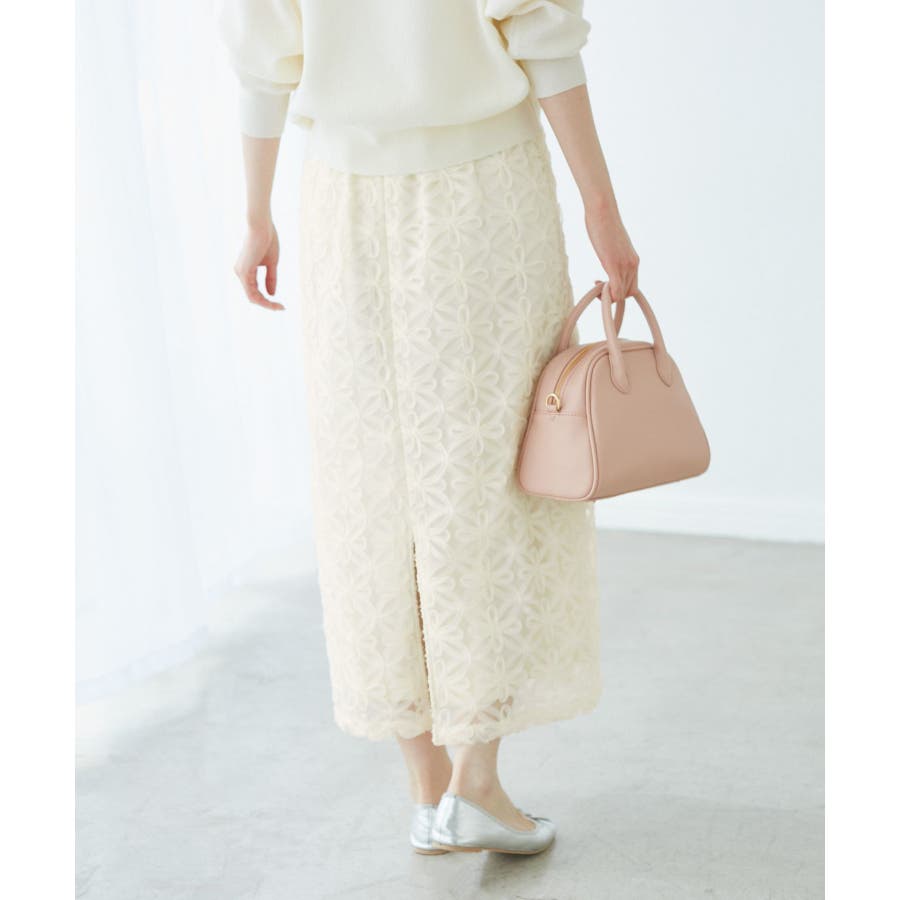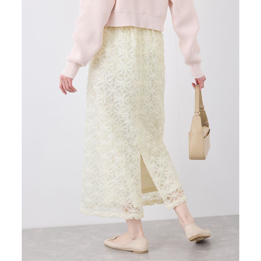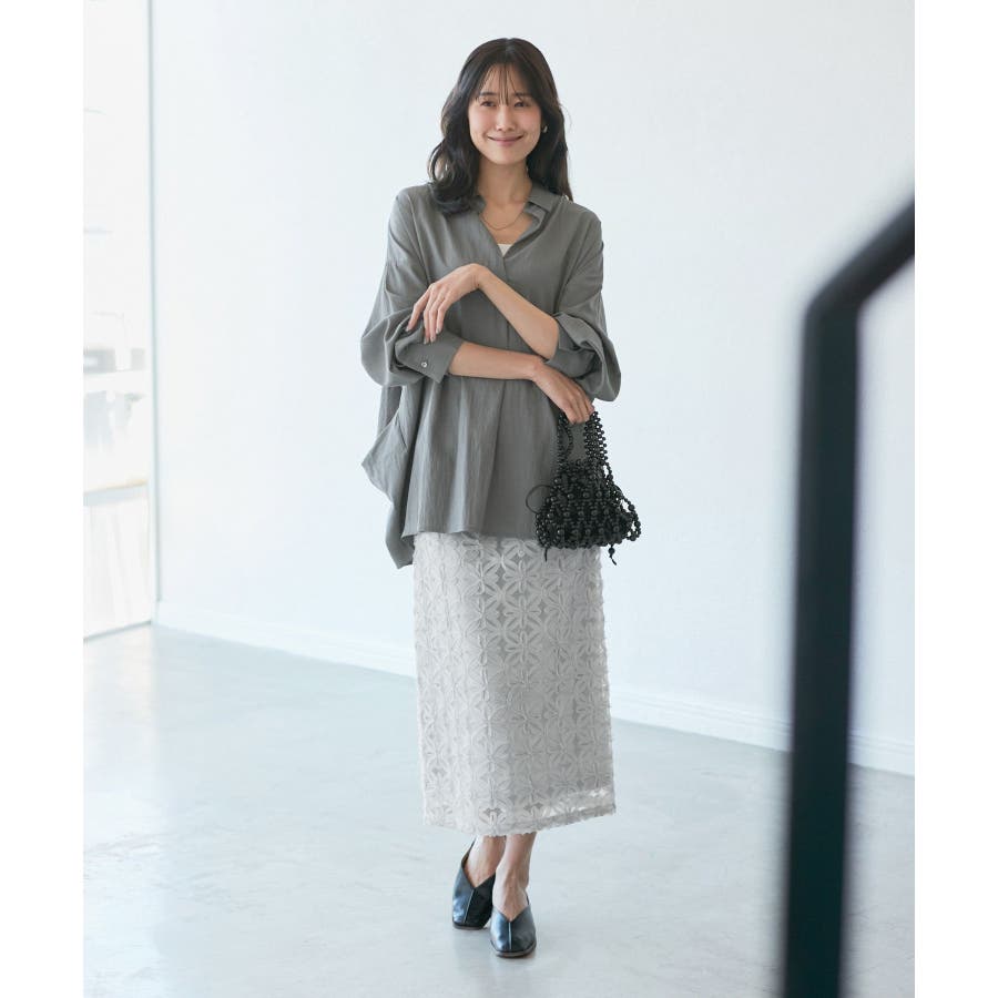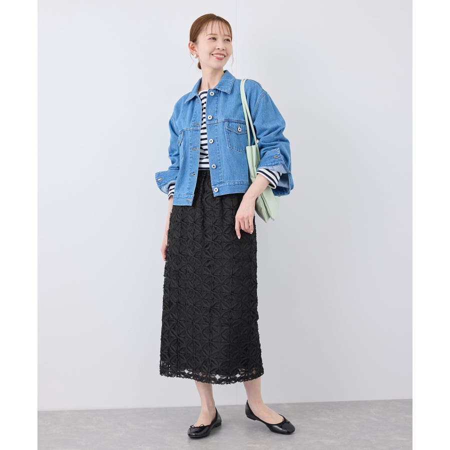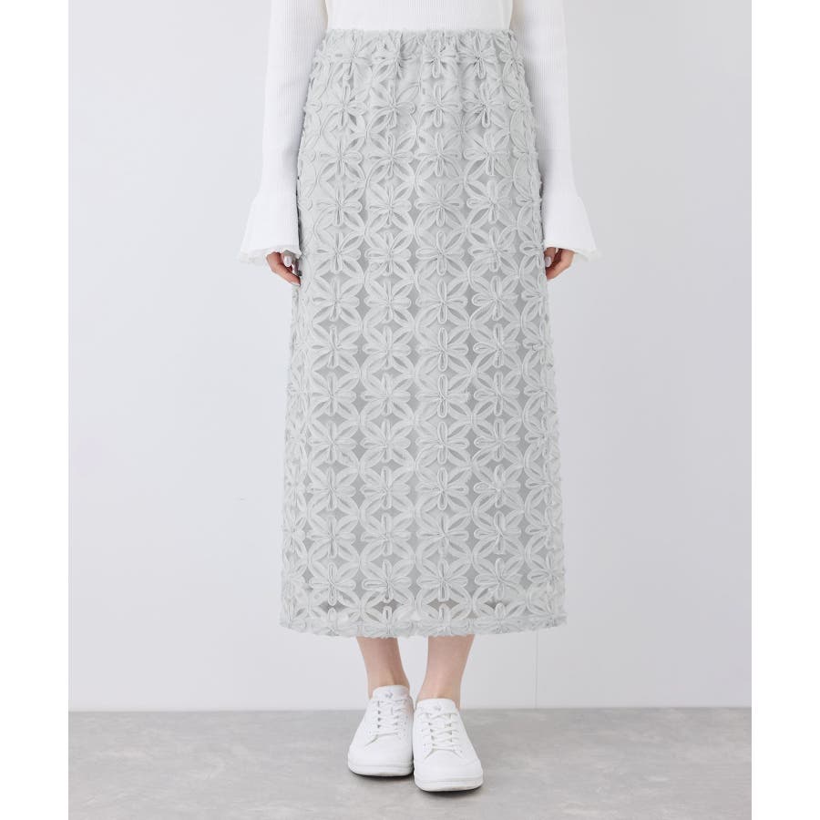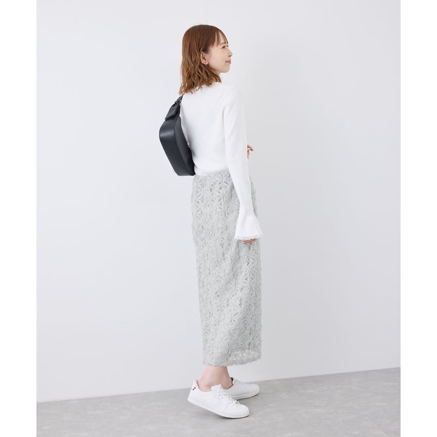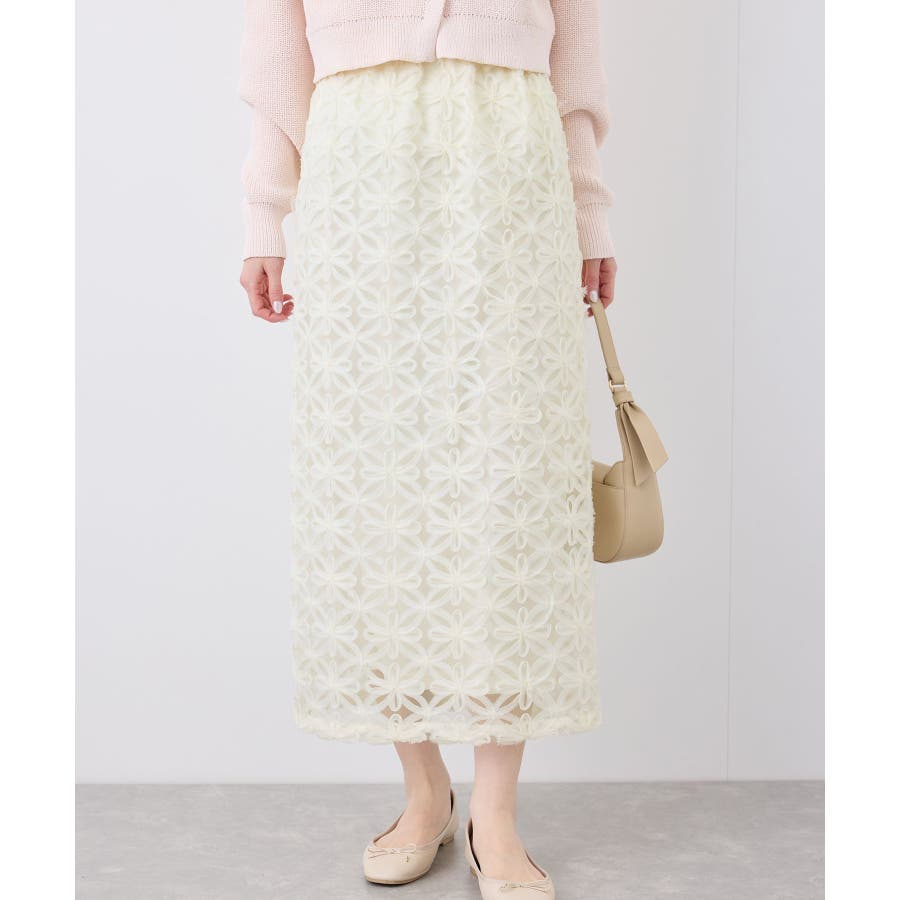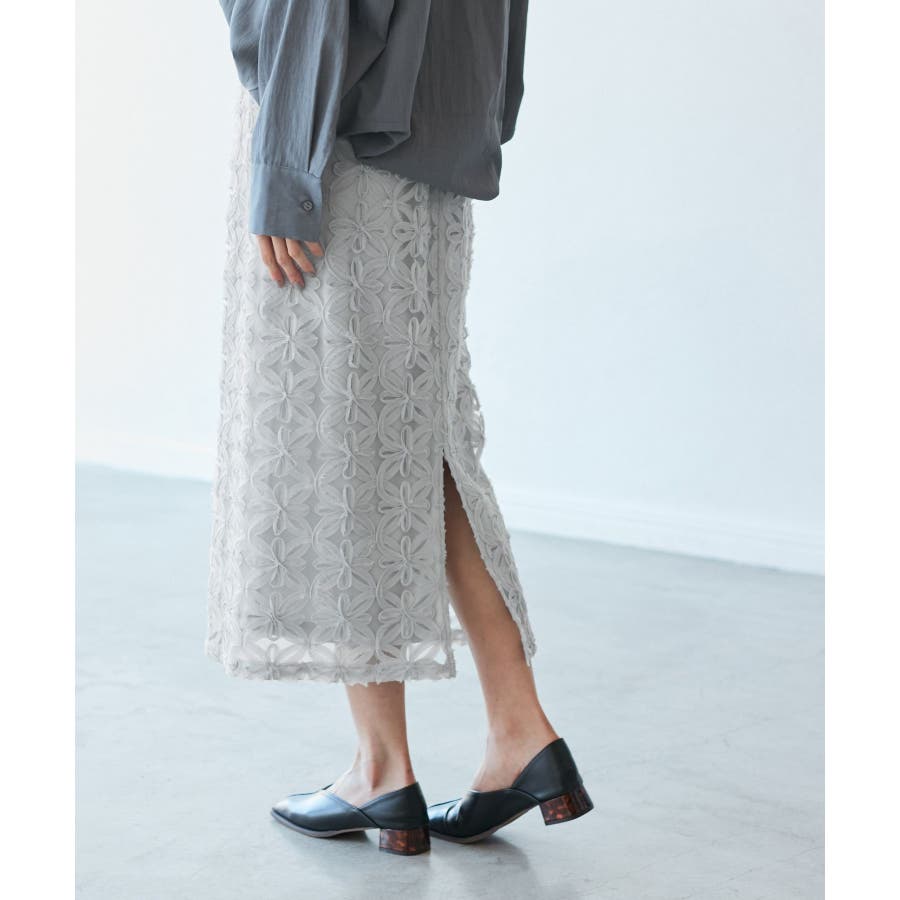 【素材感】 ・素材感がクリアな印象でカジュアルにも、キレイめにも着られる。 【デザイン・シルエット】 ・フラワー柄のチュールレースを用いたタイトスカート。 ・足捌きの良いバックスリット入り。 ・脇接ぎを入れないことによって脇で柄が切れることを防ぎ、サイドから見てもキレイで価値観アップ。 【カラー】 ・ブラック、ライトグレー、オフホワイトの落ち着いた3色展開。 【スタイリングポイント】 ・ボーダーシャツでスウィートなスカートをカジュアルにアレンジ。 ・冬はシンプルなニット合わせがおすすめ。 ・ニットは素材感のあるものを合わせるとおしゃれな雰囲気に。 ----------------------------- 裏地:あり 透け感:裏地がない部分はややあり 伸縮性:なし 生地感・厚さ:普通 ポケット:なし ウエスト:ゴム 季節:春・夏・秋・冬 ----------------------------- ※撮影時の光、お使いのモニター環境によって色の見え方が違う場合がございます。 ※モデル身長:166cm 着用サイズ:38 ※この製品は、表面の毛羽が着用時の摩擦によって抜けたり、ほかの衣服に付着することがありますので、組み合わせの衣服などにご注意下さい。 付着した毛羽はブラシをかけることで簡単に除去することができます。