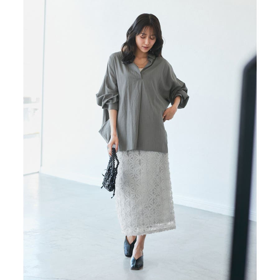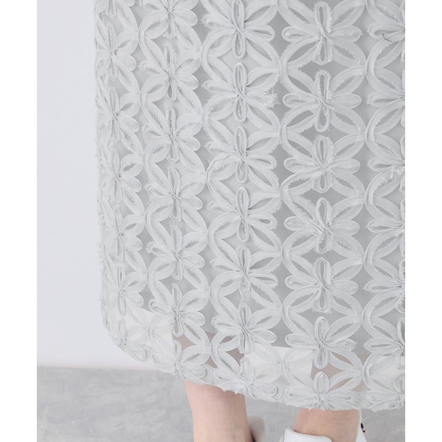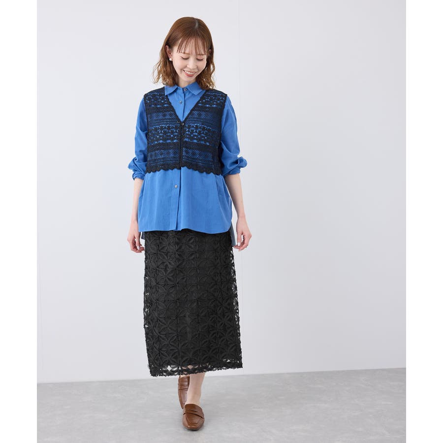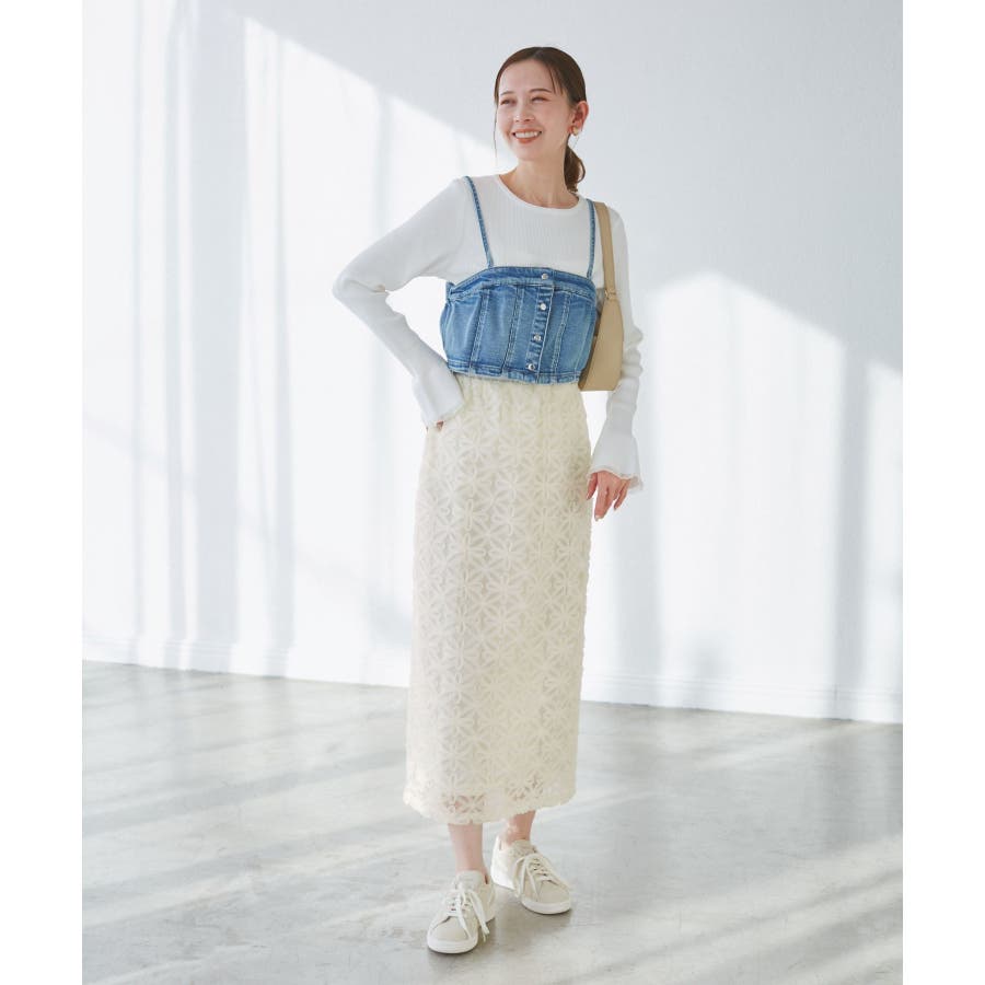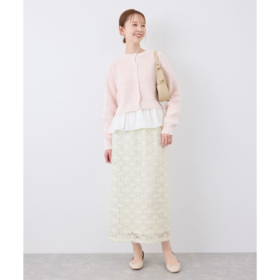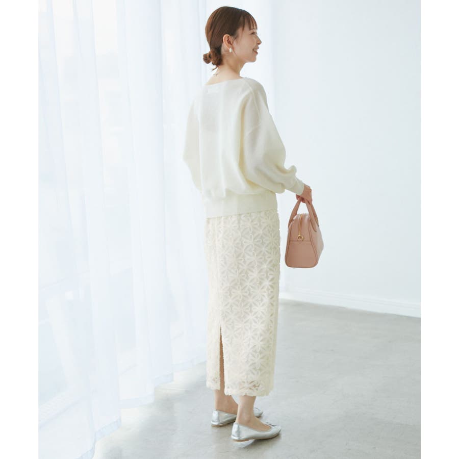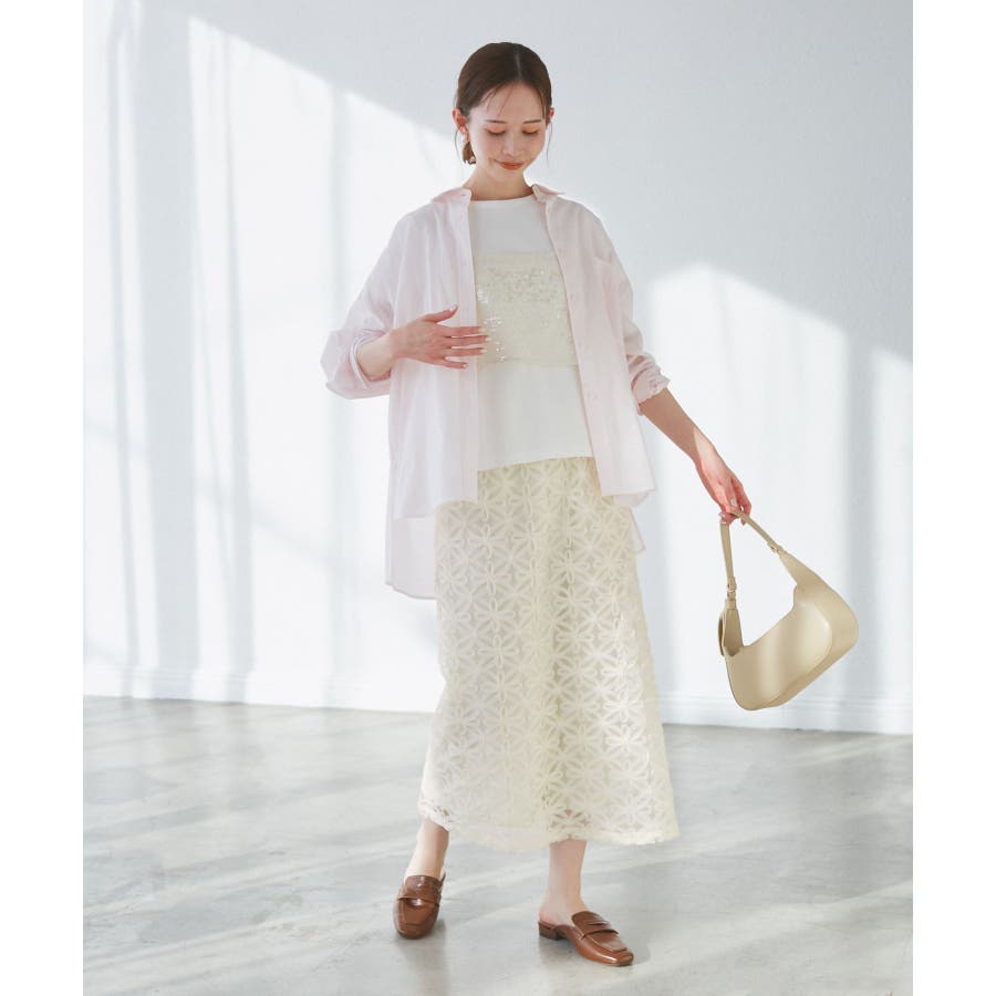【素材感】 ・素材感がクリアな印象でカジュアルにも、キレイめにも着られる。 【デザイン・シルエット】 ・フラワー柄のチュールレースを用いたタイトスカート。 ・足捌きの良いバックスリット入り。 ・脇接ぎを入れないことによって脇で柄が切れることを防ぎ、サイドから見てもキレイで価値観アップ。 【カラー】 ・ブラック、ライトグレー、オフホワイトの落ち着いた3色展開。 【スタイリングポイント】 ・ボーダーシャツでスウィートなスカートをカジュアルにアレンジ。 ・冬はシンプルなニット合わせがおすすめ。 ・ニットは素材感のあるものを合わせるとおしゃれな雰囲気に。 ----------------------------- 裏地:あり 透け感:裏地がない部分はややあり 伸縮性:なし 生地感・厚さ:普通 ポケット:なし ウエスト:ゴム 季節:春・夏・秋・冬 ----------------------------- ※撮影時の光、お使いのモニター環境によって色の見え方が違う場合がございます。 ※モデル身長:166cm 着用サイズ:38 ※この製品は、表面の毛羽が着用時の摩擦によって抜けたり、ほかの衣服に付着することがありますので、組み合わせの衣服などにご注意下さい。 付着した毛羽はブラシをかけることで簡単に除去することができます。