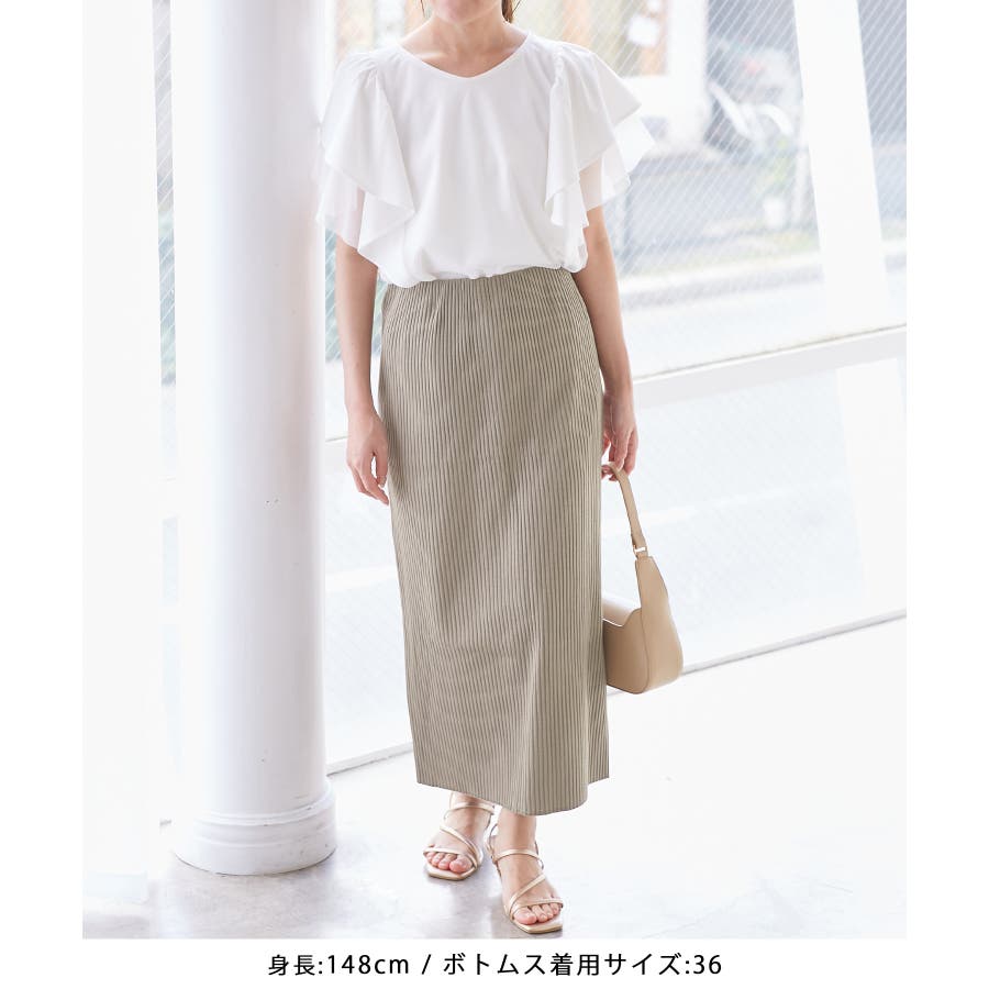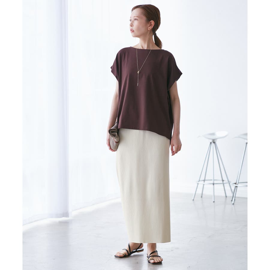 ・ヒップラインからストンと落ちるシルエットで、脚のラインが響きにくい。