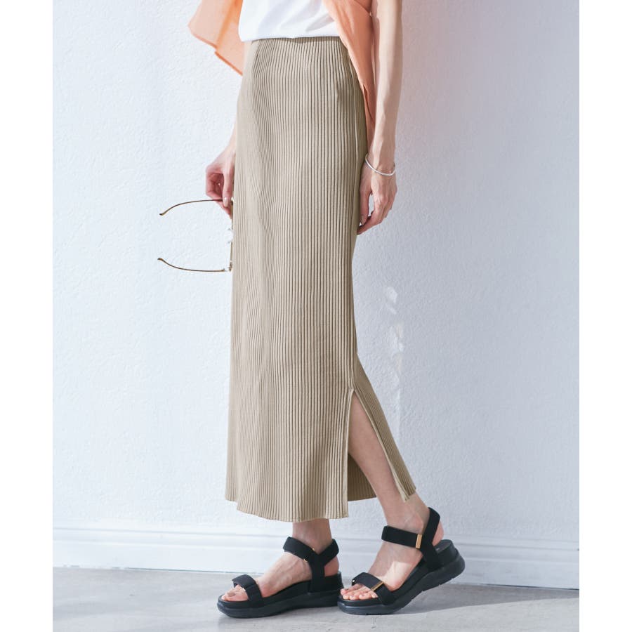 ・伸縮性に優れた、トタンテレコ素材のIラインニットスカート。