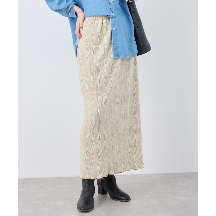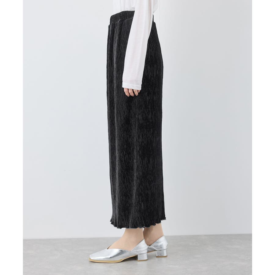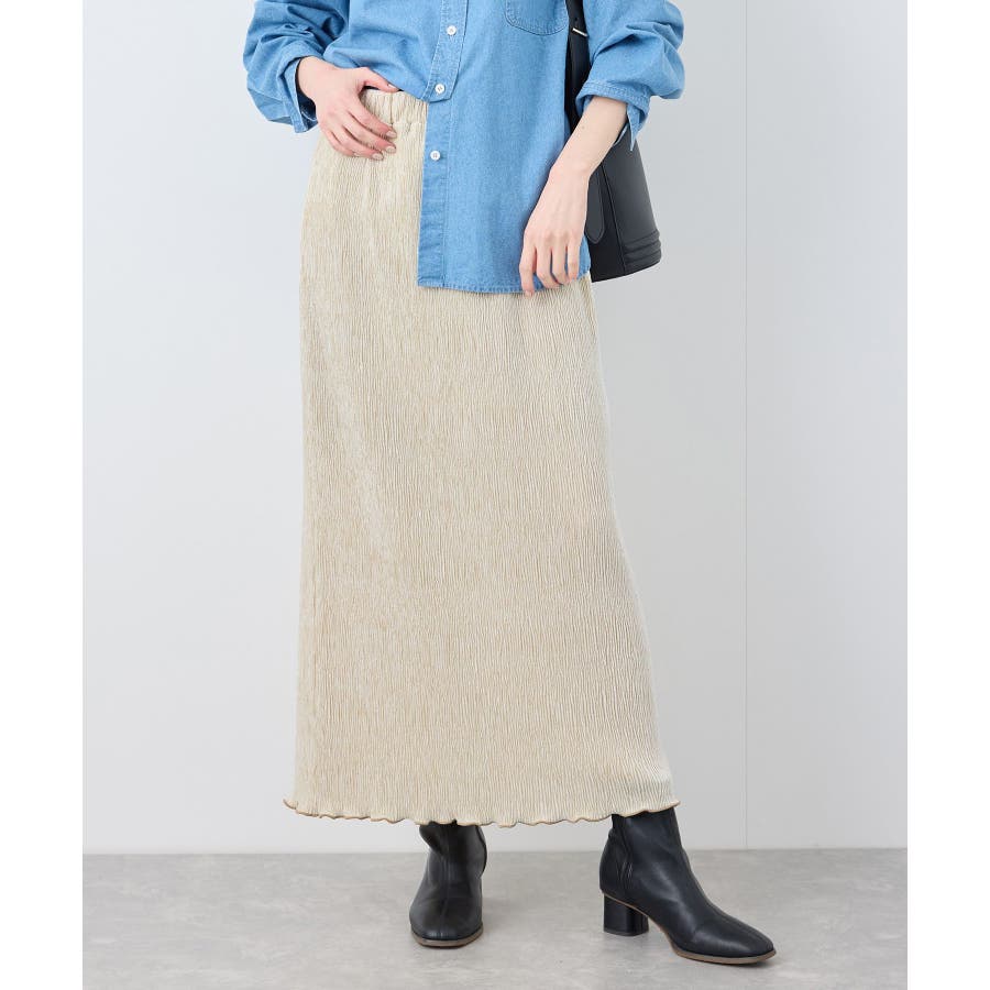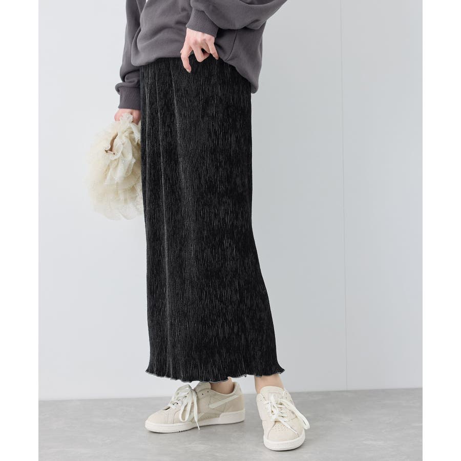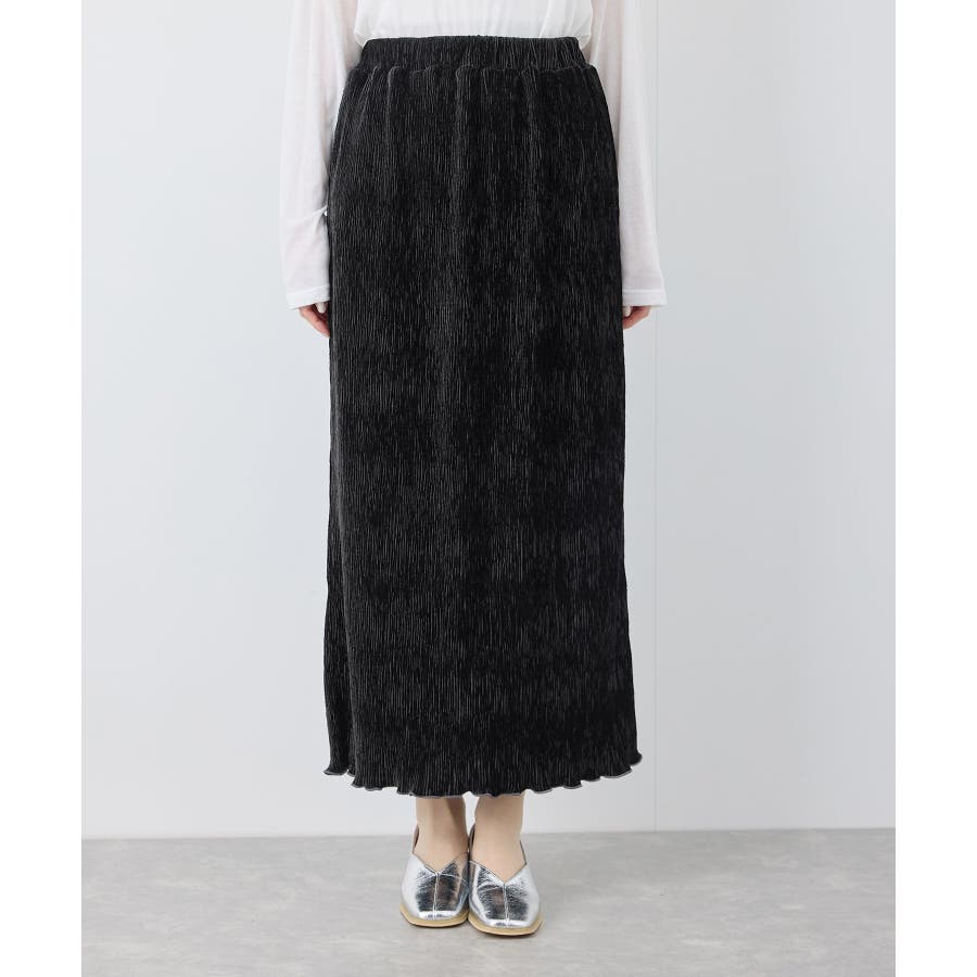 ・ベロアの光沢と楊柳のナチュラルなシワ感を併せ持ったプリーツスカート。