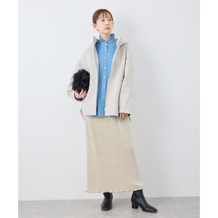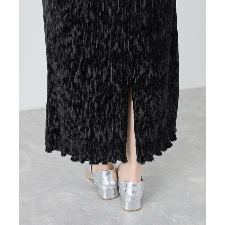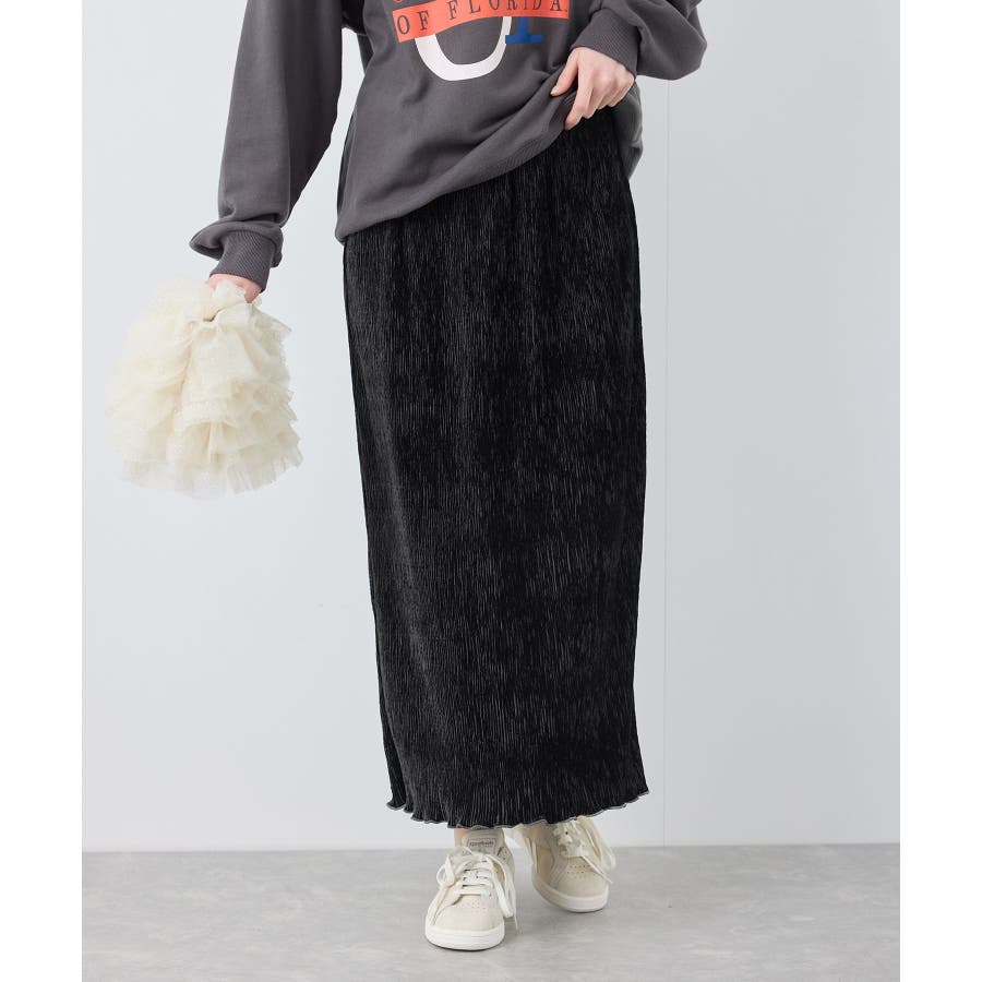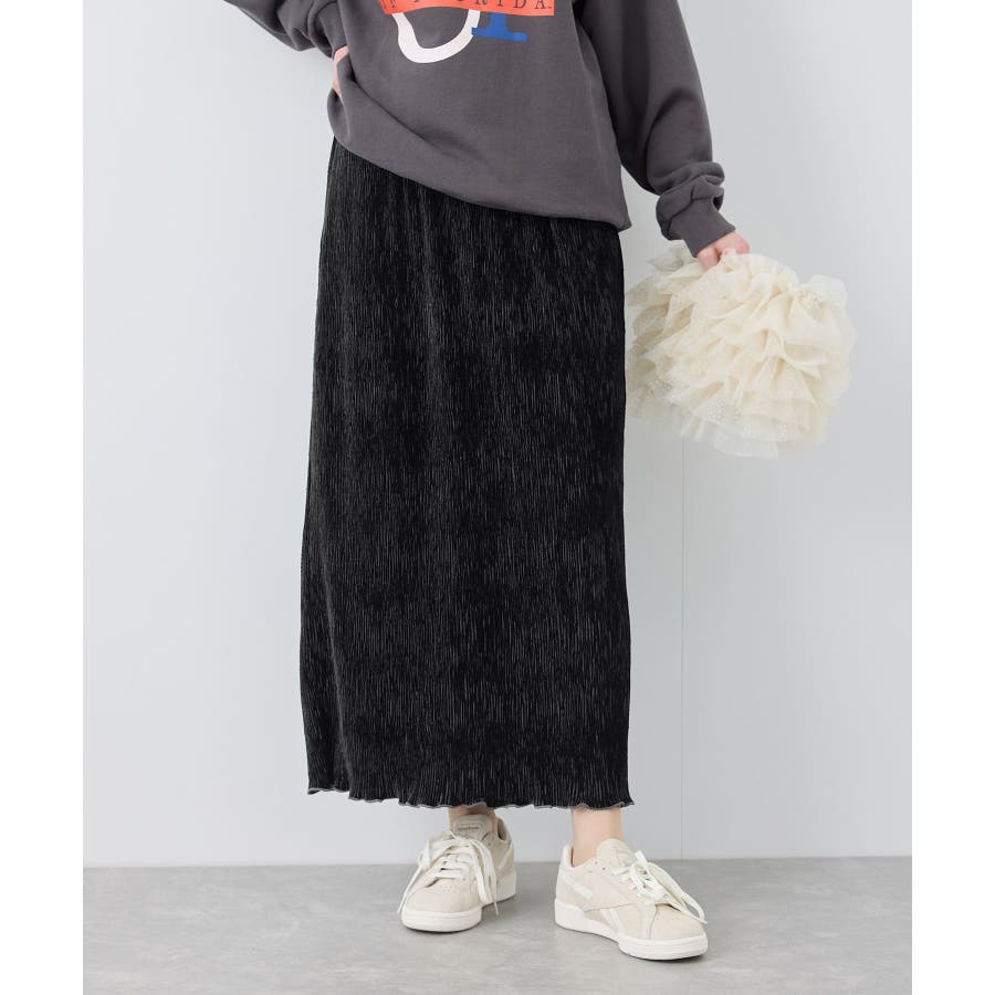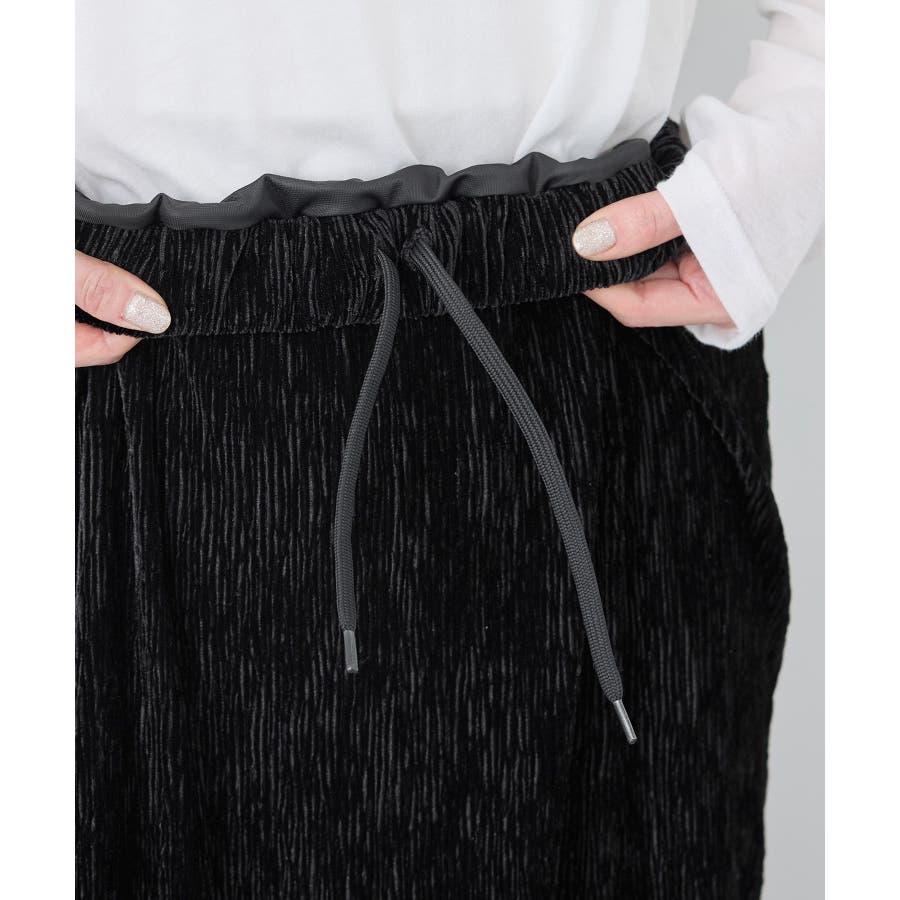 ・ベロアの光沢と楊柳のナチュラルなシワ感を併せ持ったプリーツスカート。