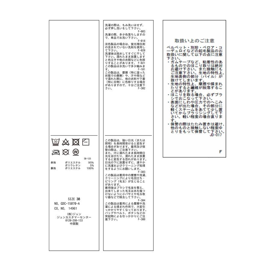 | 素材 | (表地)ポリエステル 95% ポリウレタン 5% (裏地)ポリエステル 100% |