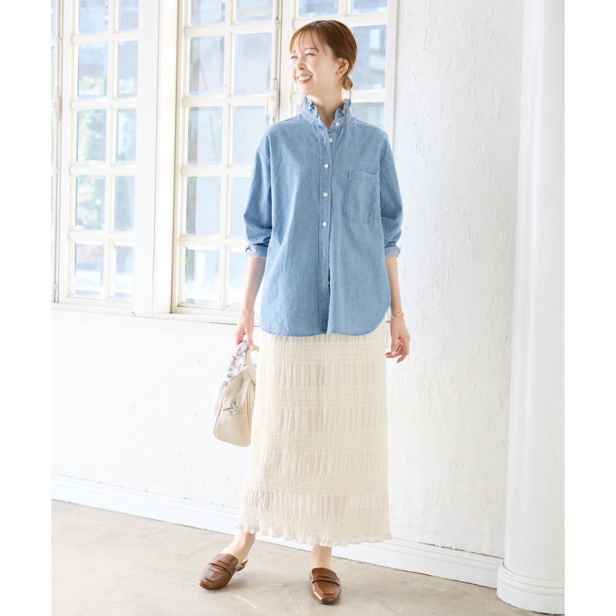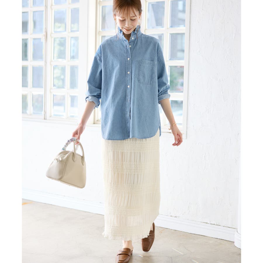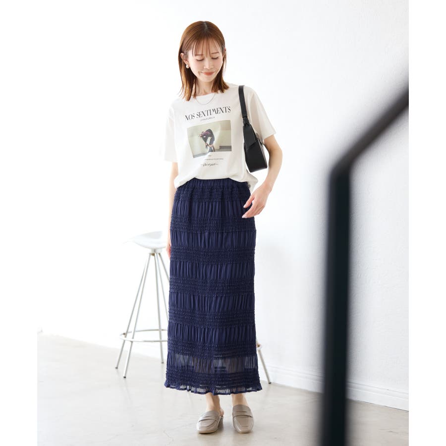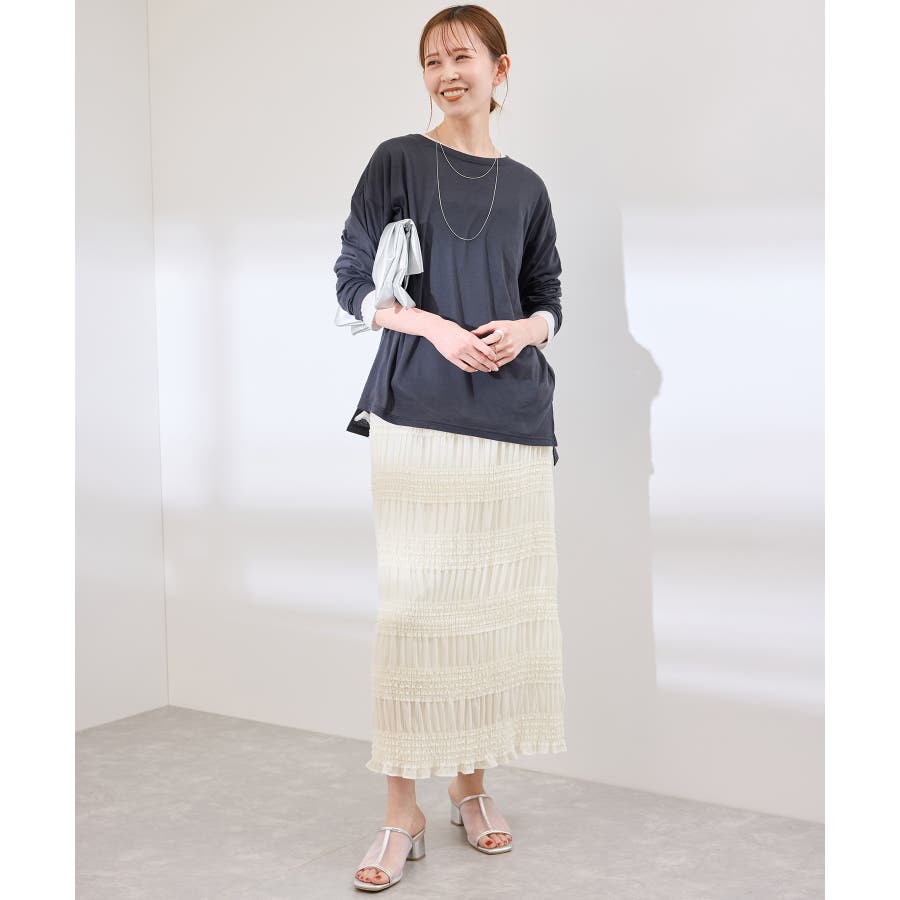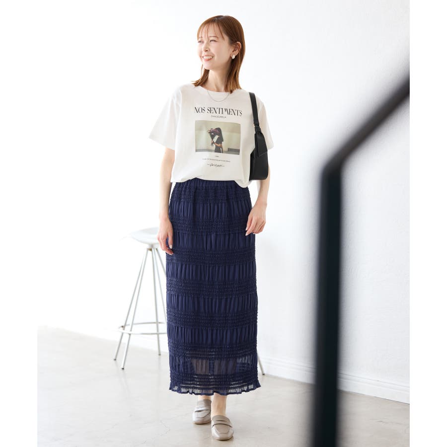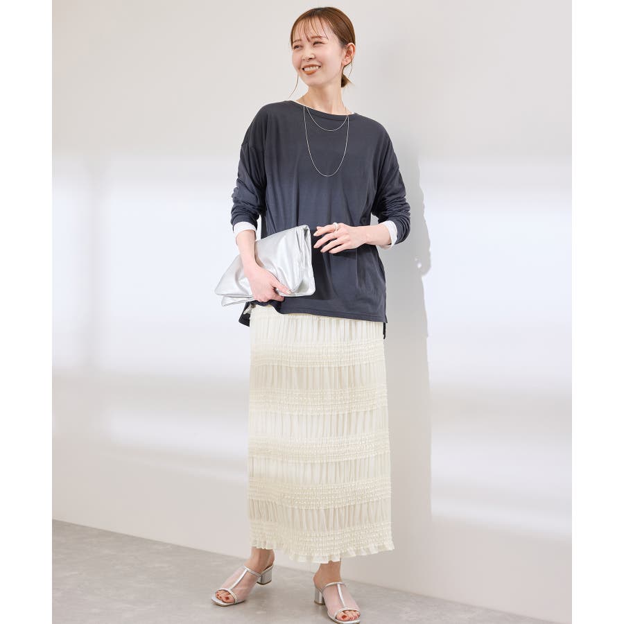 ・シンプルなTシャツ合わせでも華やぎのあるスタイルが完成。