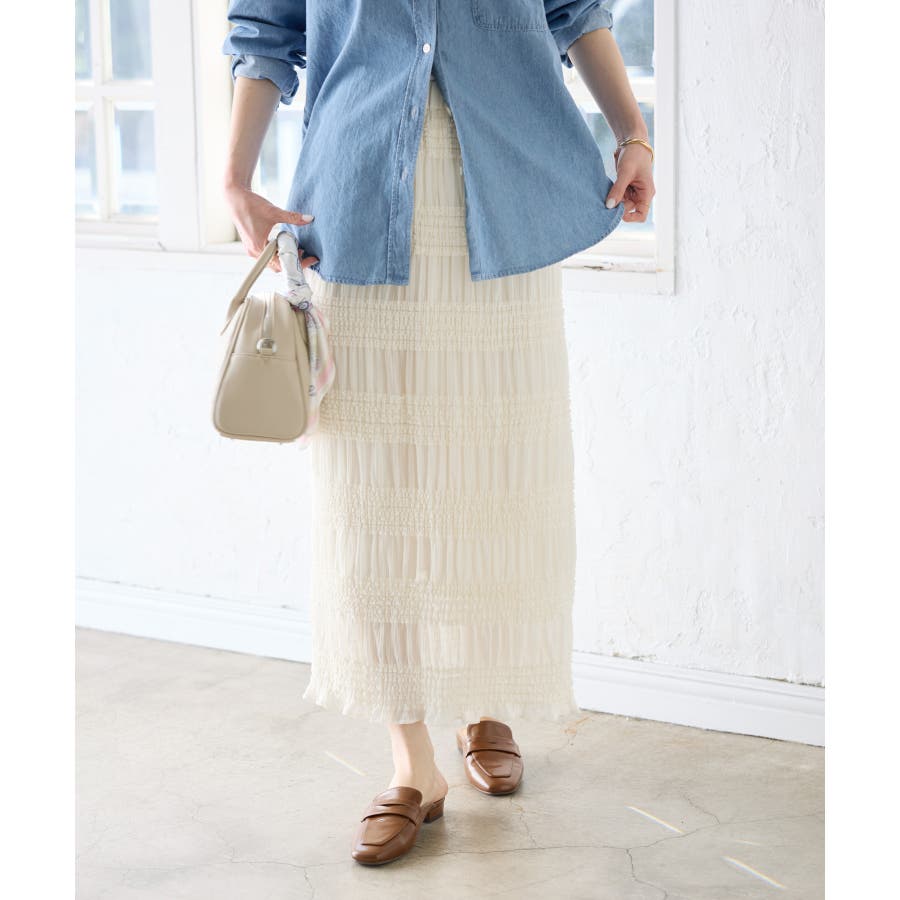 ・プリーツとフリルがあることで、ヒップラインも拾いにくいのも嬉しいポイント。