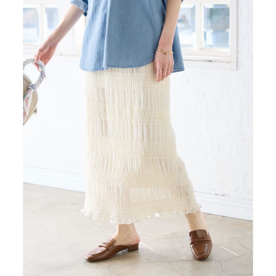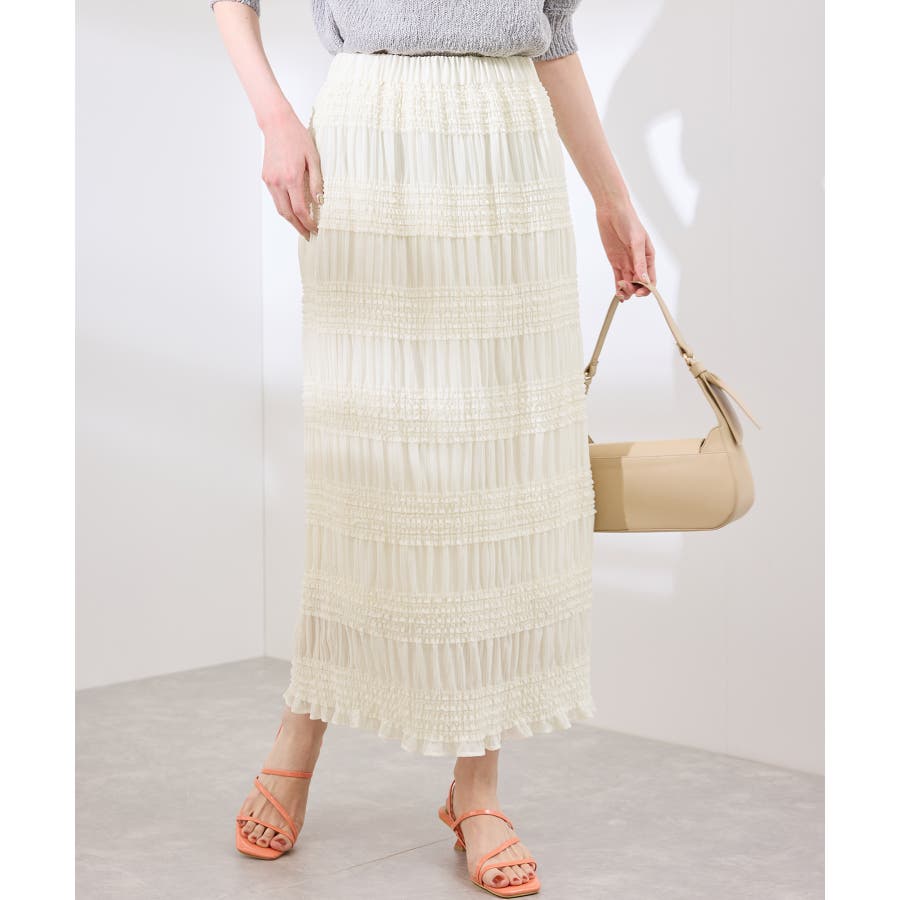 ・細かなプリーツとフリルが程良い甘さのある、プリーツスカート。