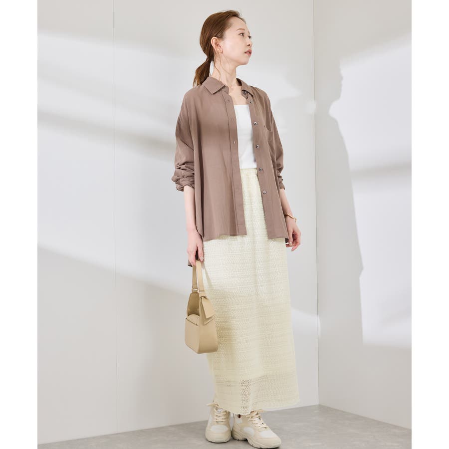 ホワイト(10)は濃いインナーを着用するとやや透けるので同系色のインナー合わせがおすすめです。